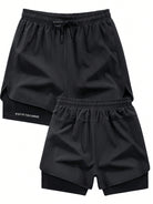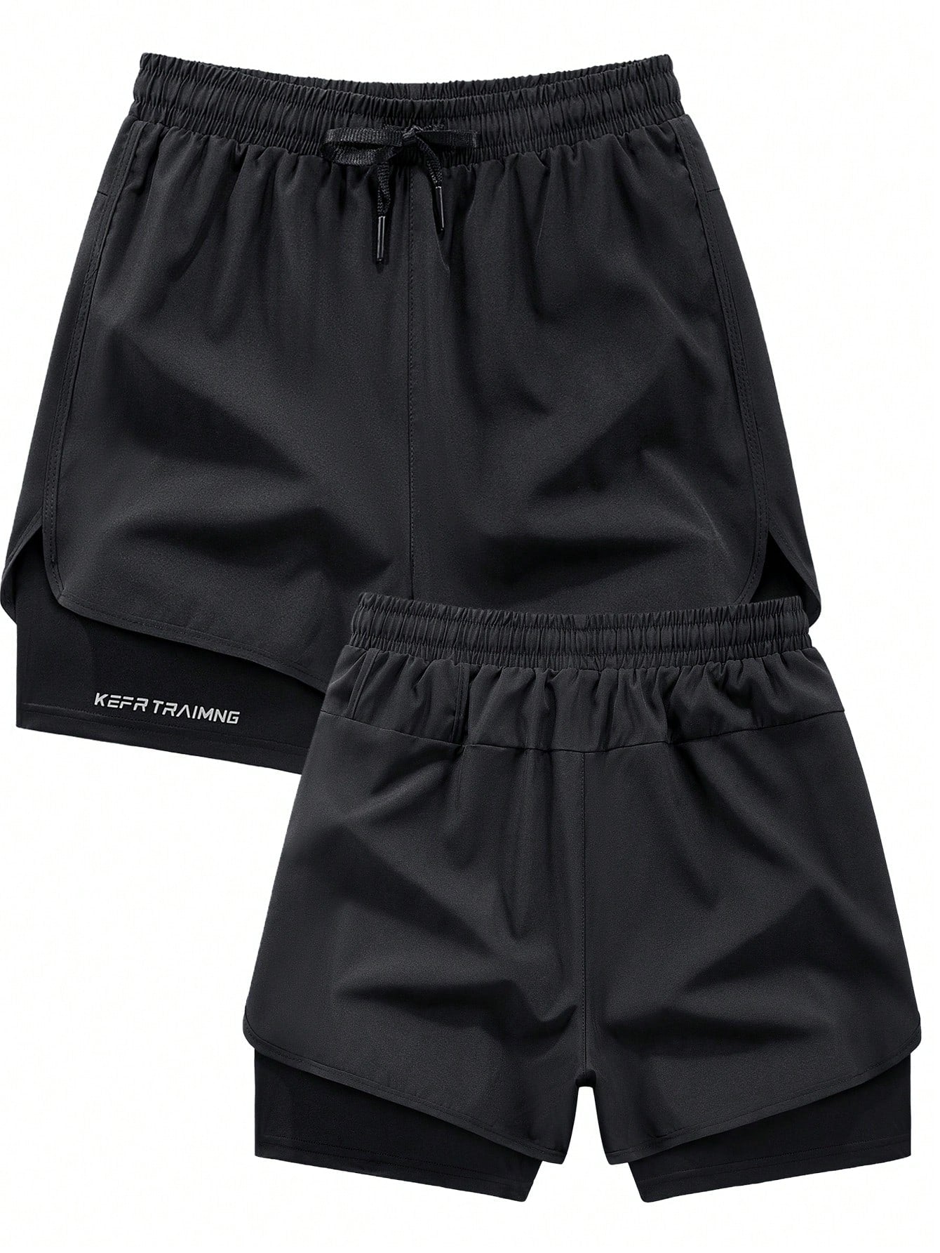 Summer Quick-Dry Running Shorts With Built-In Underwear, Boyfriend Style Men's 3/4 Training Pants For