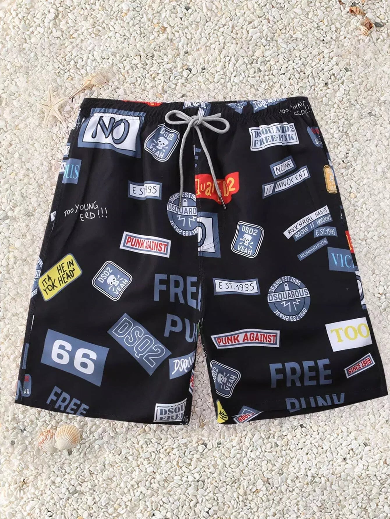 Men - Men Letter Graphic Drawstring Waist Swim Trunks
