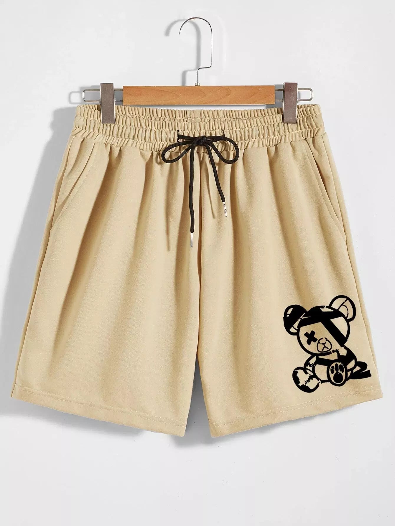 Guys Cartoon Bear Graphic Drawstring Shorts