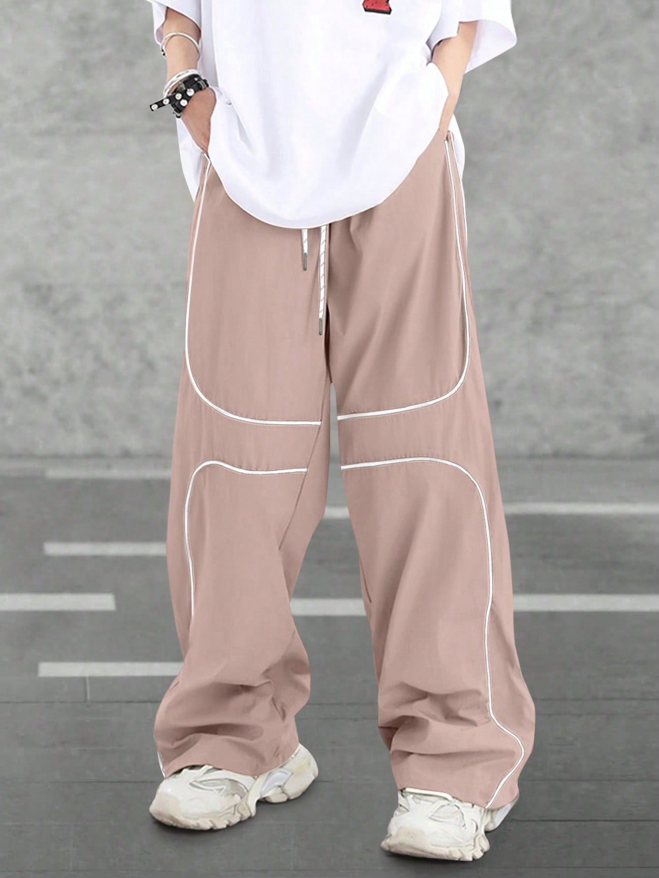 Manfinity Hypemode Loose Fit Men's Contrast Piping Drawstring Waist Wide Leg Pants Men Pants Baggy