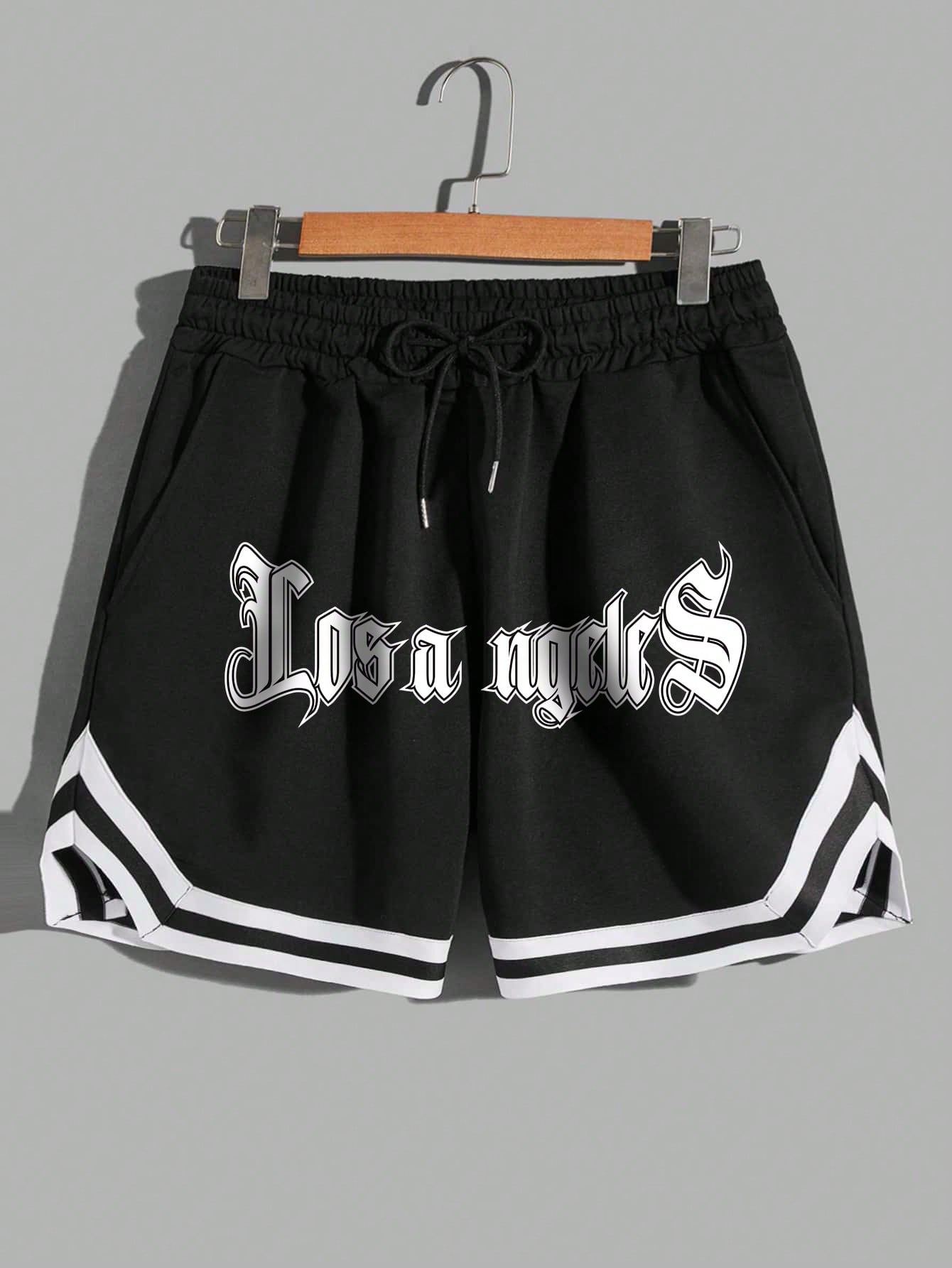 Manfinity Sporsity Loose Men's Letter Print Contrast Trim Drawstring Waist Shorts