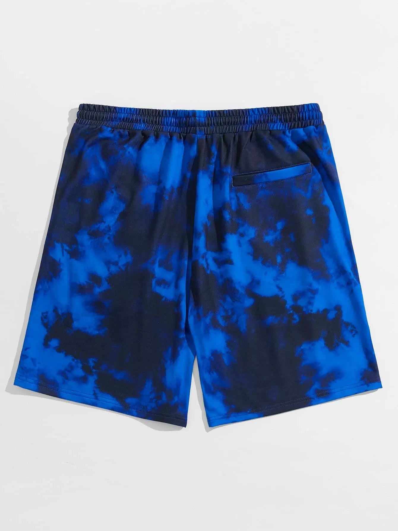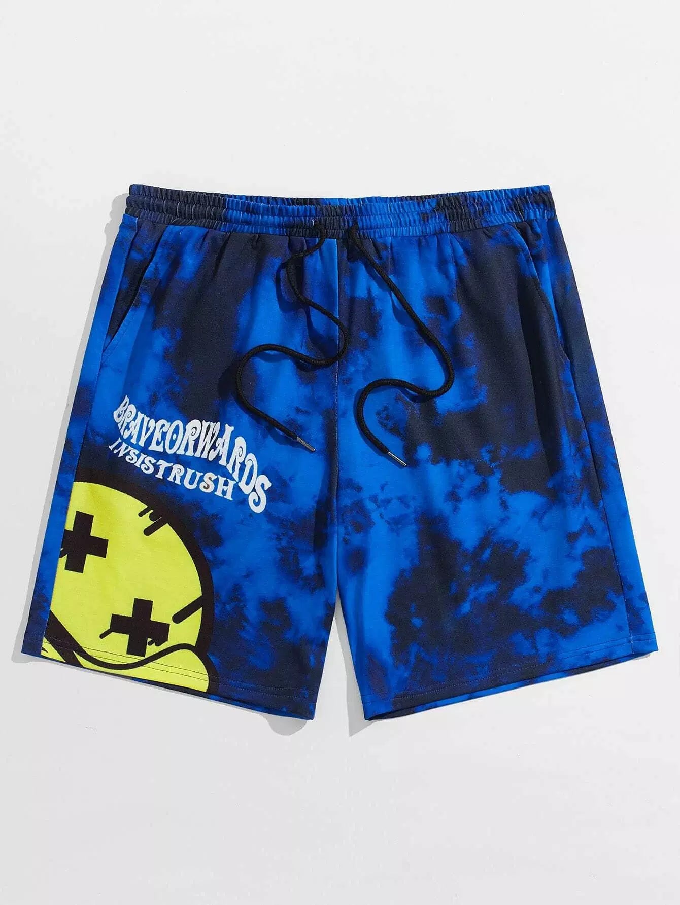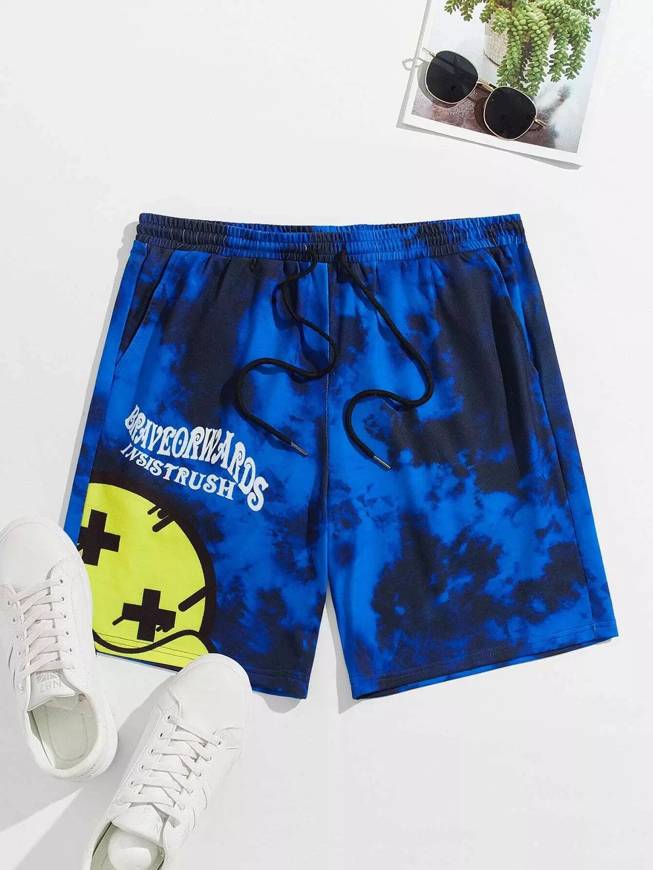 Men Drawstring Waist Cartoon & Letter Print Tie Dye Shorts
