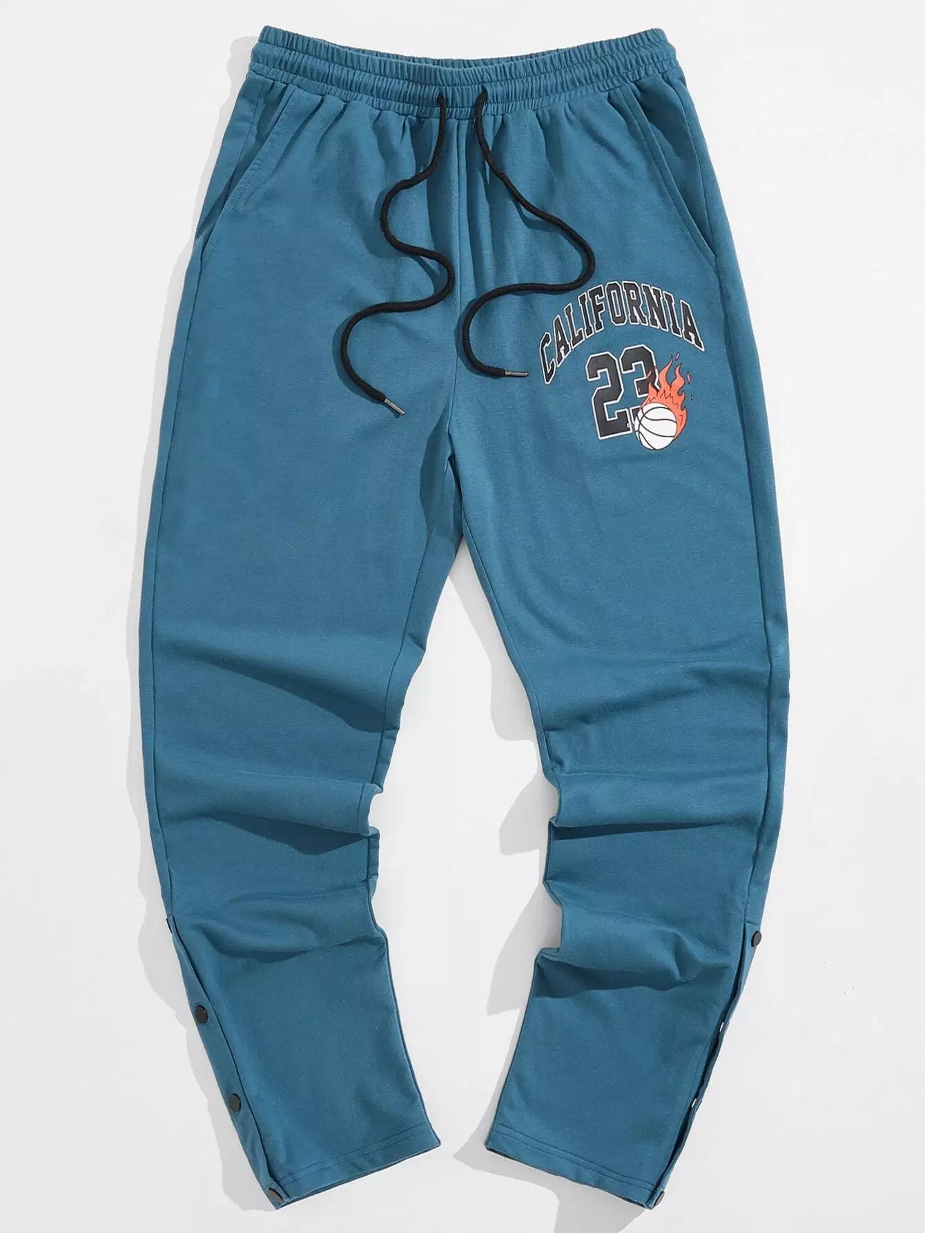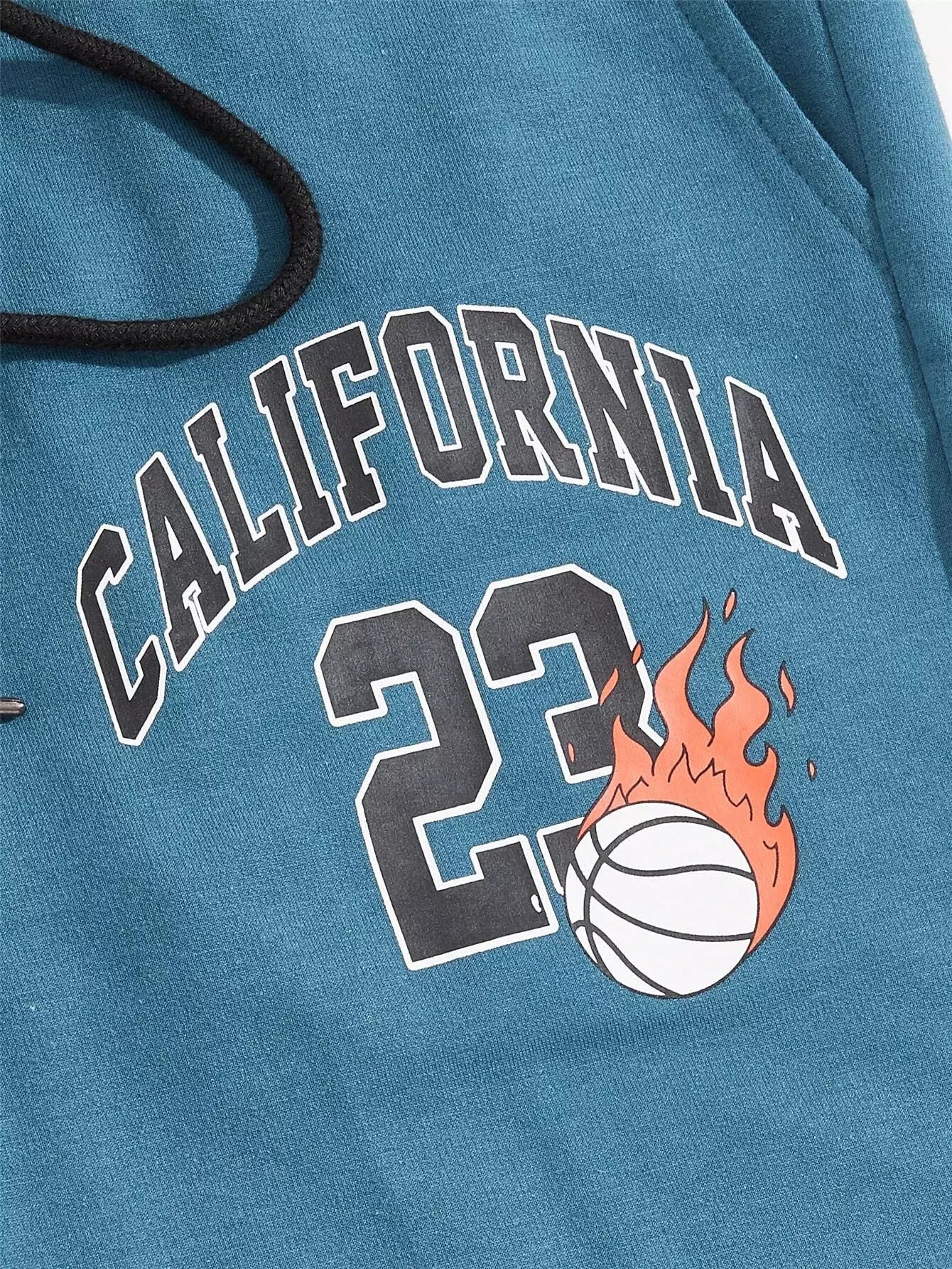 Men Letter & Basketball Print Drawstring Waist Sweatpants