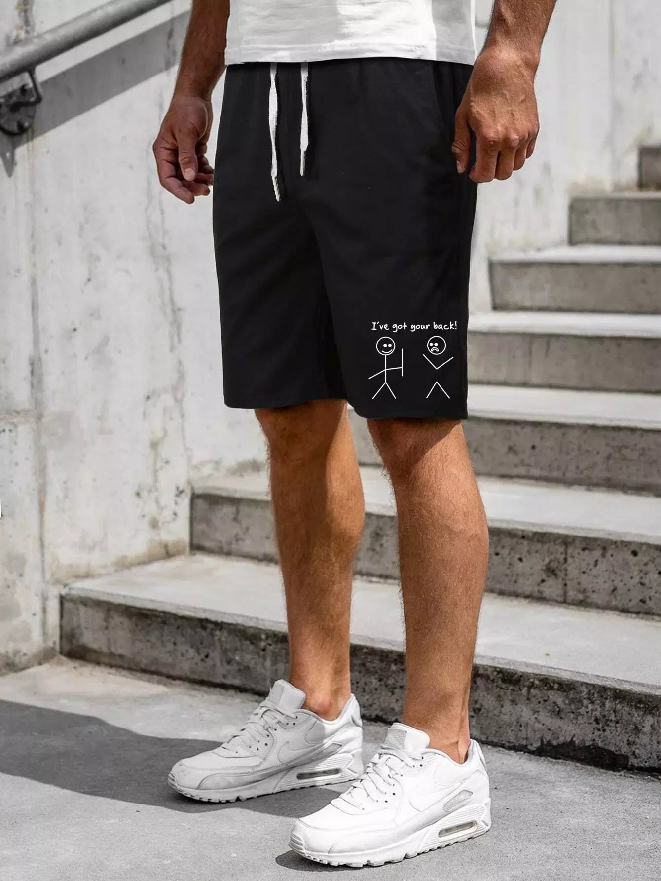 Men Slogan & Cartoon Graphic Drawstring Waist Track Shorts