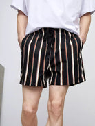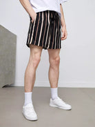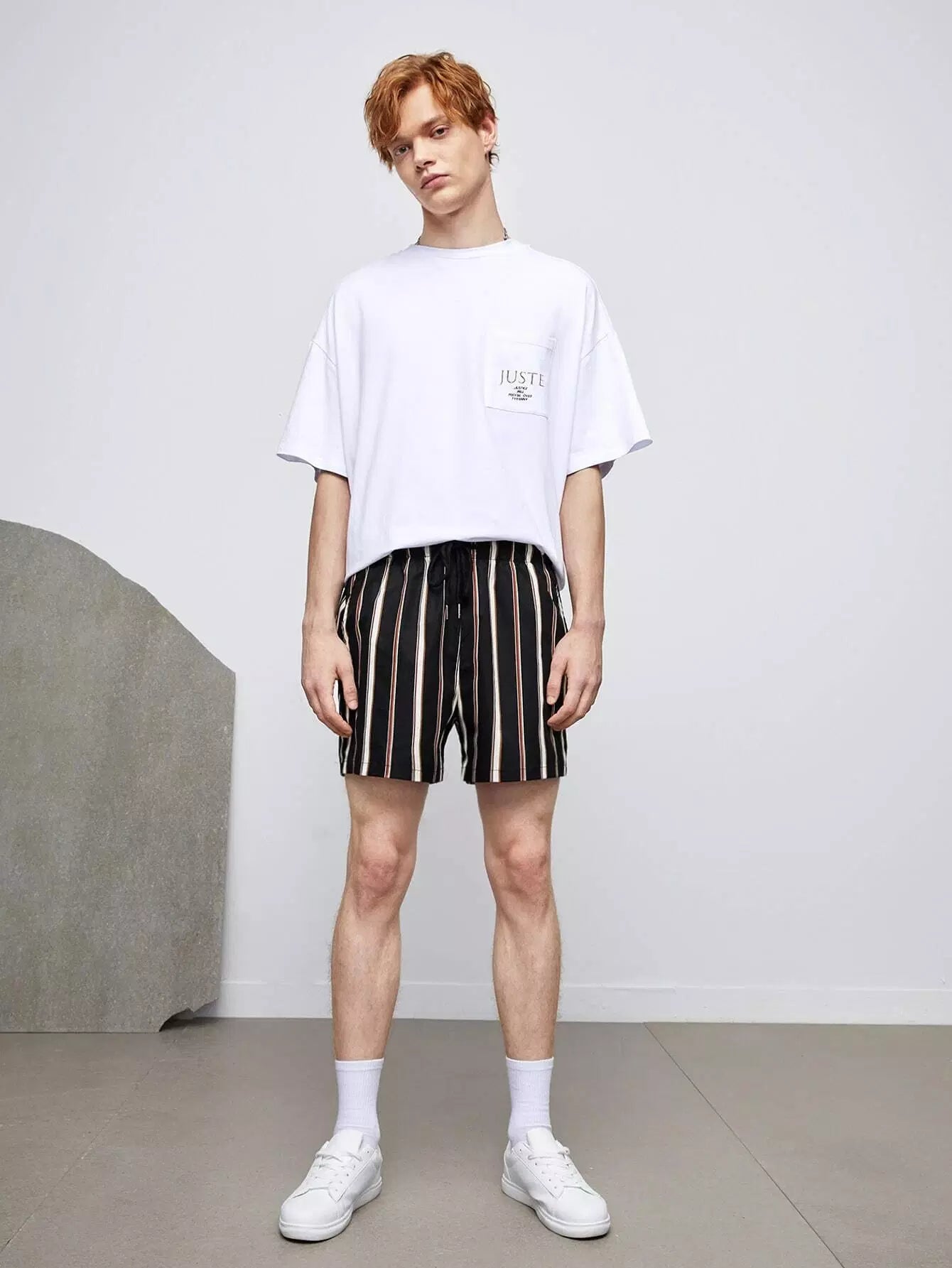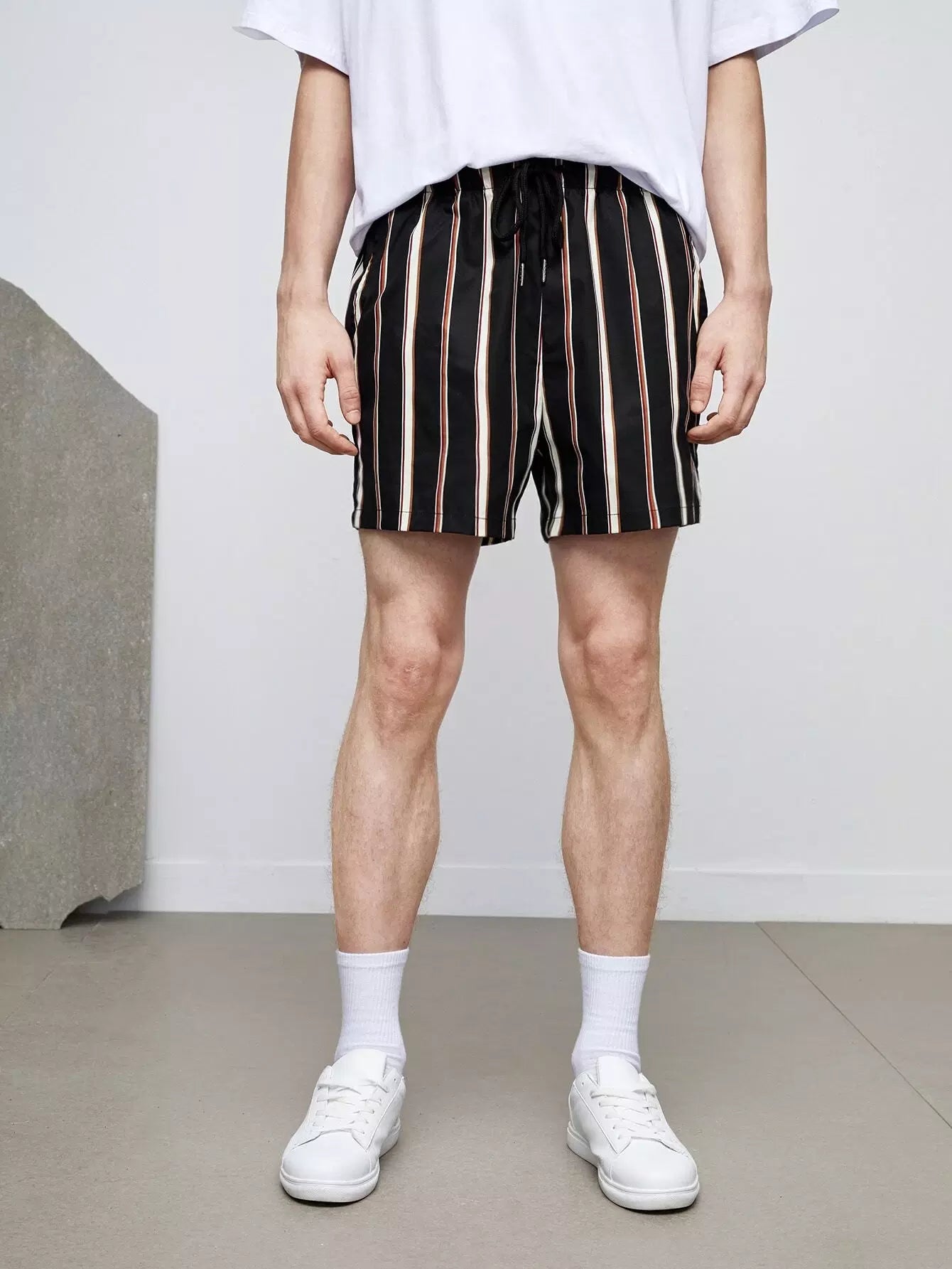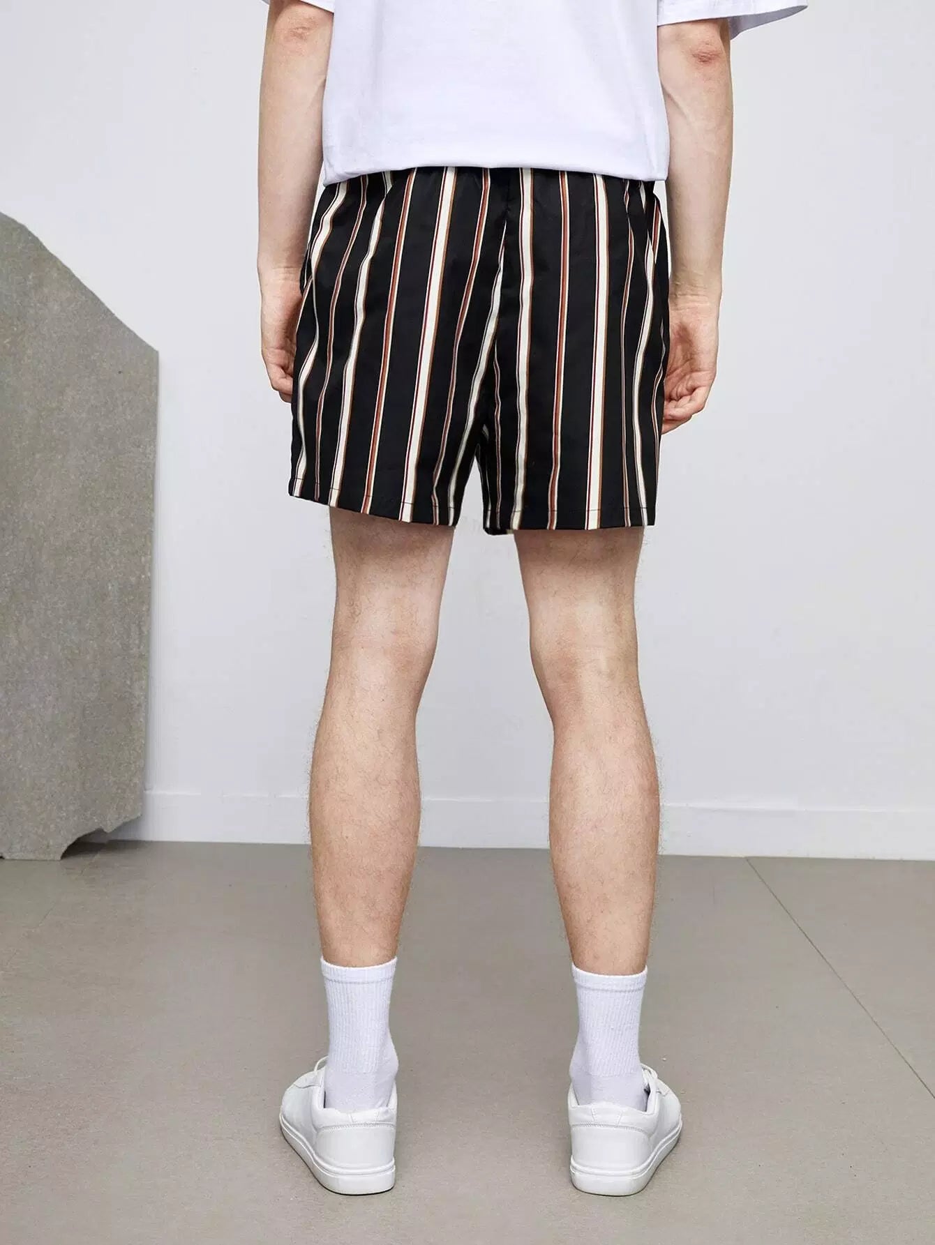 Men Striped Slant Pockets Drawstring Waist Shorts