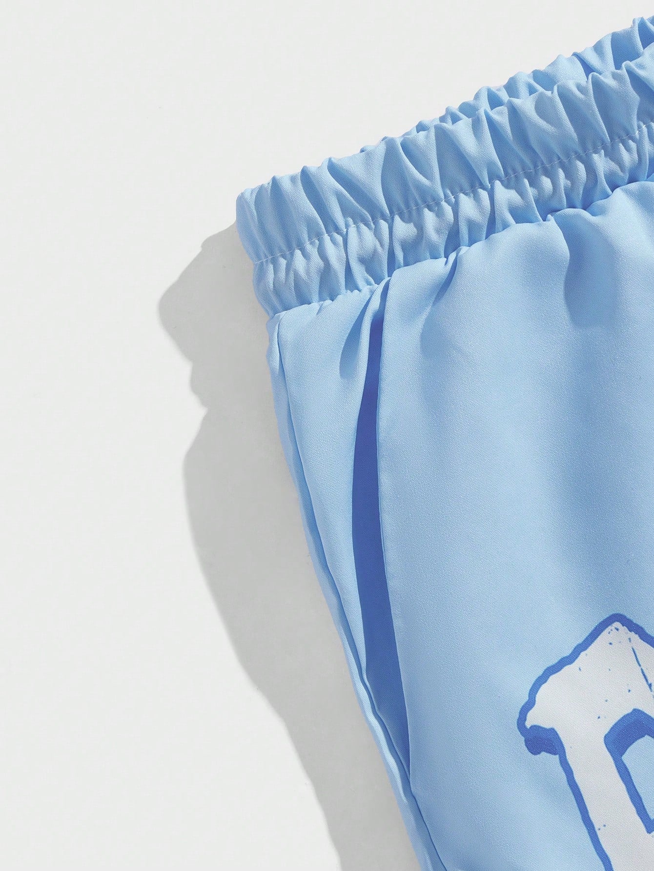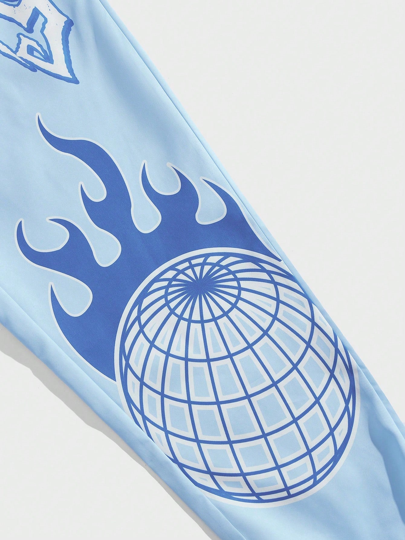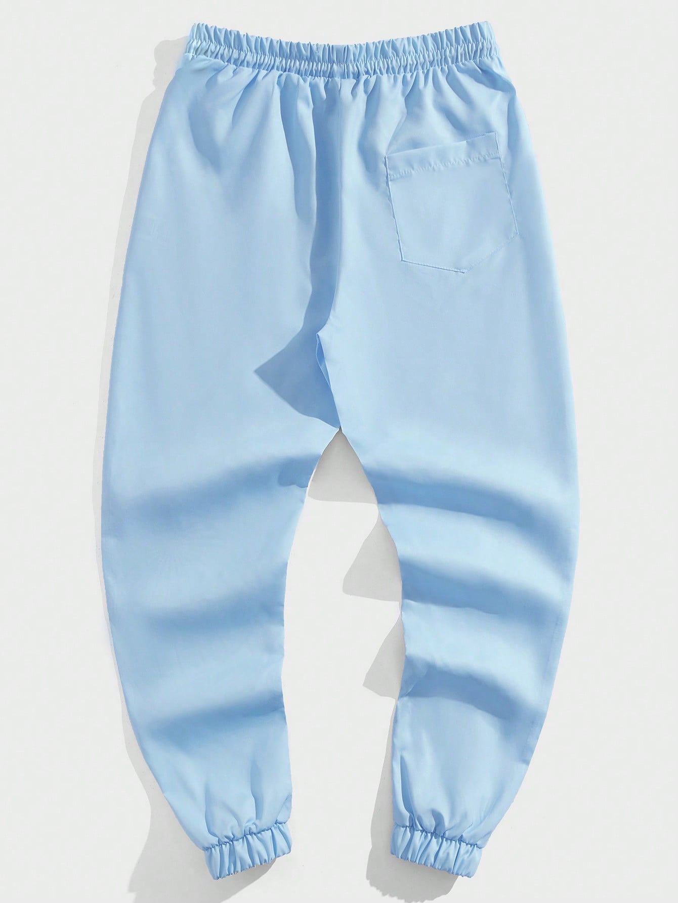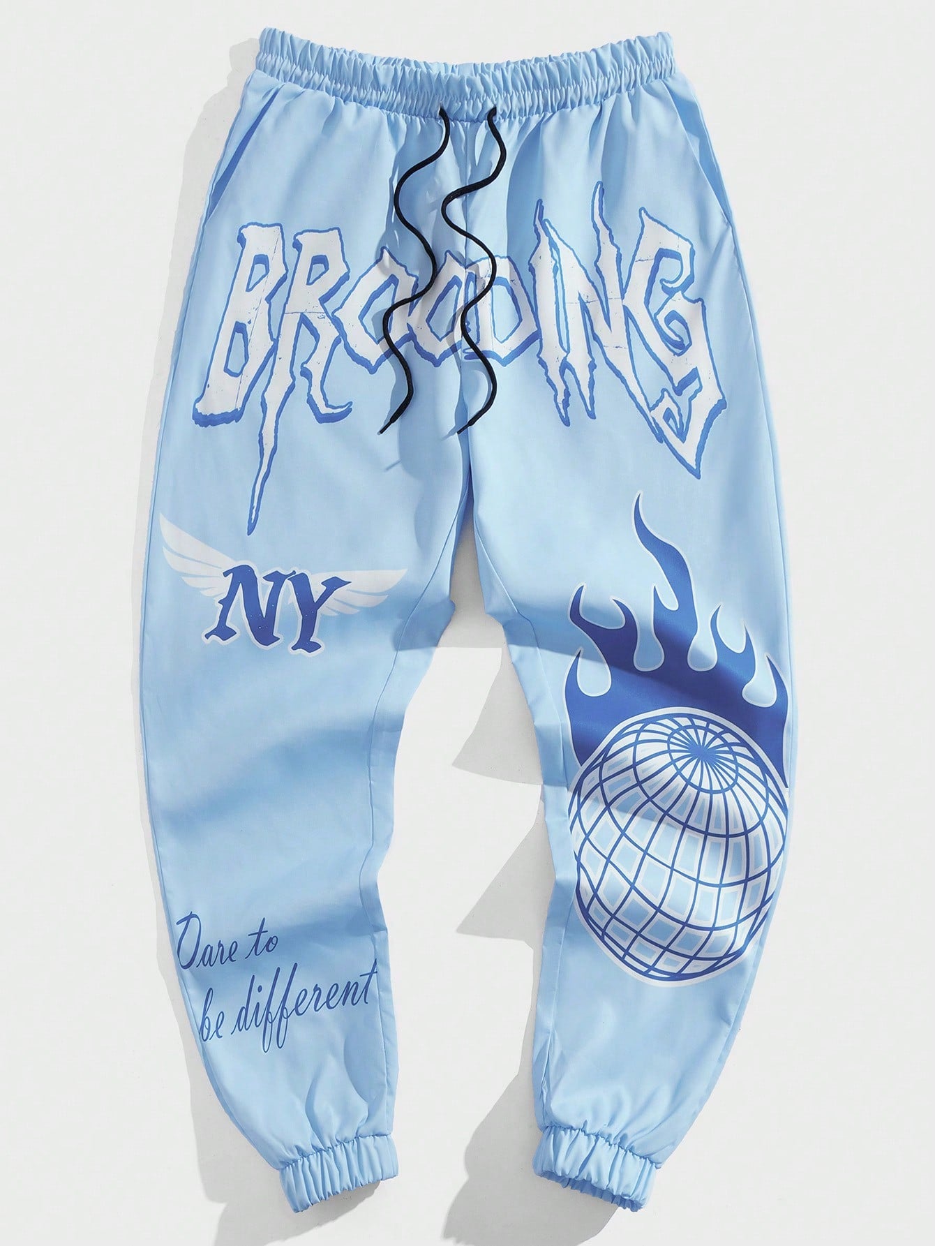 ROMWE MEN Street Life Men's Drawstring Waist Letter Print Cuffed Joggers, School