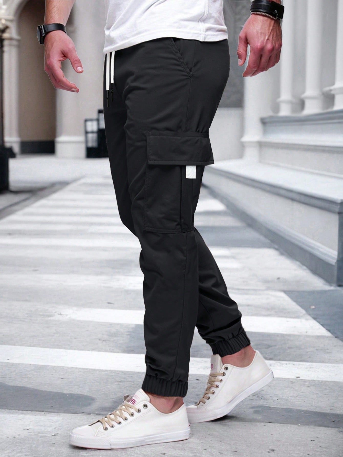 Manfinity Homme Men's Elasticated Waist Drawstring Cargo Pockets Relaxed Fit Ankle Cuffed Pants