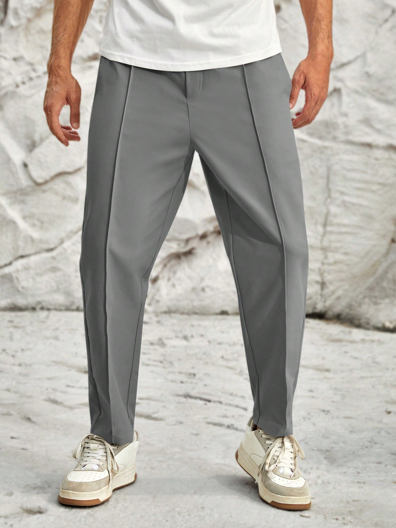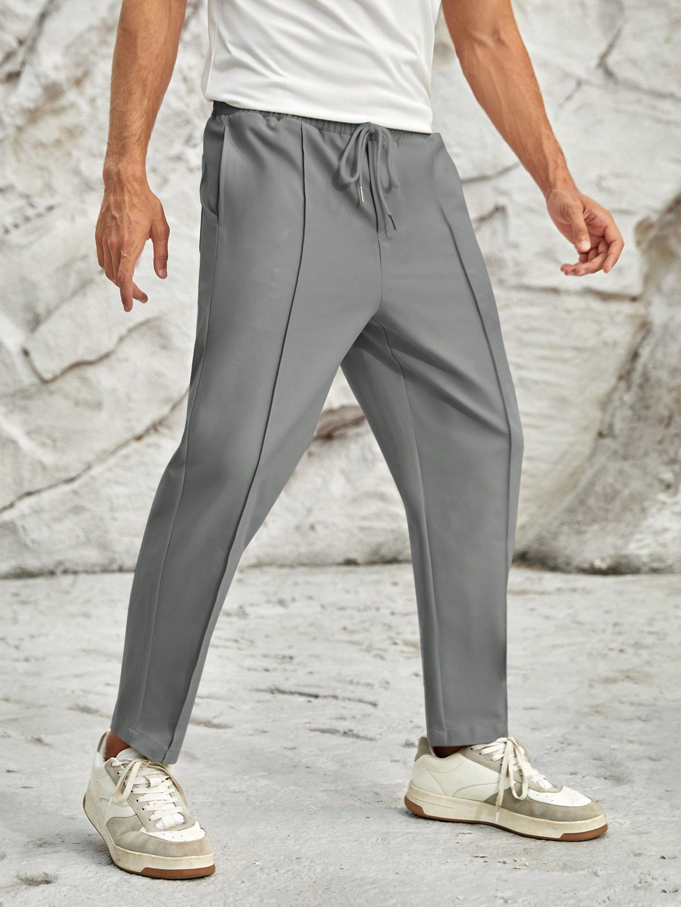Manfinity VCAY Men's Grey Woven Elastic Waist Long Pants, Back To School
