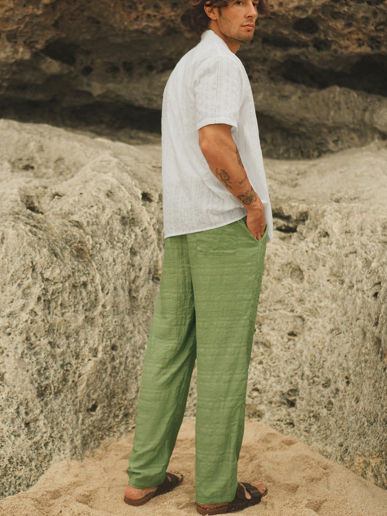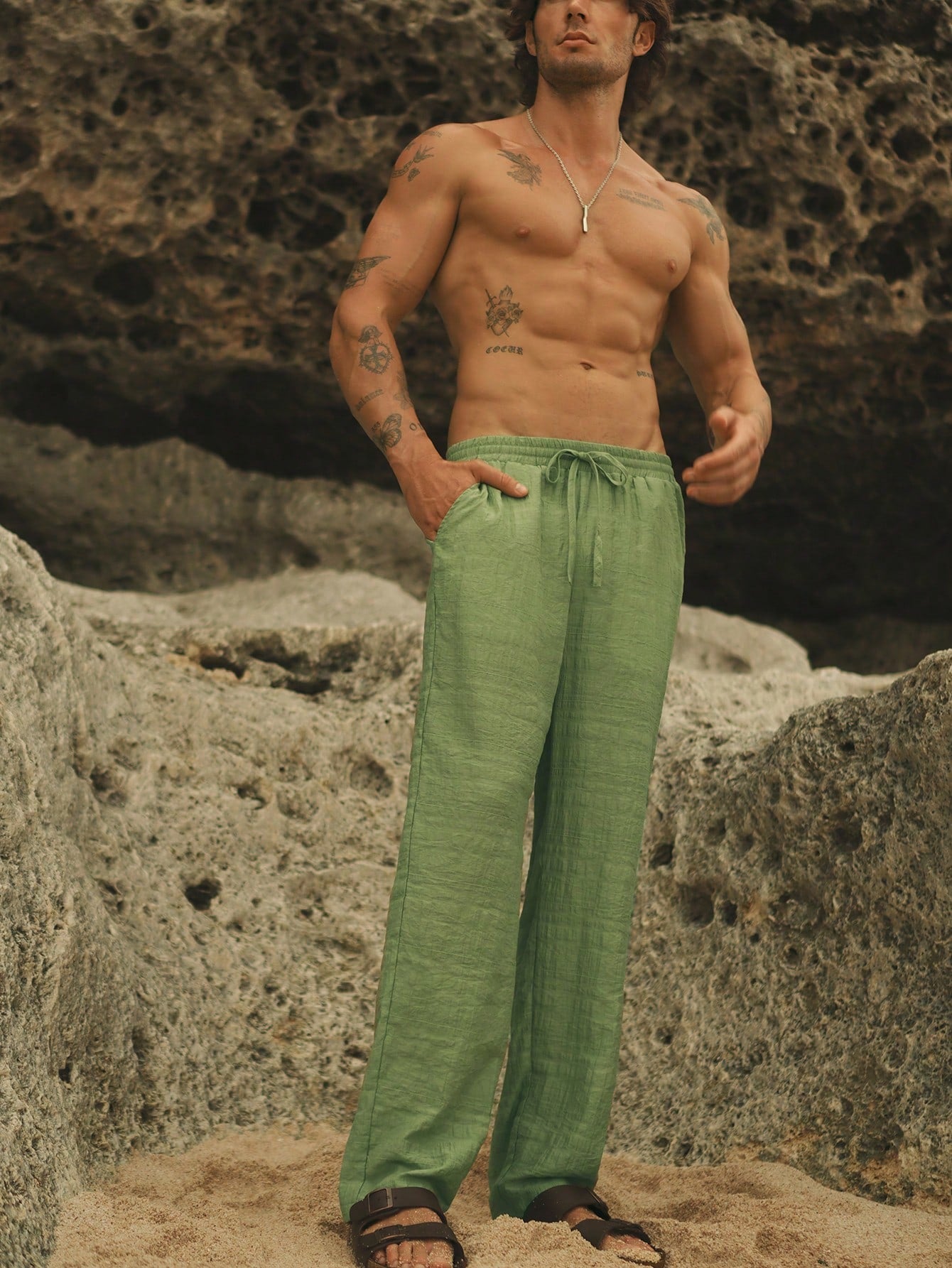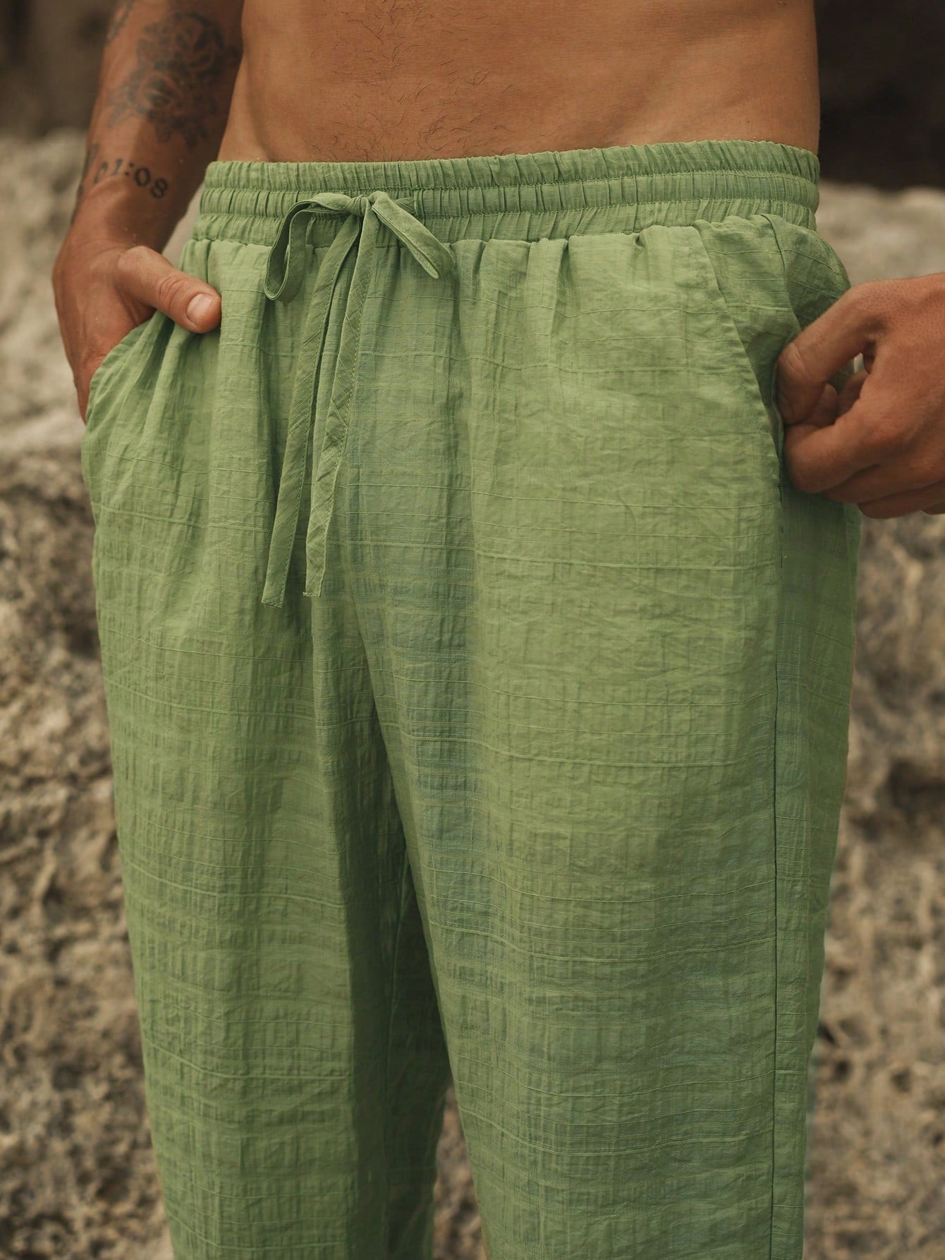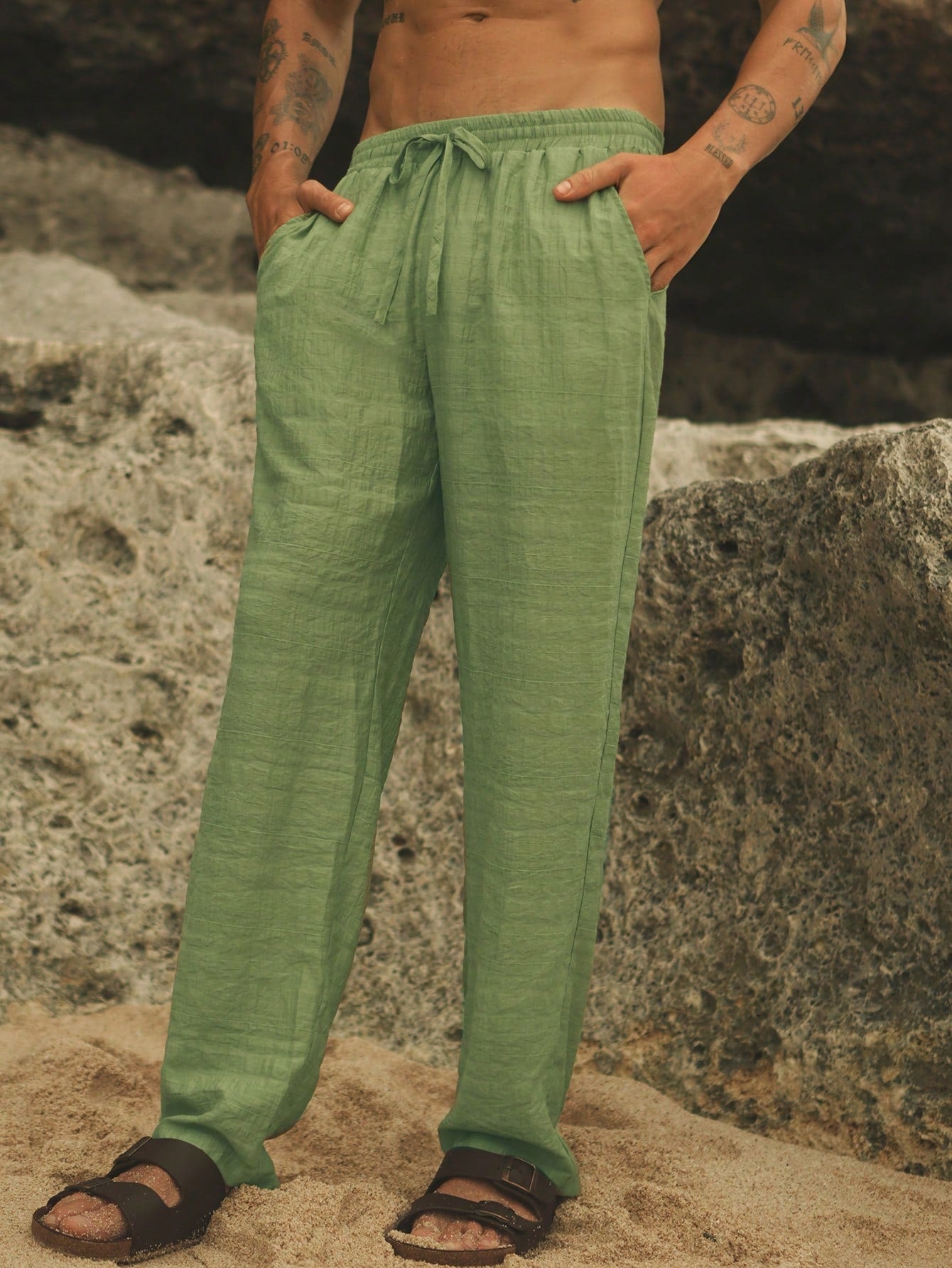 Manfinity VCAY Men's Woven Drawstring Waist Straight Leg Casual Pants, Suitable For Everyday Wear