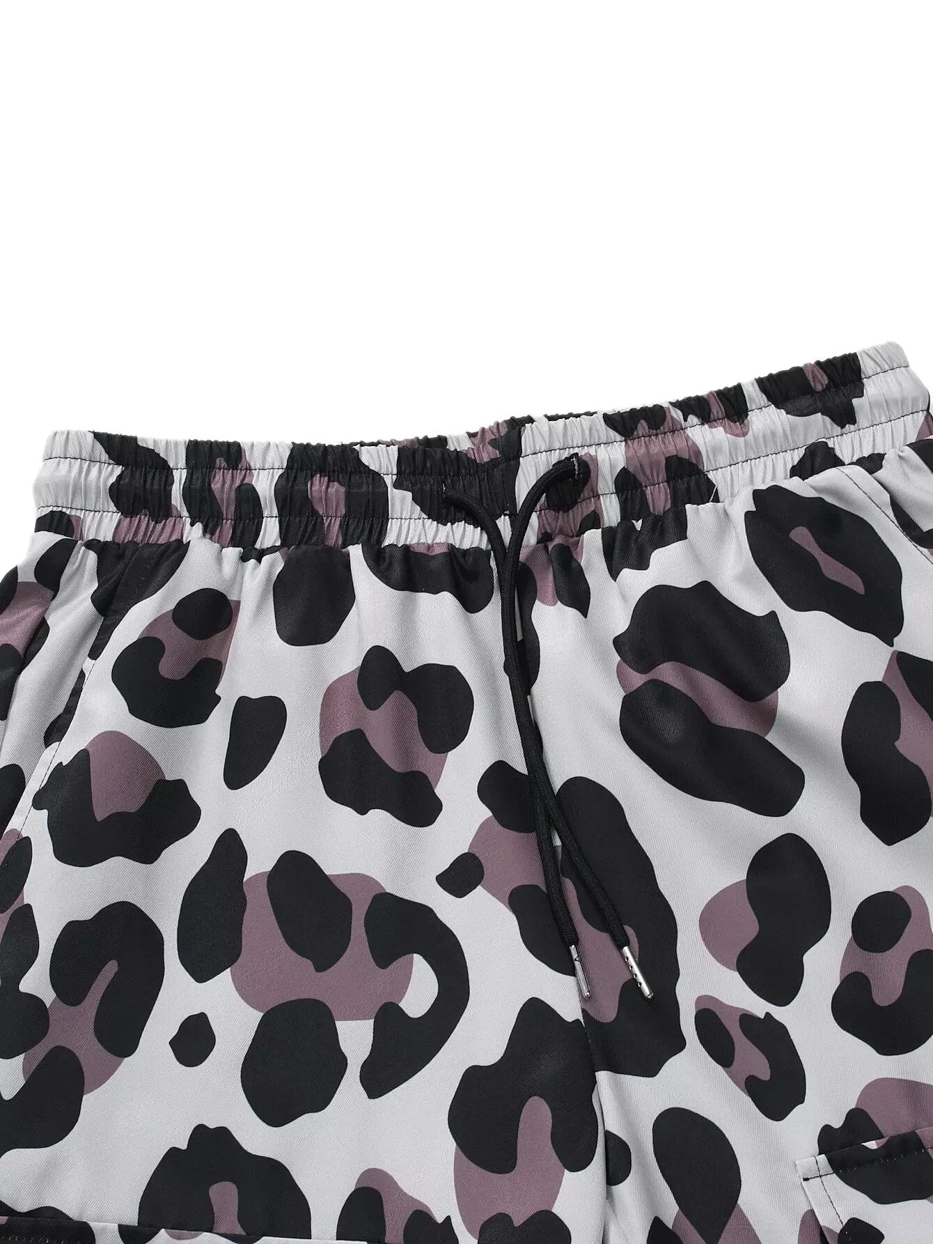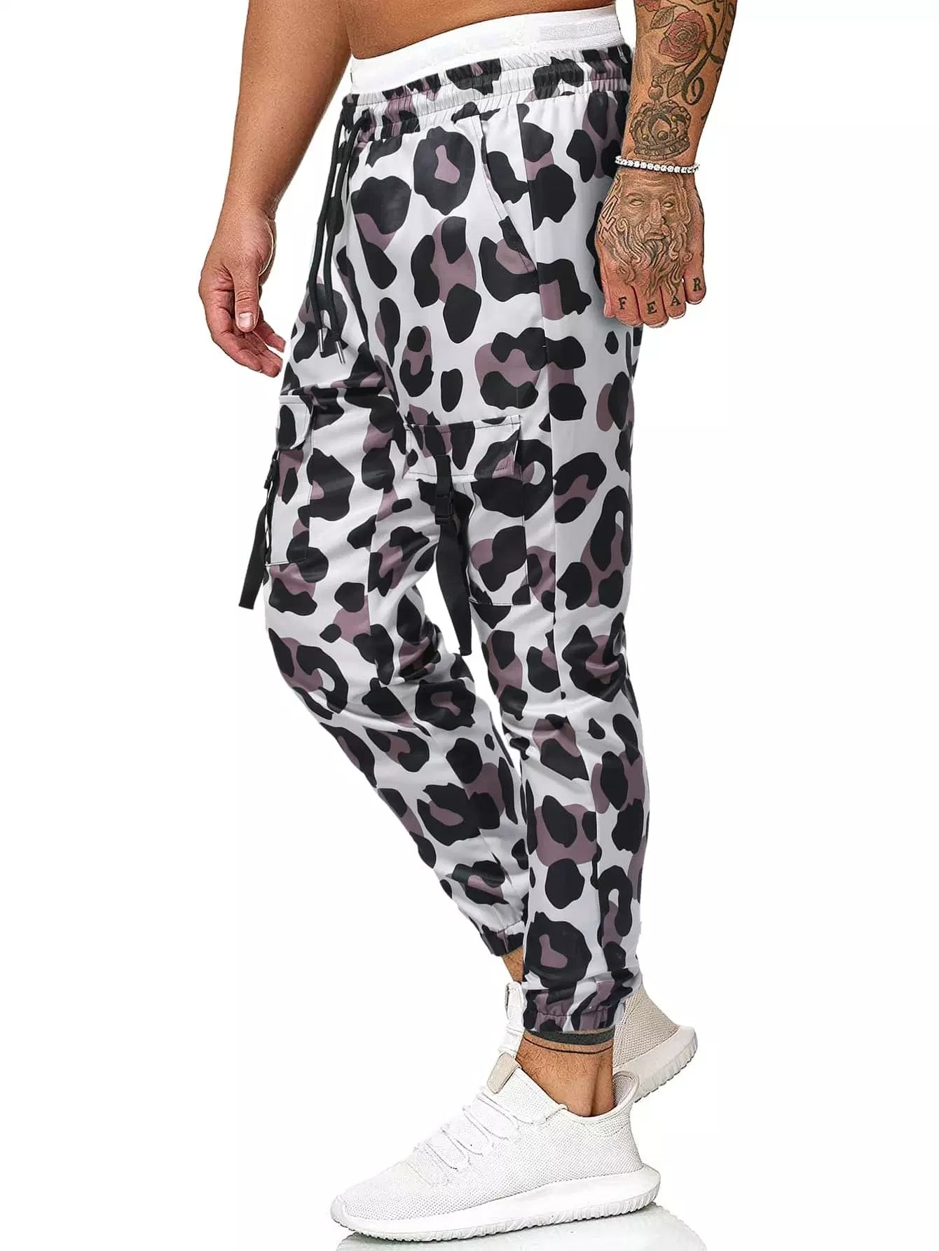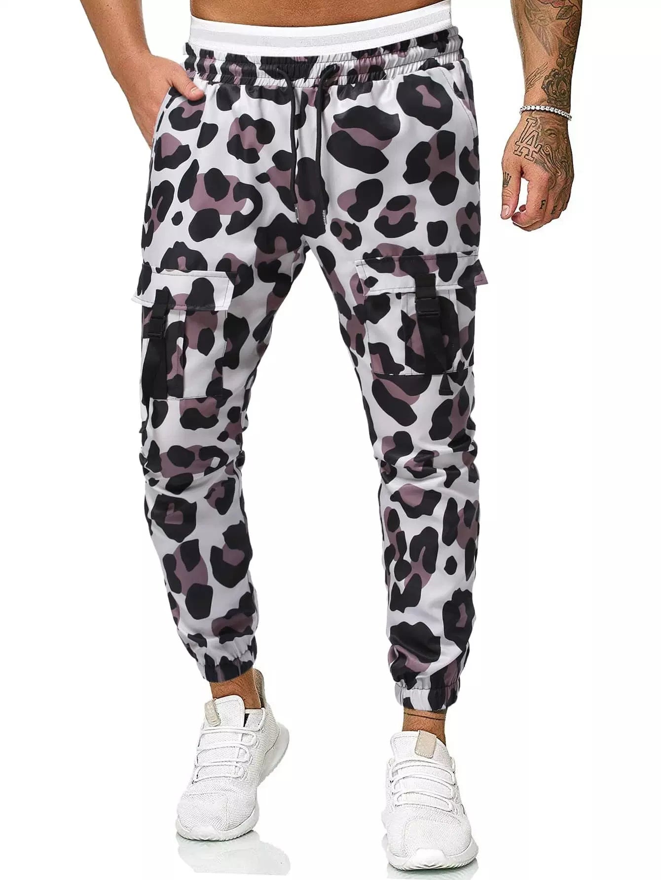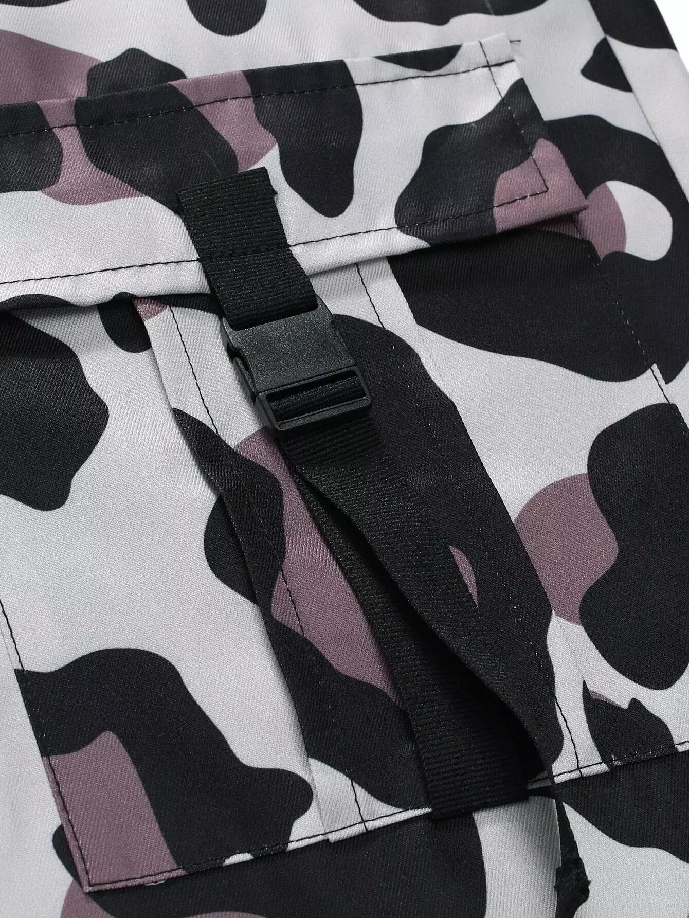 Men Allover Print Buckled Flap Pocket Drawstring Pants
