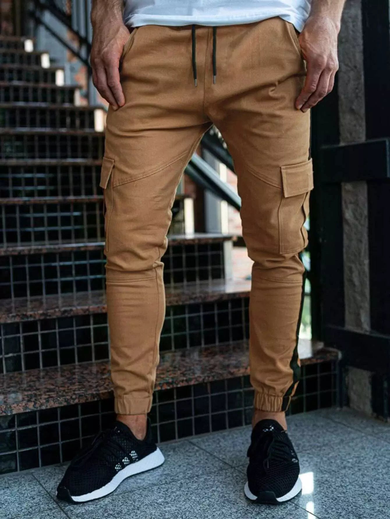 Men - Men Contrast Panel Side Flap Pocket Pants