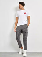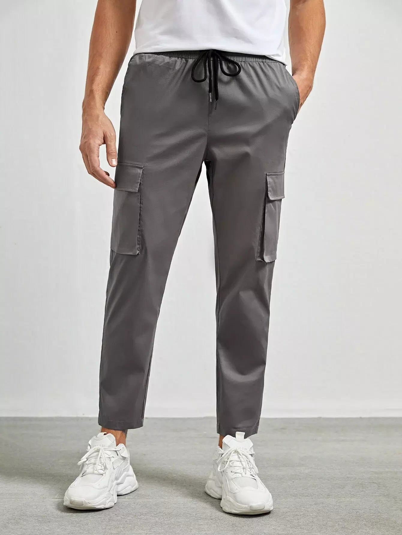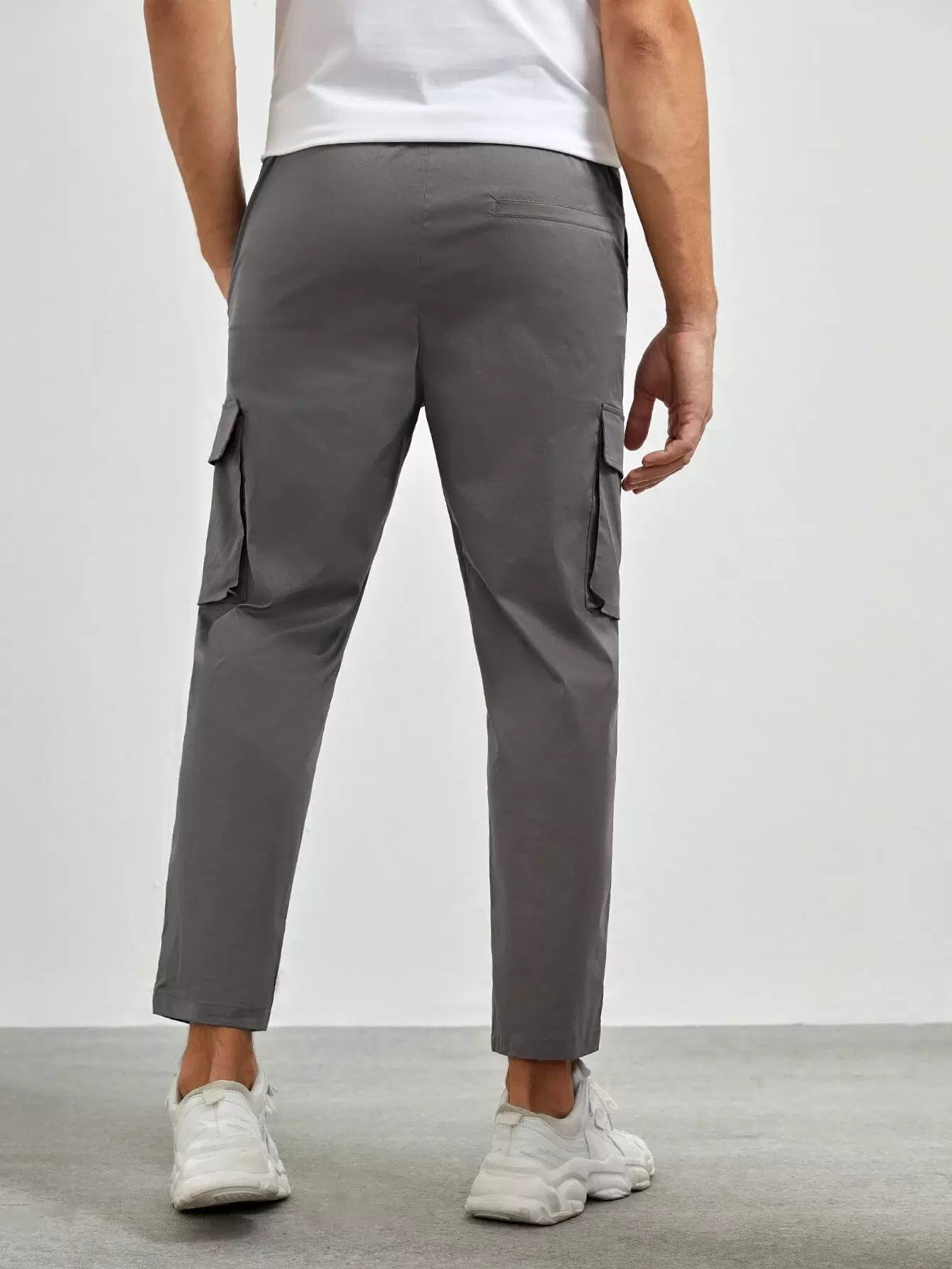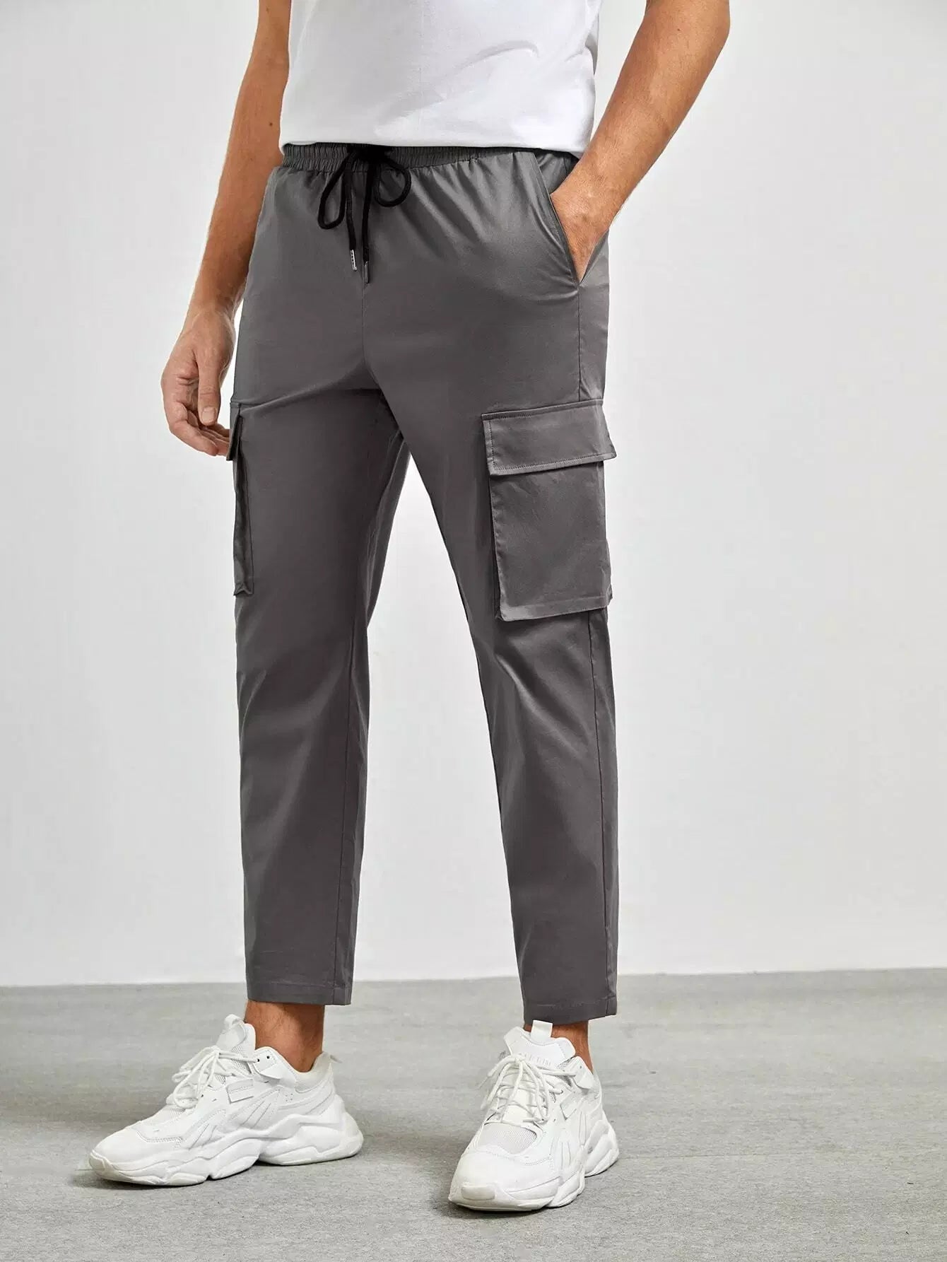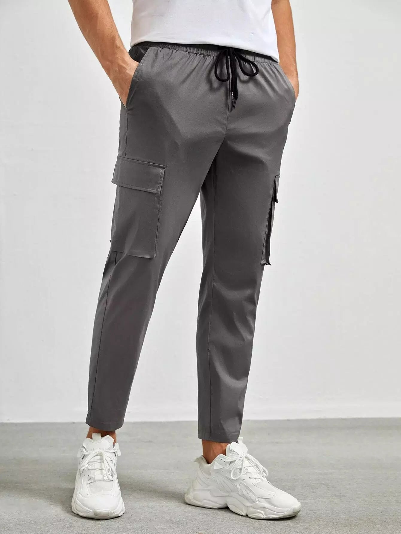 Men Drawstring Waist Flap Pocket Cargo Pants