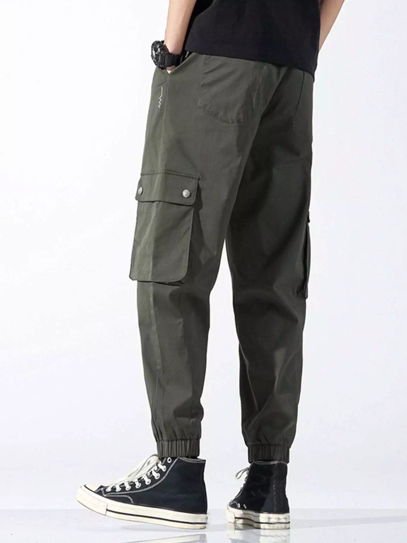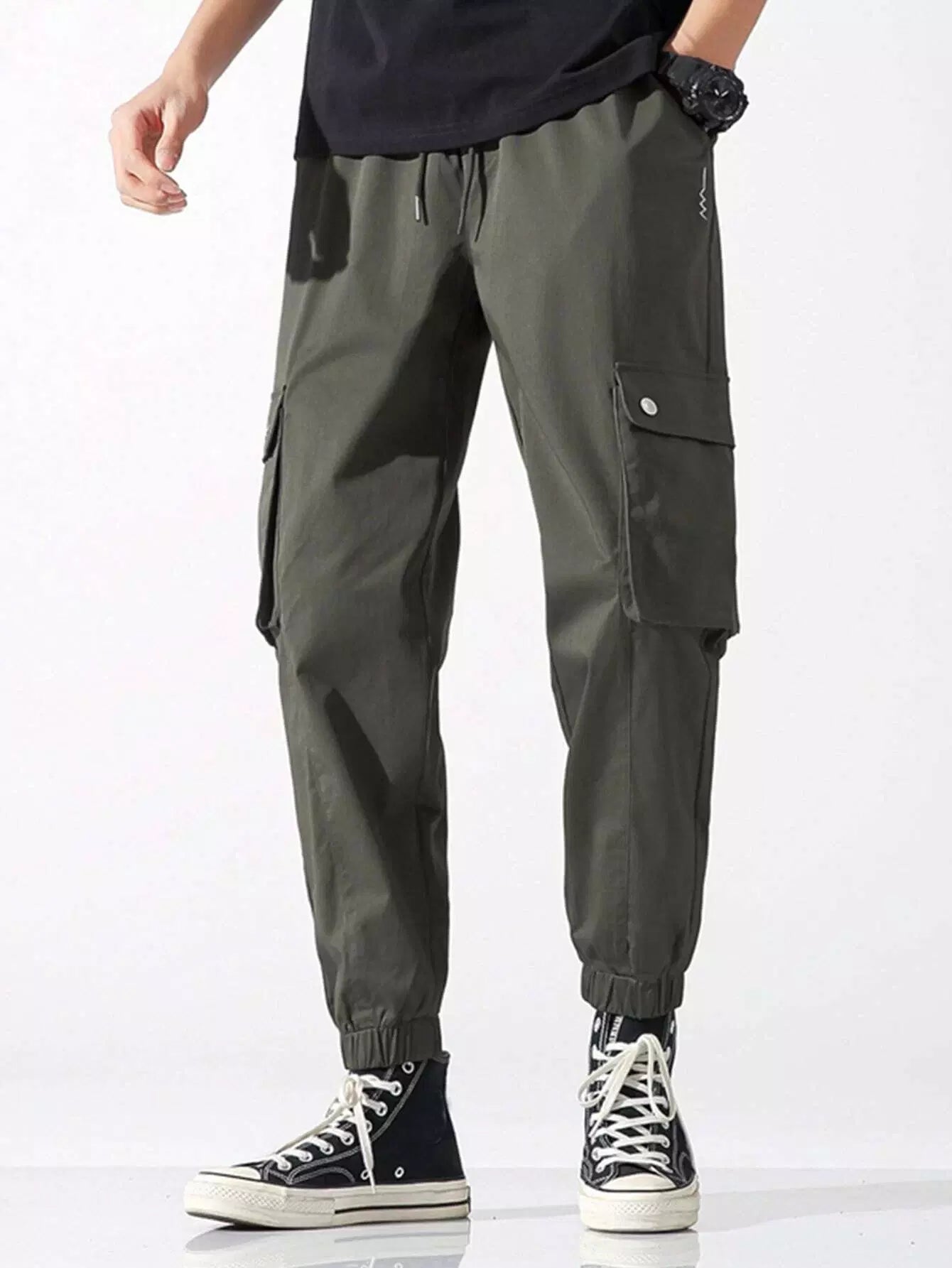 Men Drawstring Waist Flap Pocket Cargo Pants