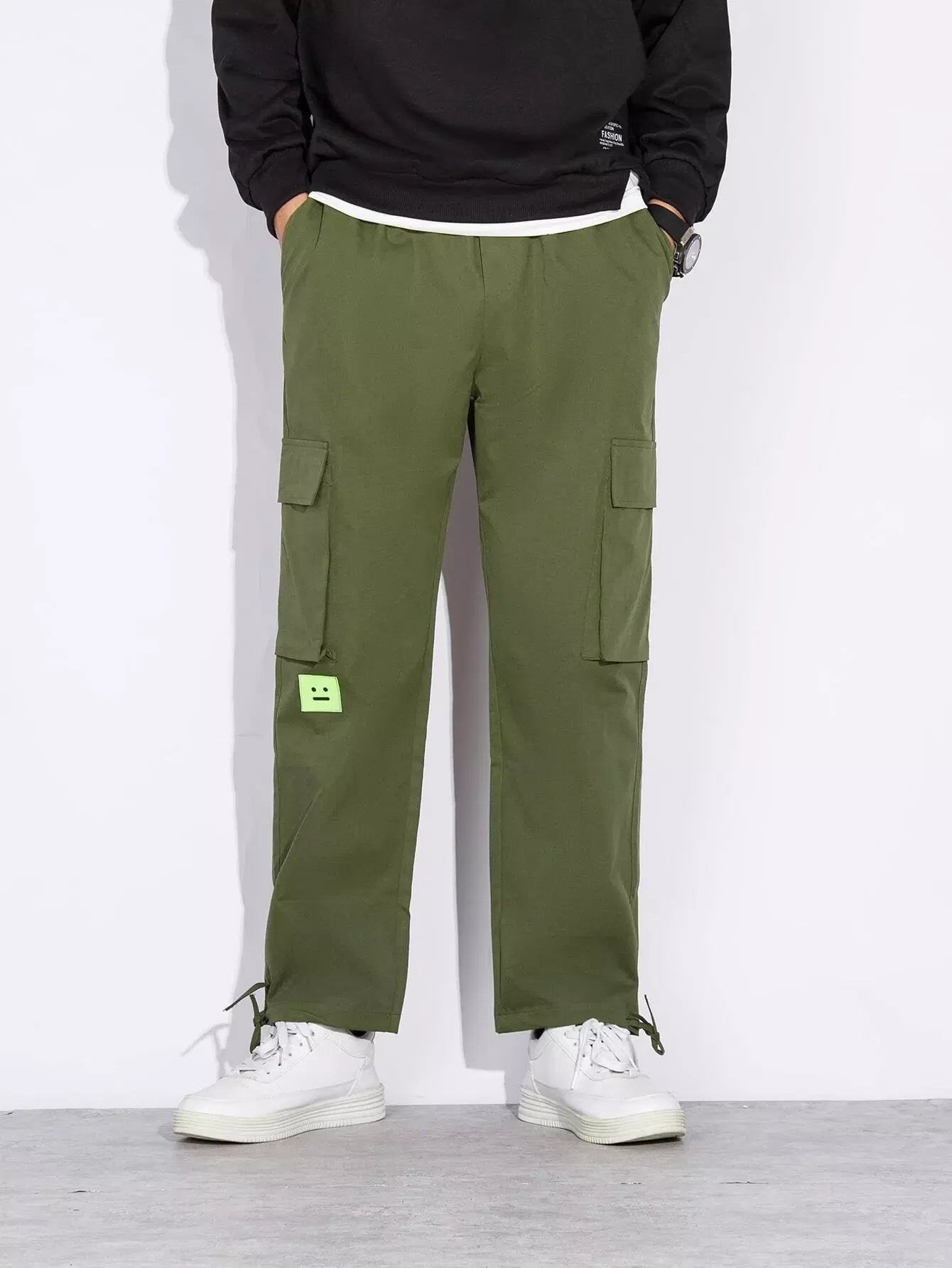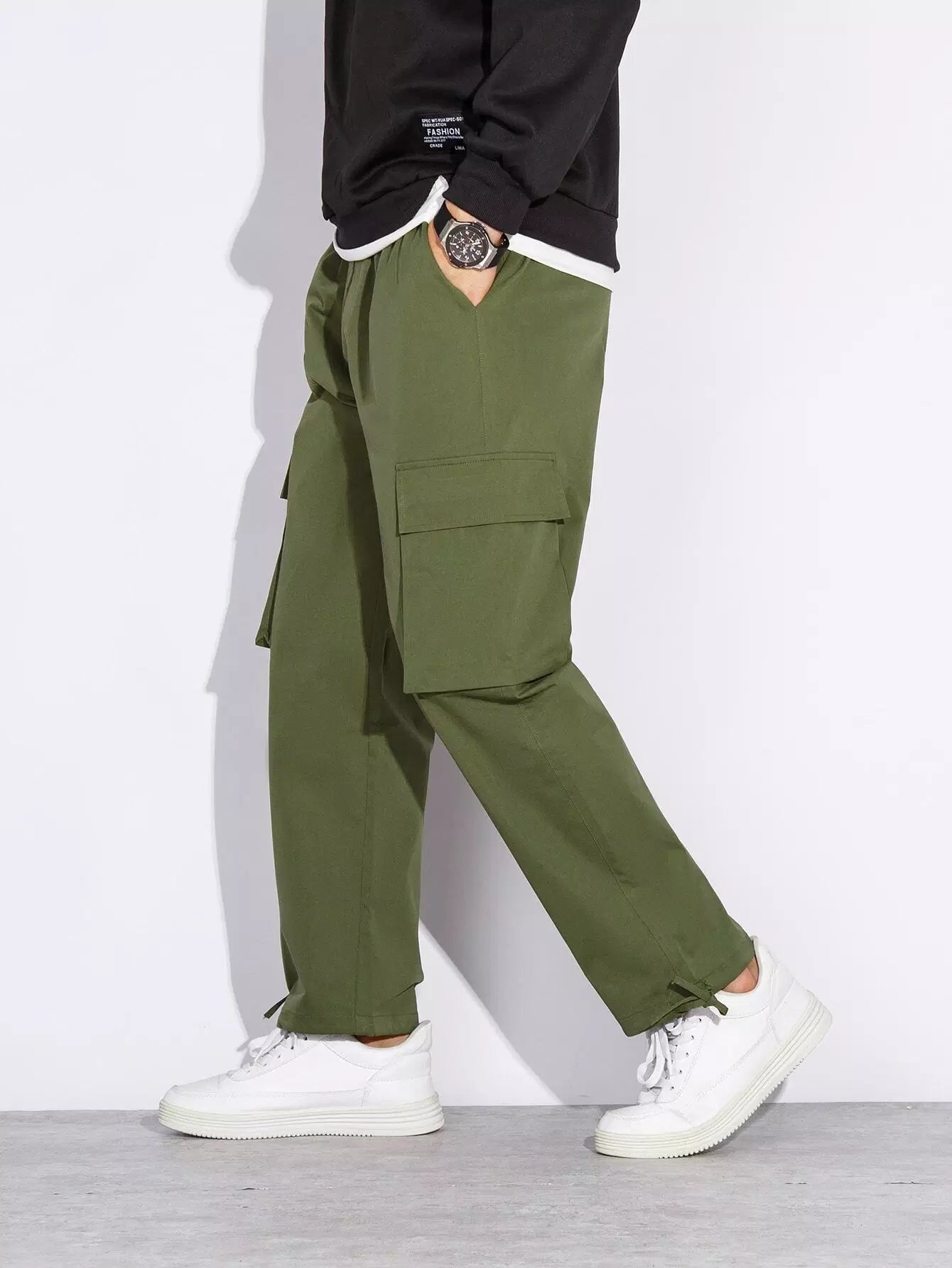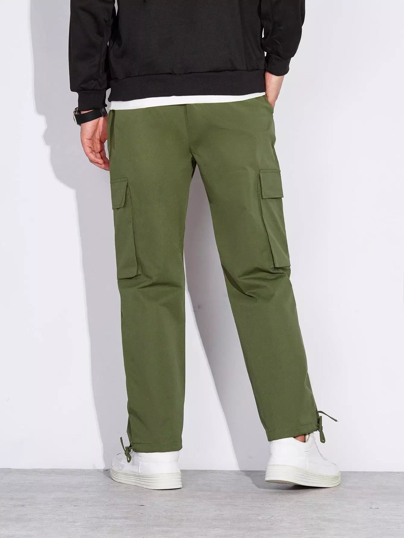 Men Drawstring Waist & Hem Flap Pocket Cargo Pants