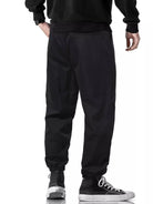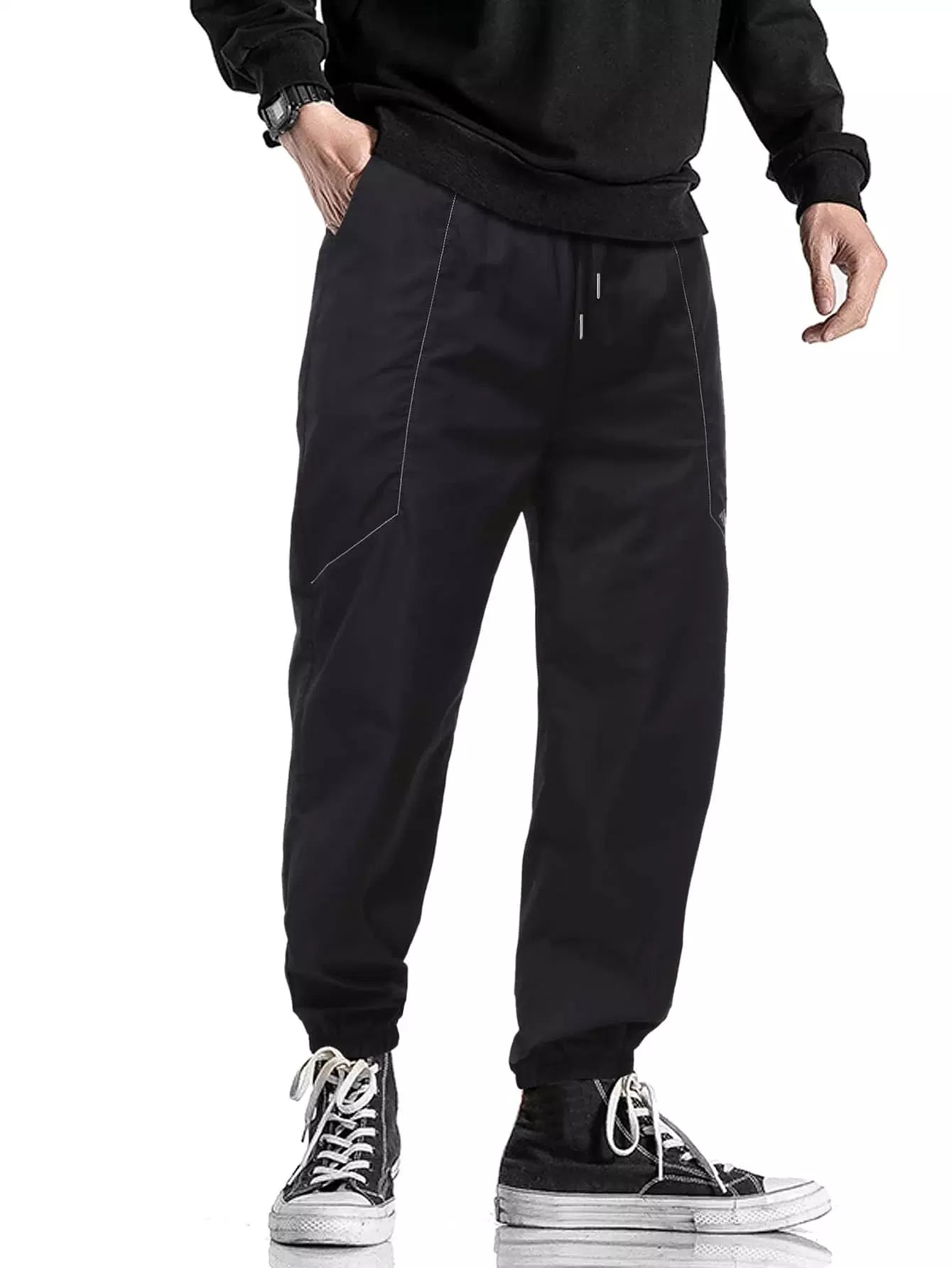 Men Drawstring Waist Slant Pocket Tapered Pants