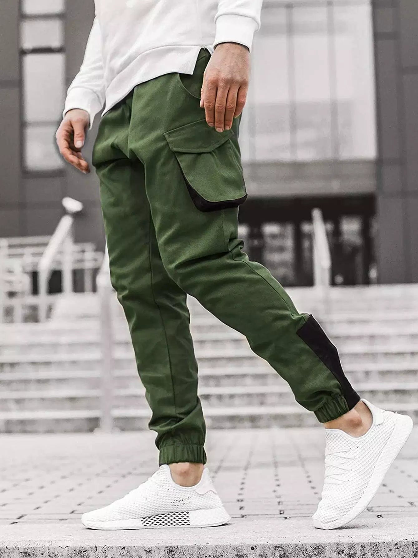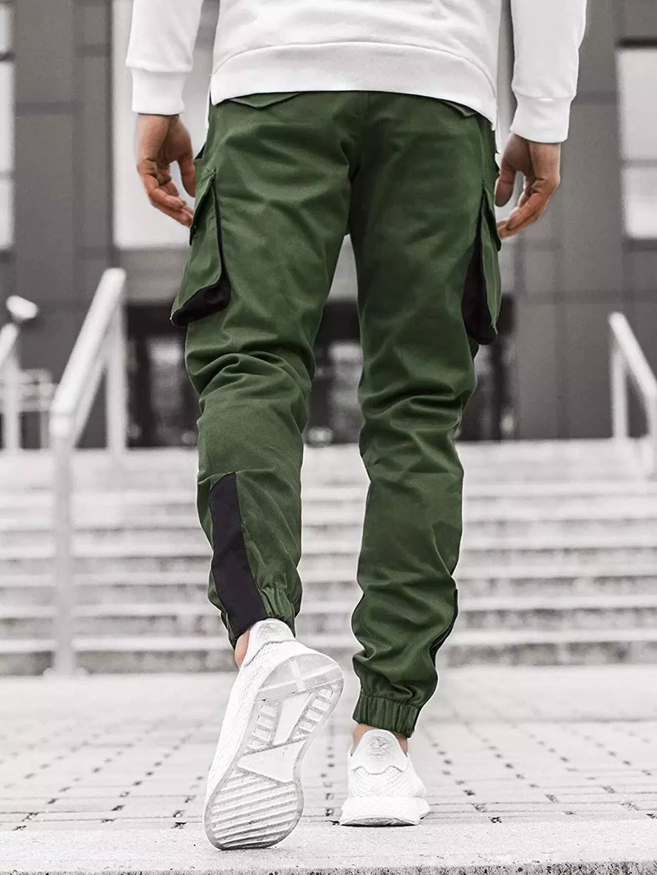 Men Flap Pocket Contrast Panel Cargo Pants