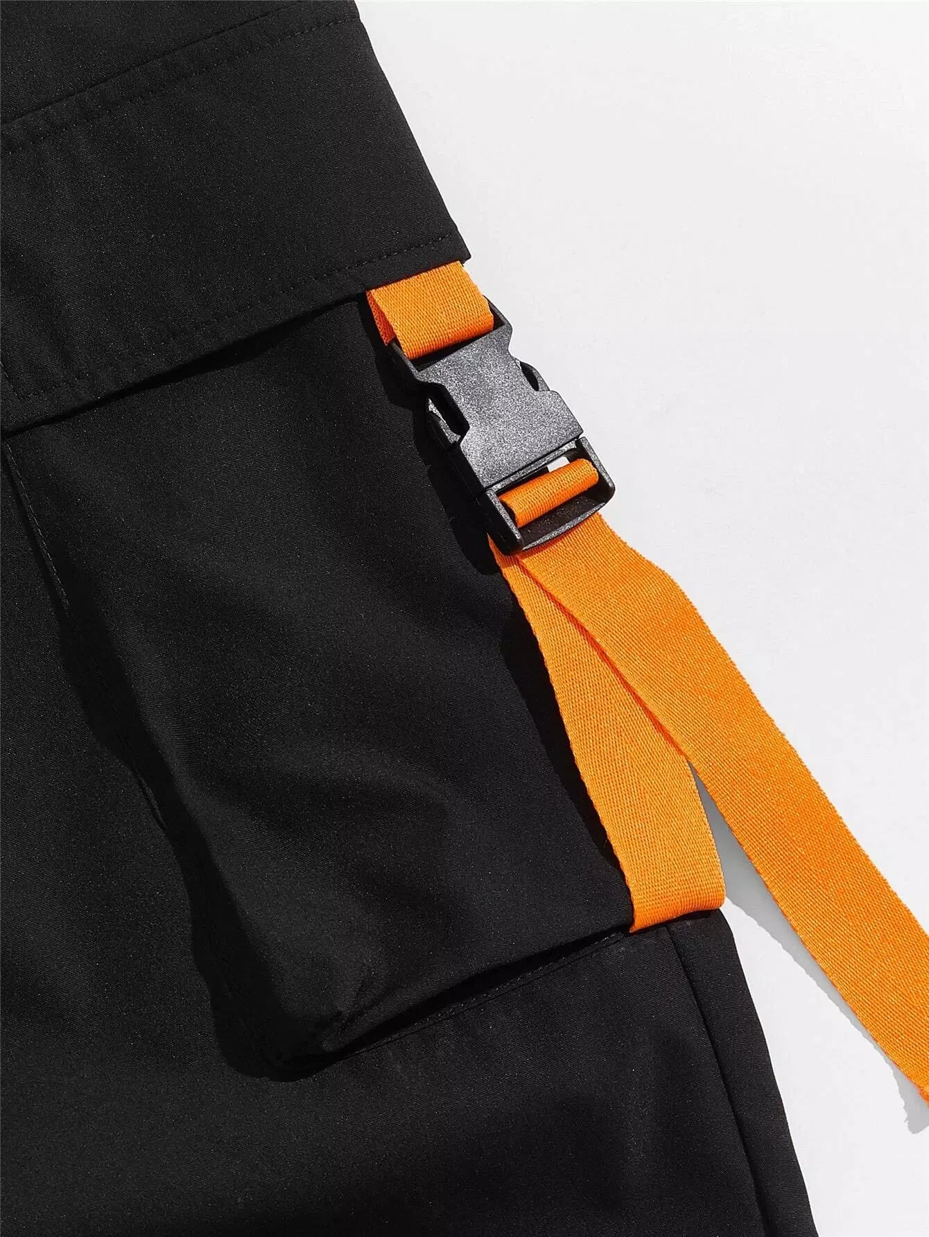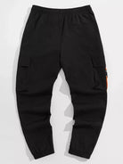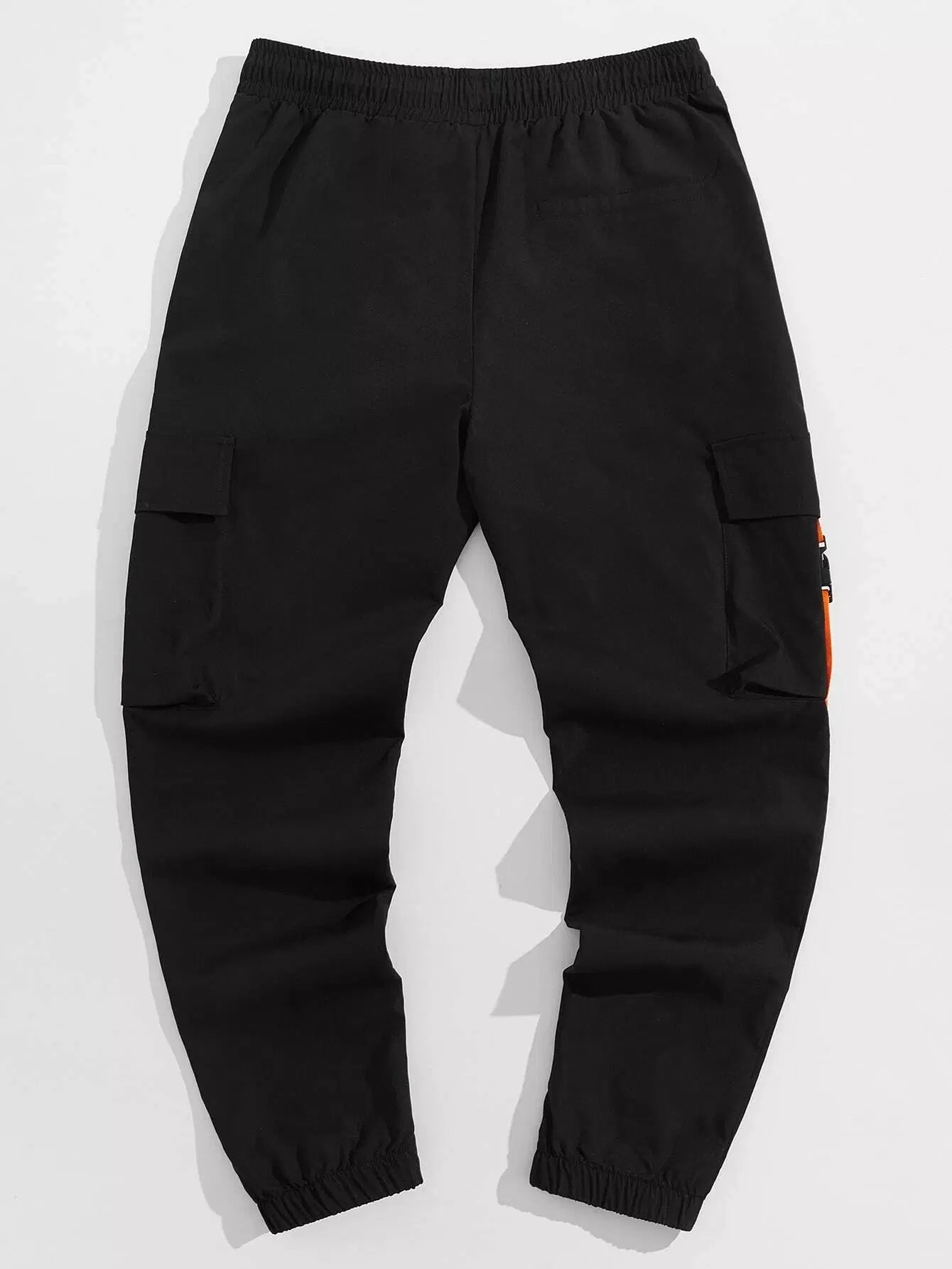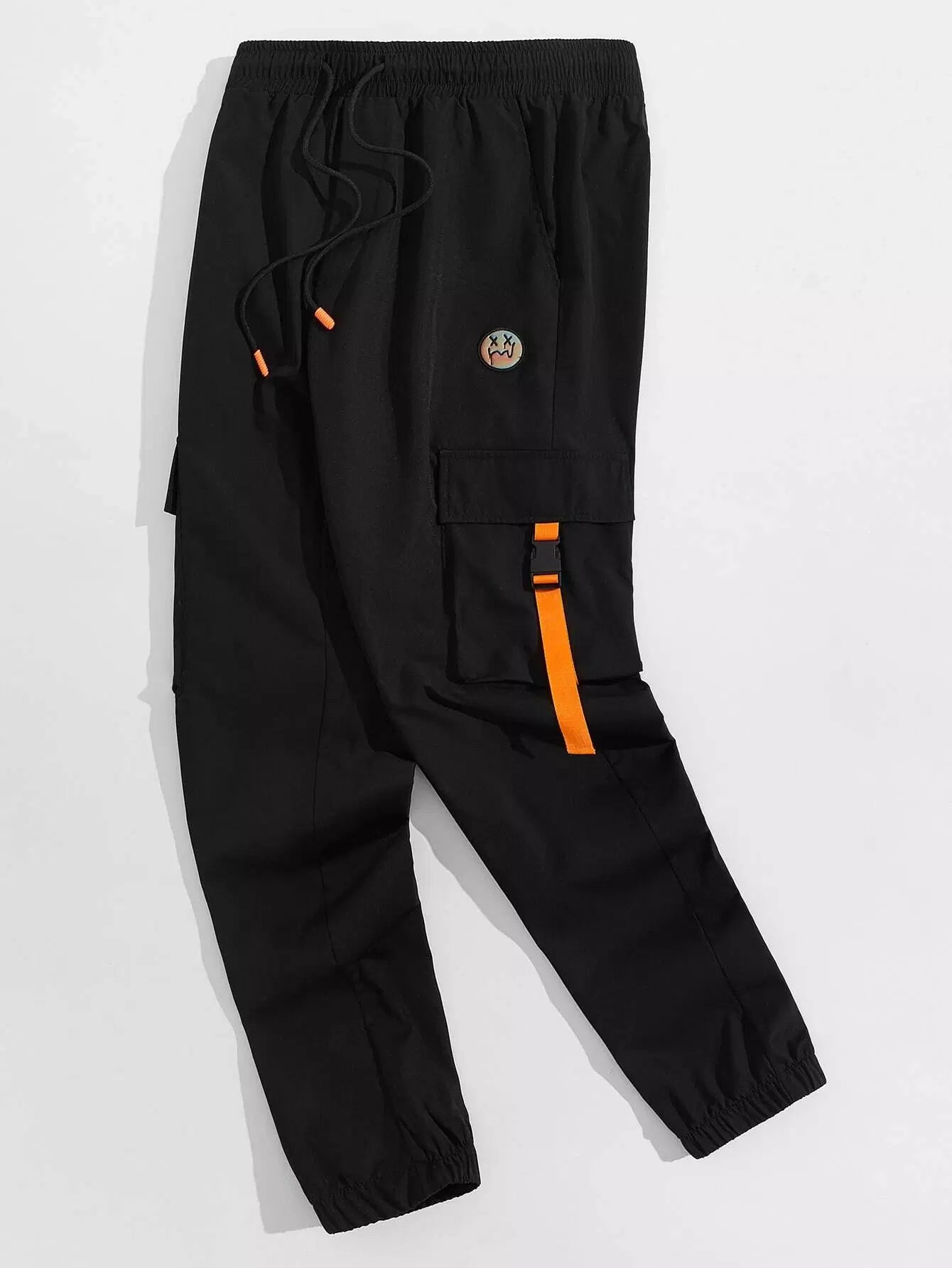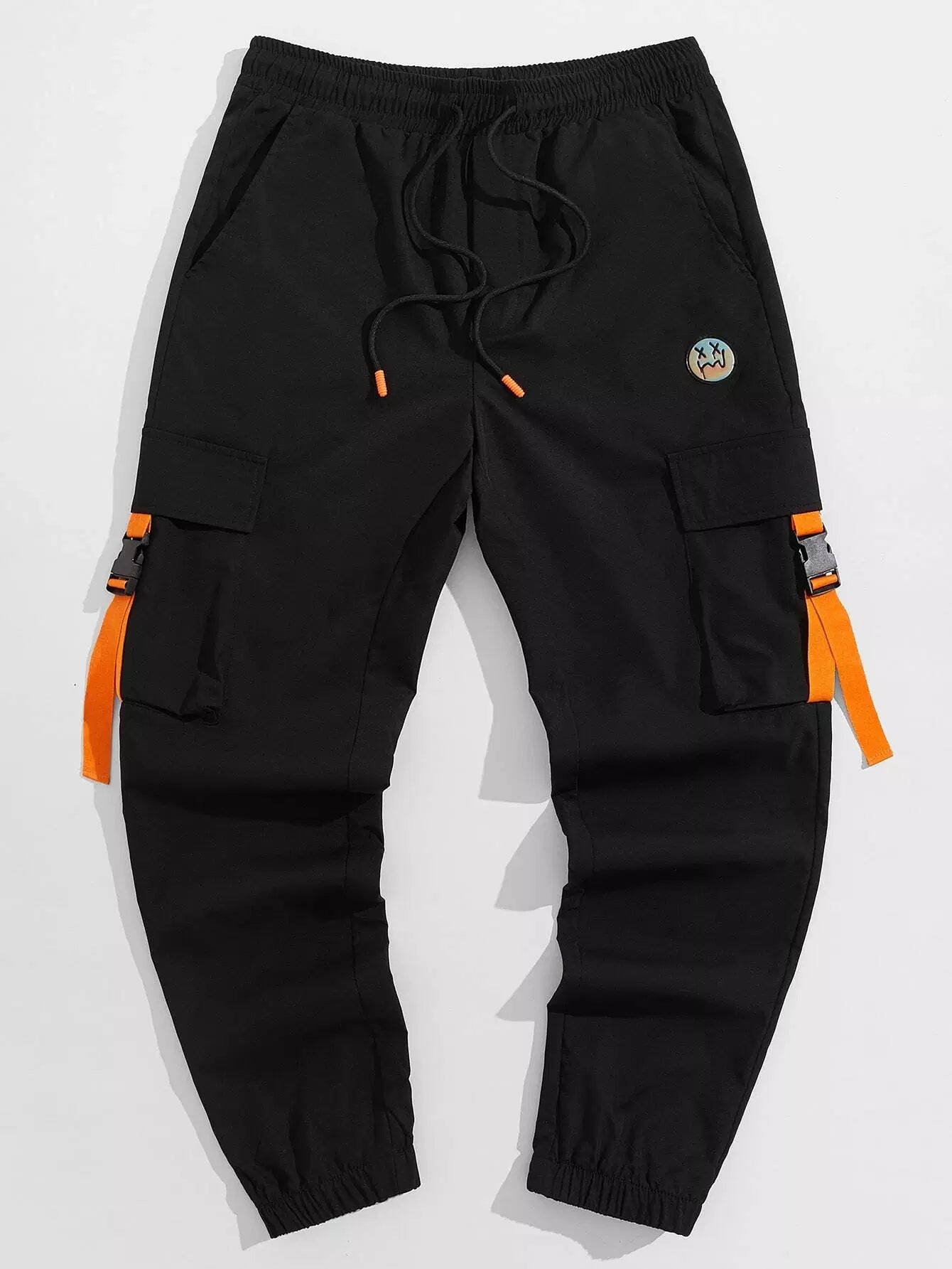Men Flap Pocket Side Drawstring Waist Patch Detail Buckled Pants