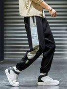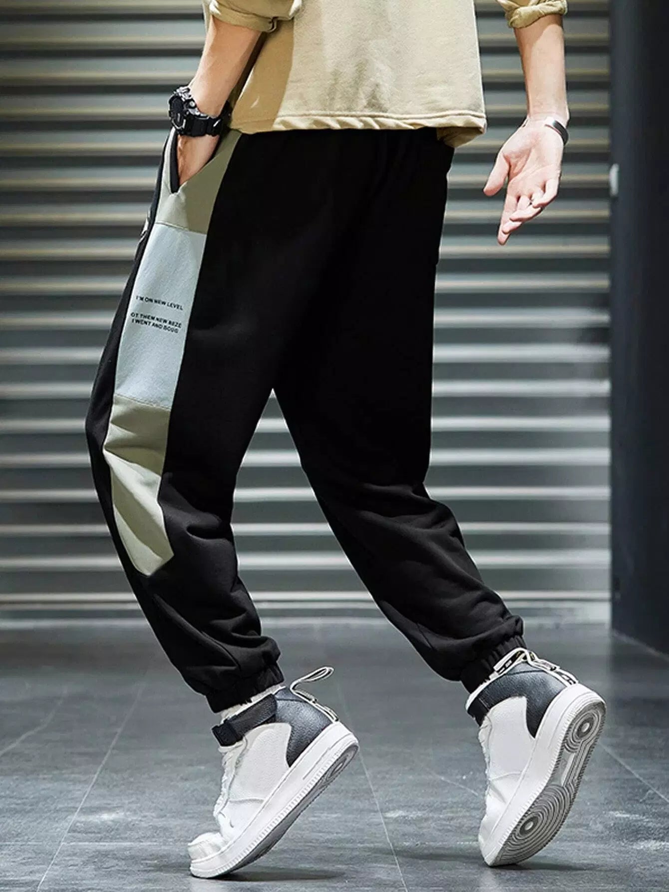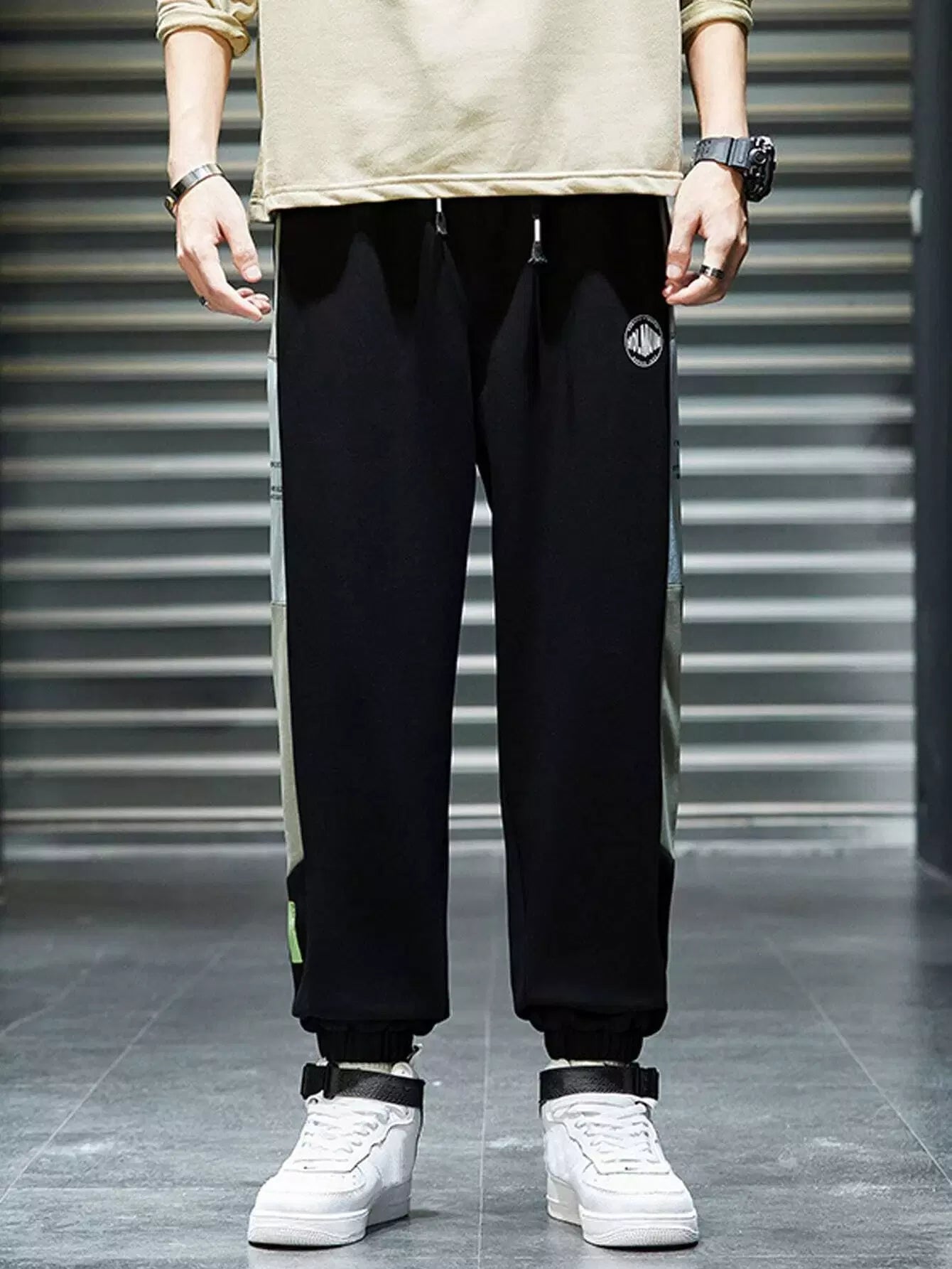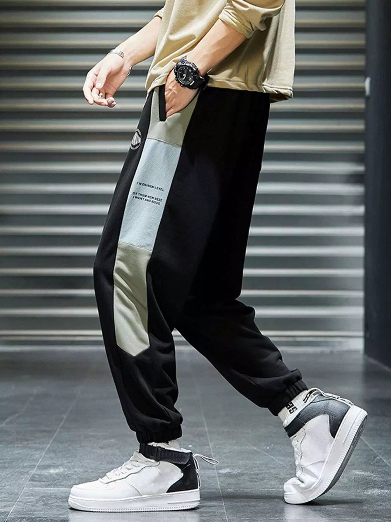 Men Letter Graphic Contrast Panel Drawstring Pants