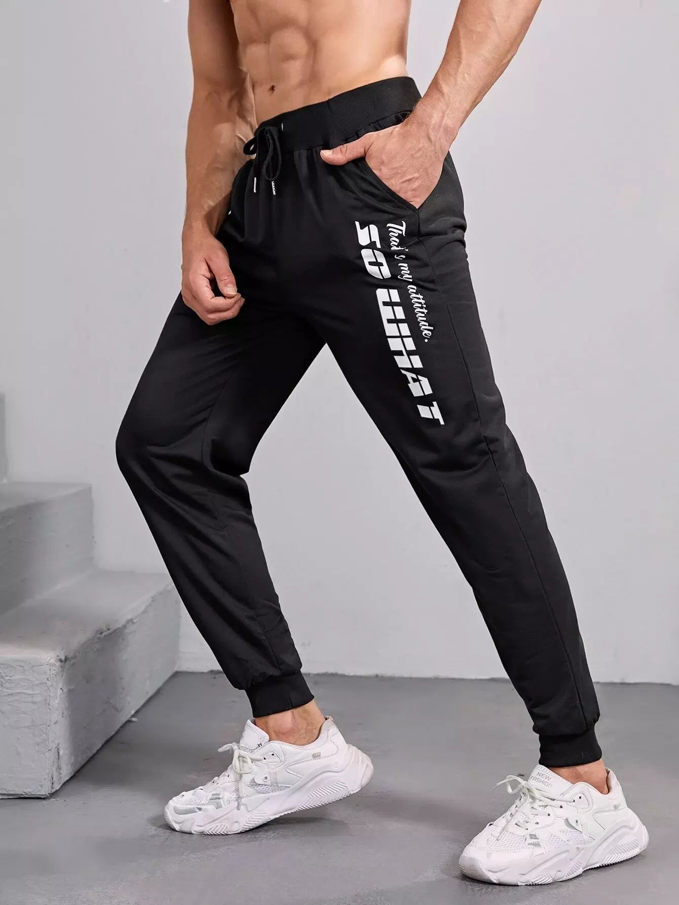 Men Letter Graphic Drawstring Waist Sport Pants