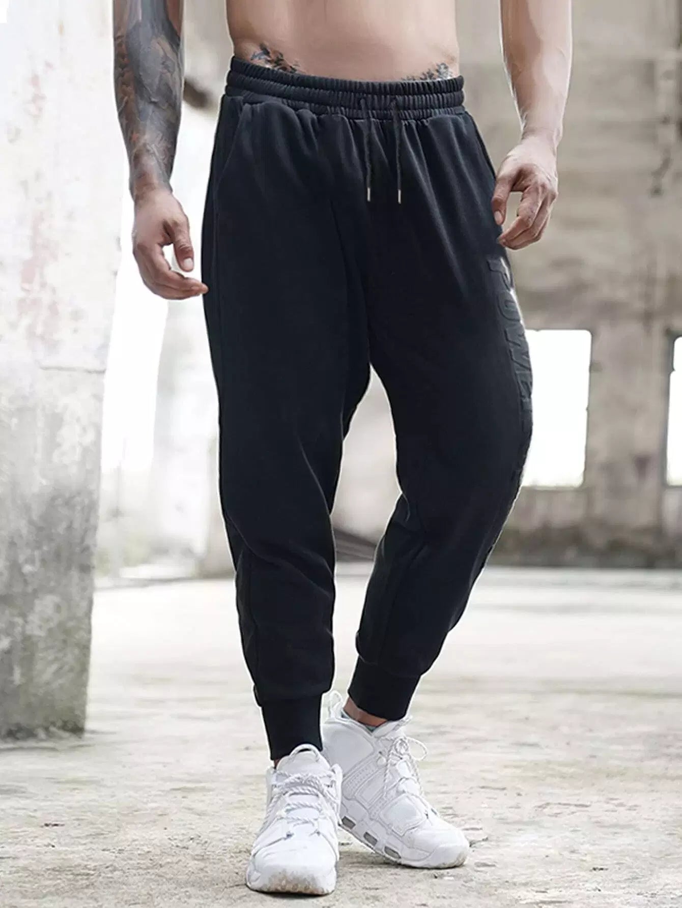 Men Letter Pattern Drawstring Pants
