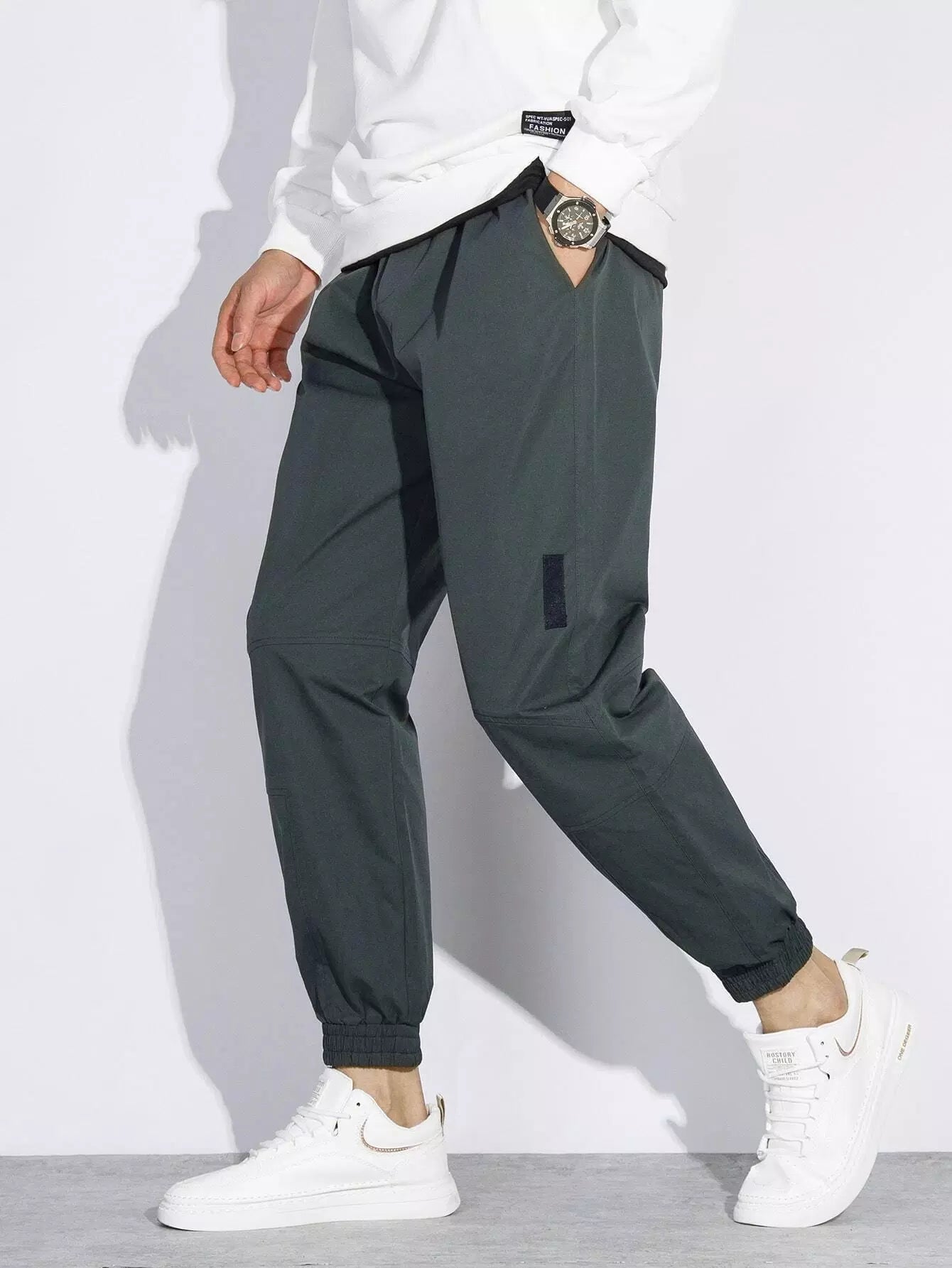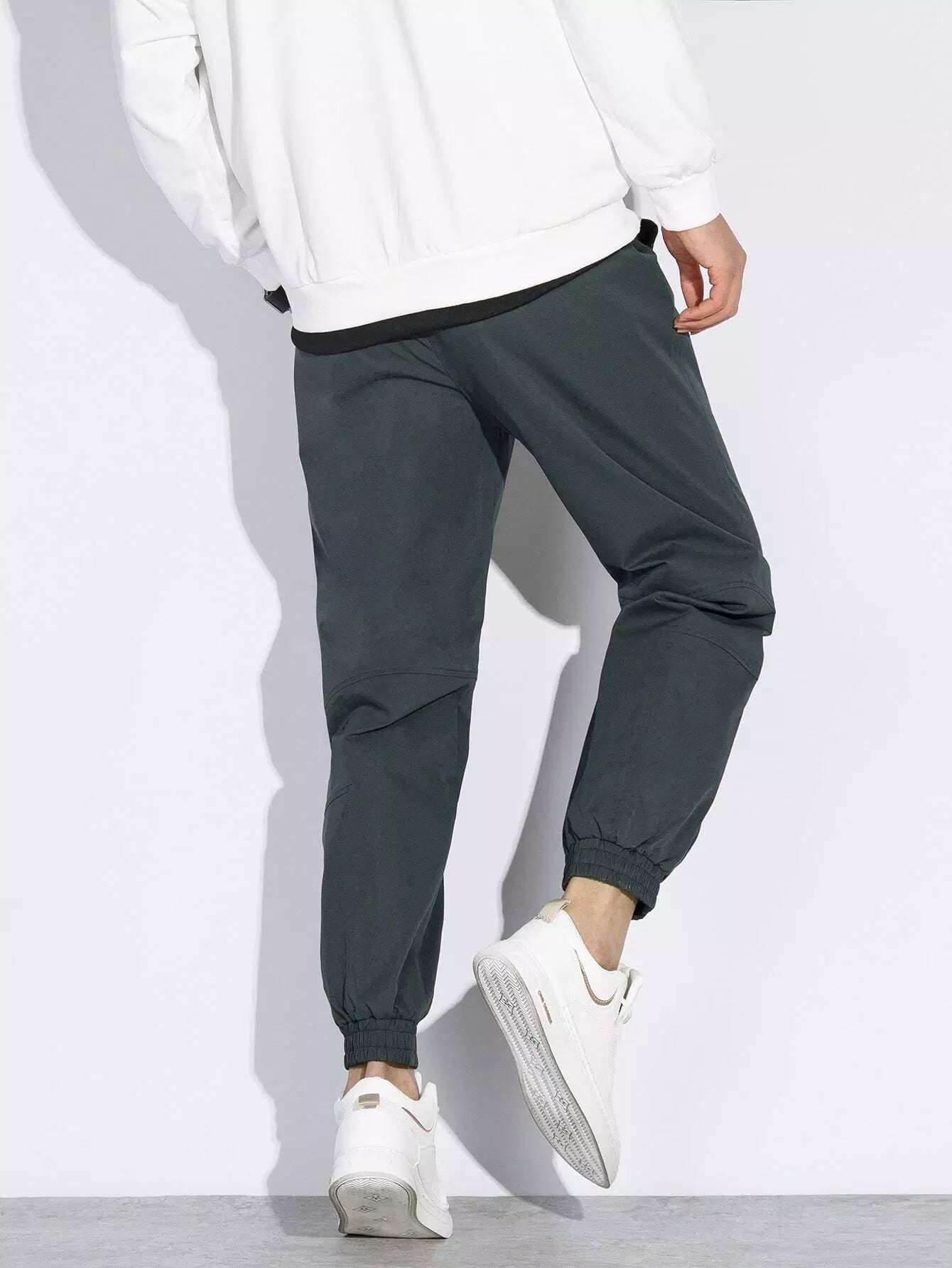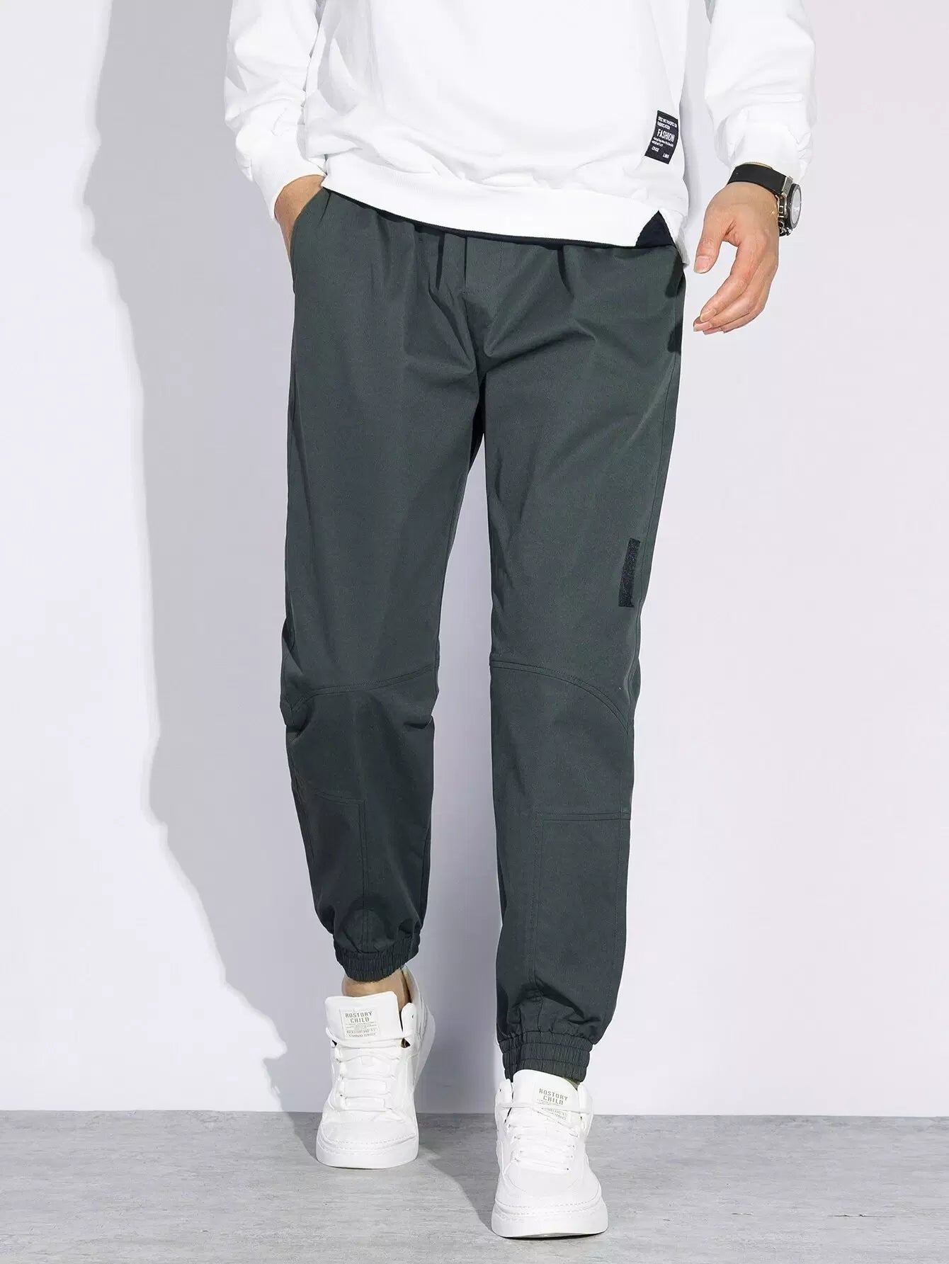 Men Slant Pocket Drawstring Waist Tapered Pants