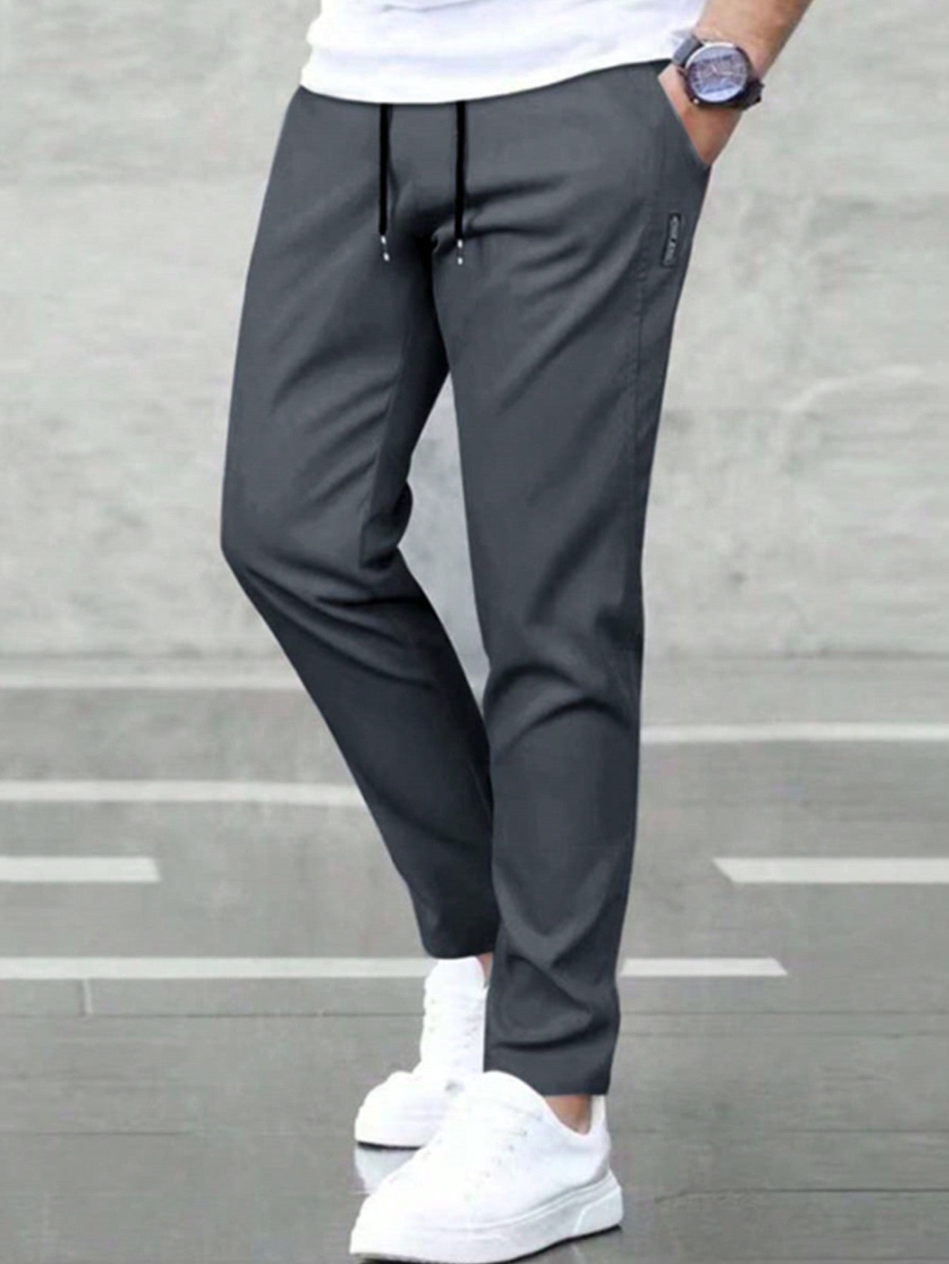 Men's Drawstring Waist Pocket Straight Leg Running Sports Casual Pants