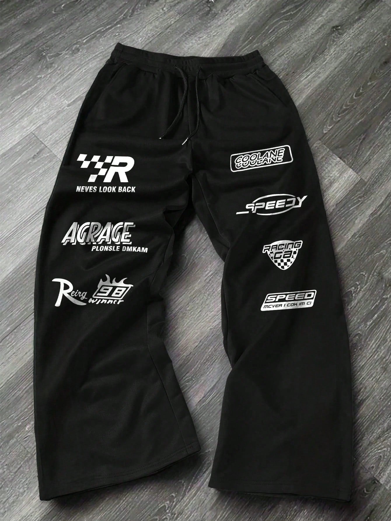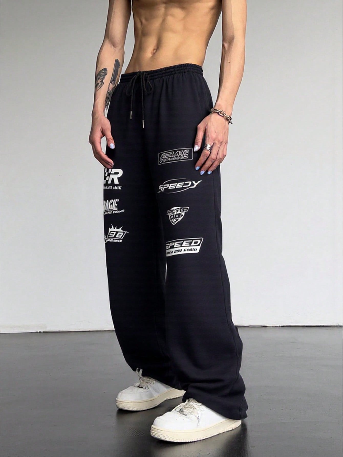Men's Drawstring Waist Printed Sports Pants, Long Casual Baggy Sweatpants, For Husband, Boyfriend Gifts