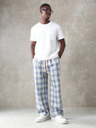 men SUMWON Plaid Check Loose Fit Wide Leg Trousers Casual Street Style All-Season Pants With Side Pockets Classic Office Versatile Lightweight Loungewear Bottoms