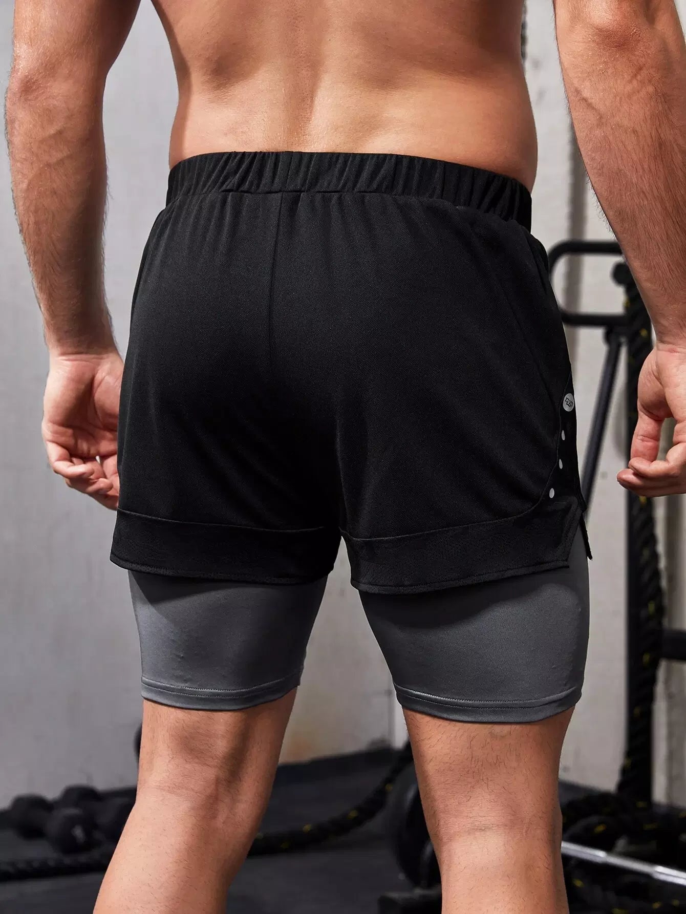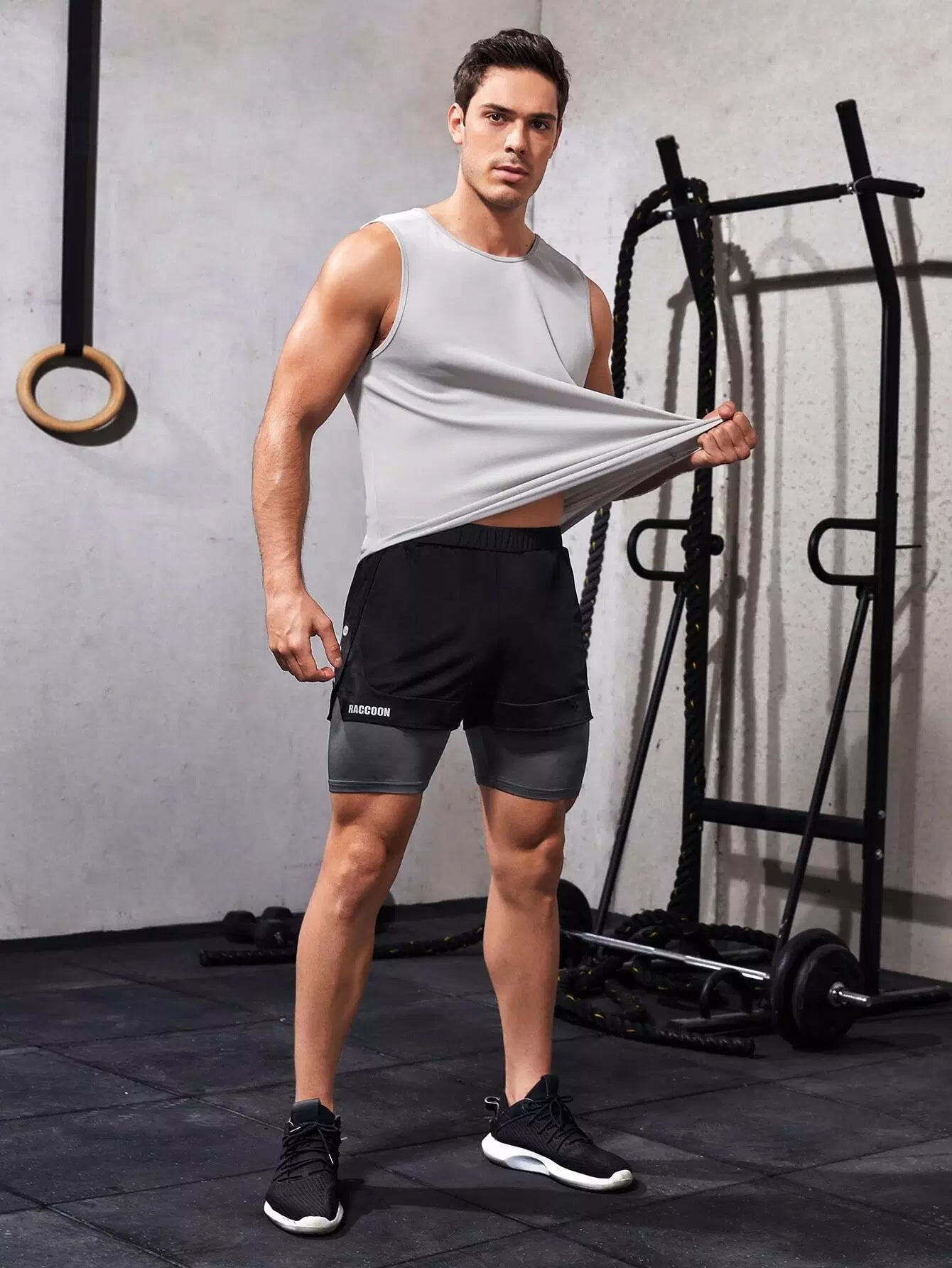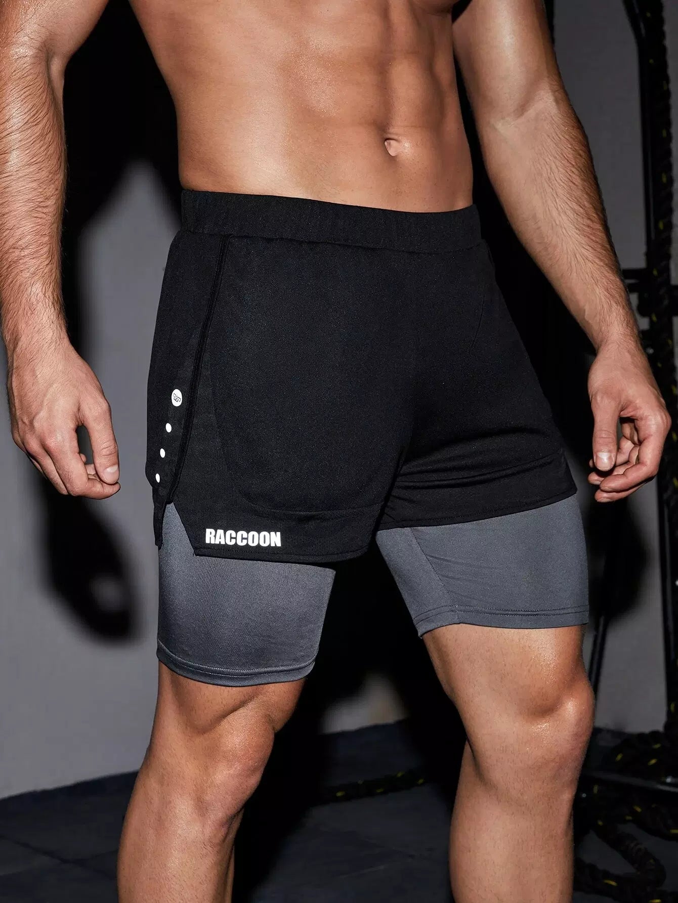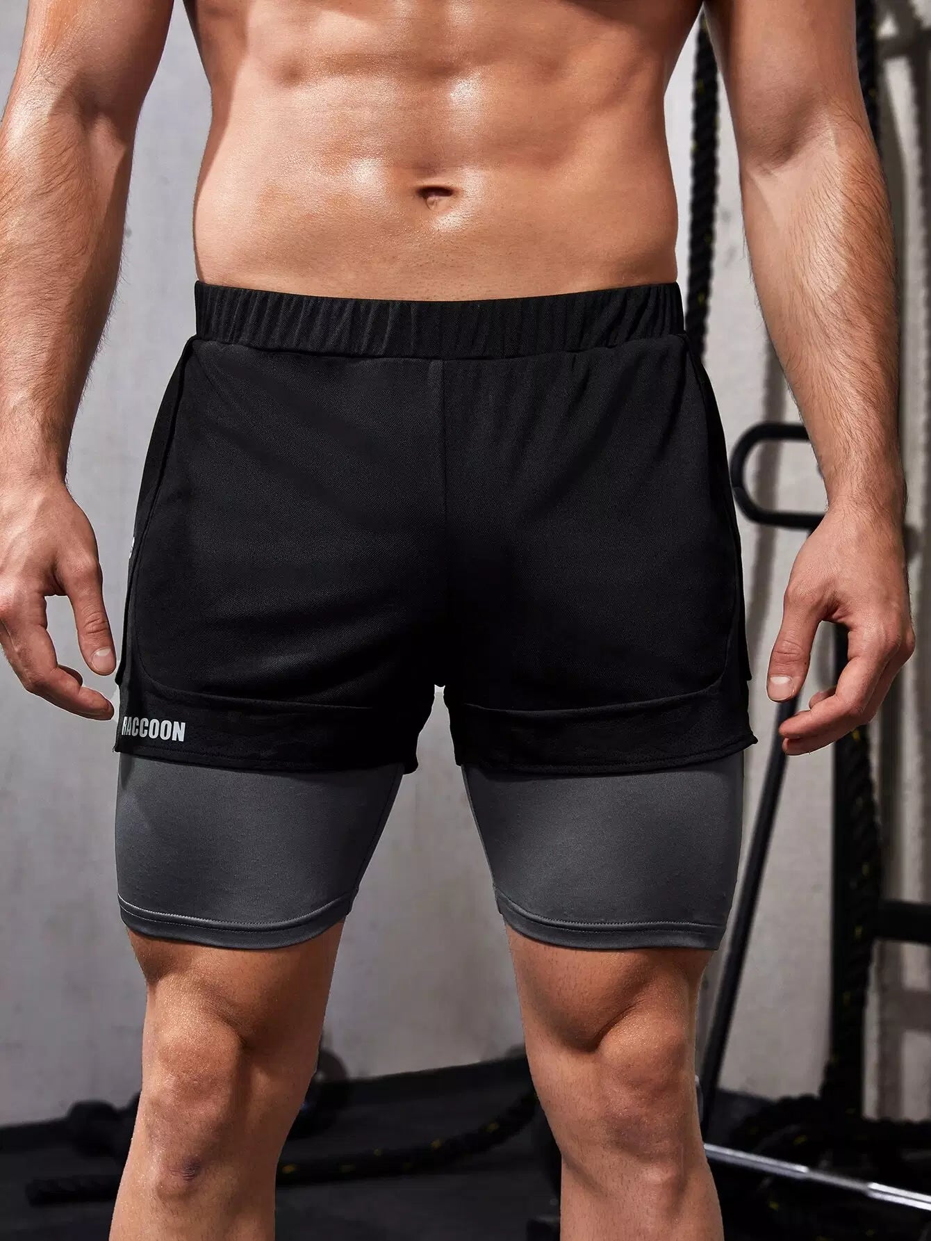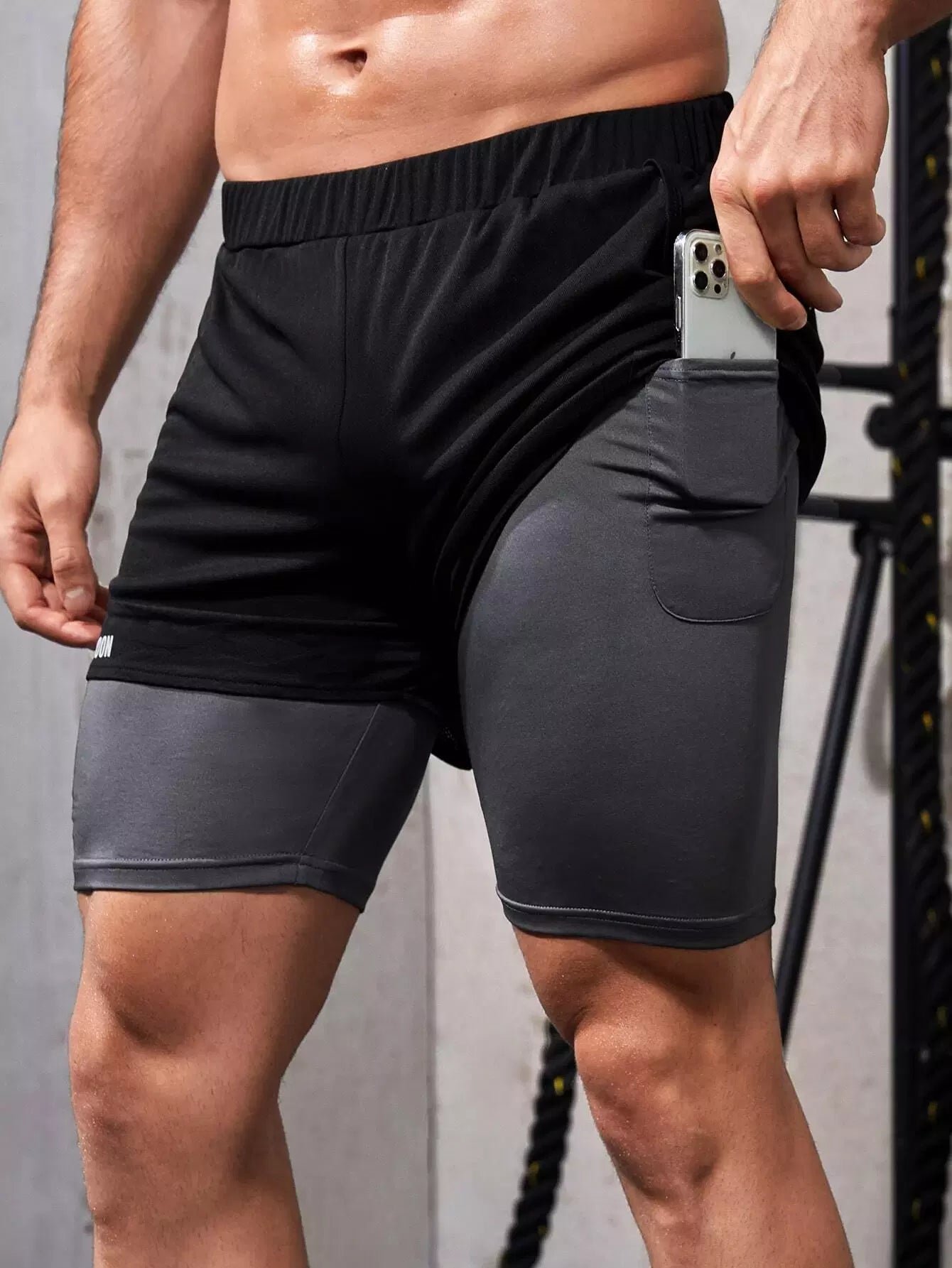 Men Reflective Letter Graphic Sports Shorts With Phone Pocket