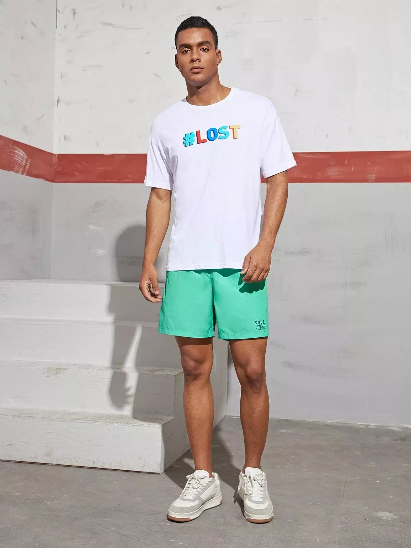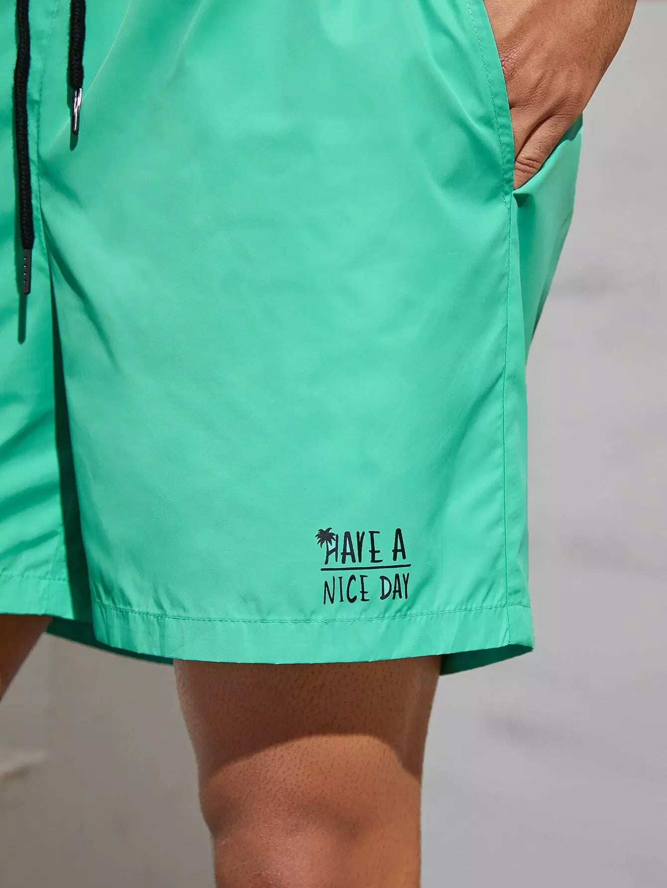 Men Slogan Graphic Drawstring Waist Wind Shorts
