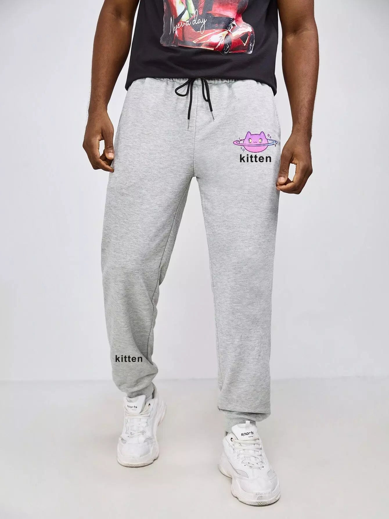 Guys Letter Cartoon Graphic Drawstring Sweatpants