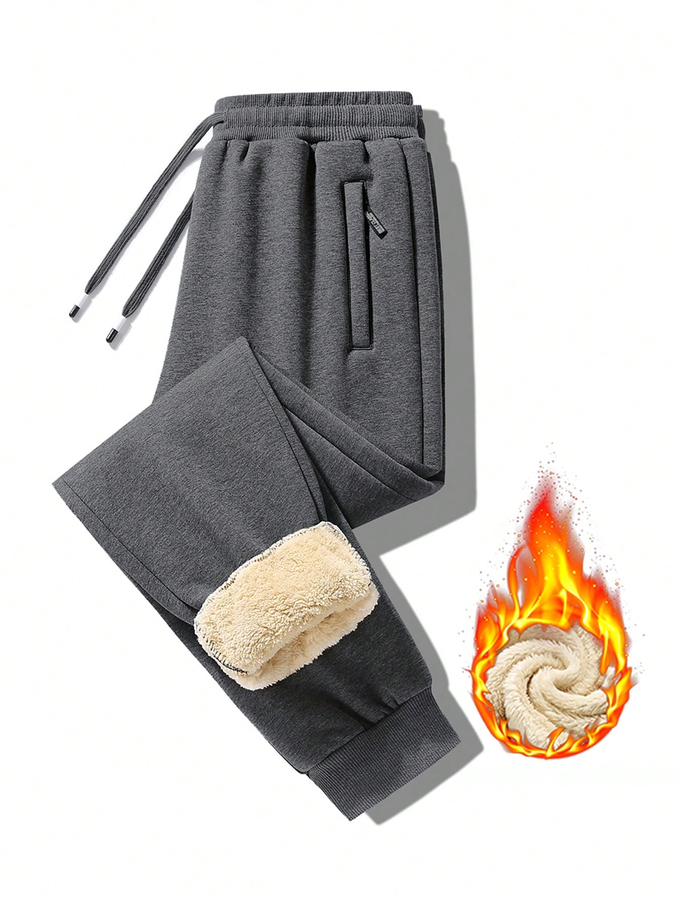 Manfinity Homme Men Drawstring Waist Thermal Lined Pants For Winter, Men's Sweatpants, Sweatpants For