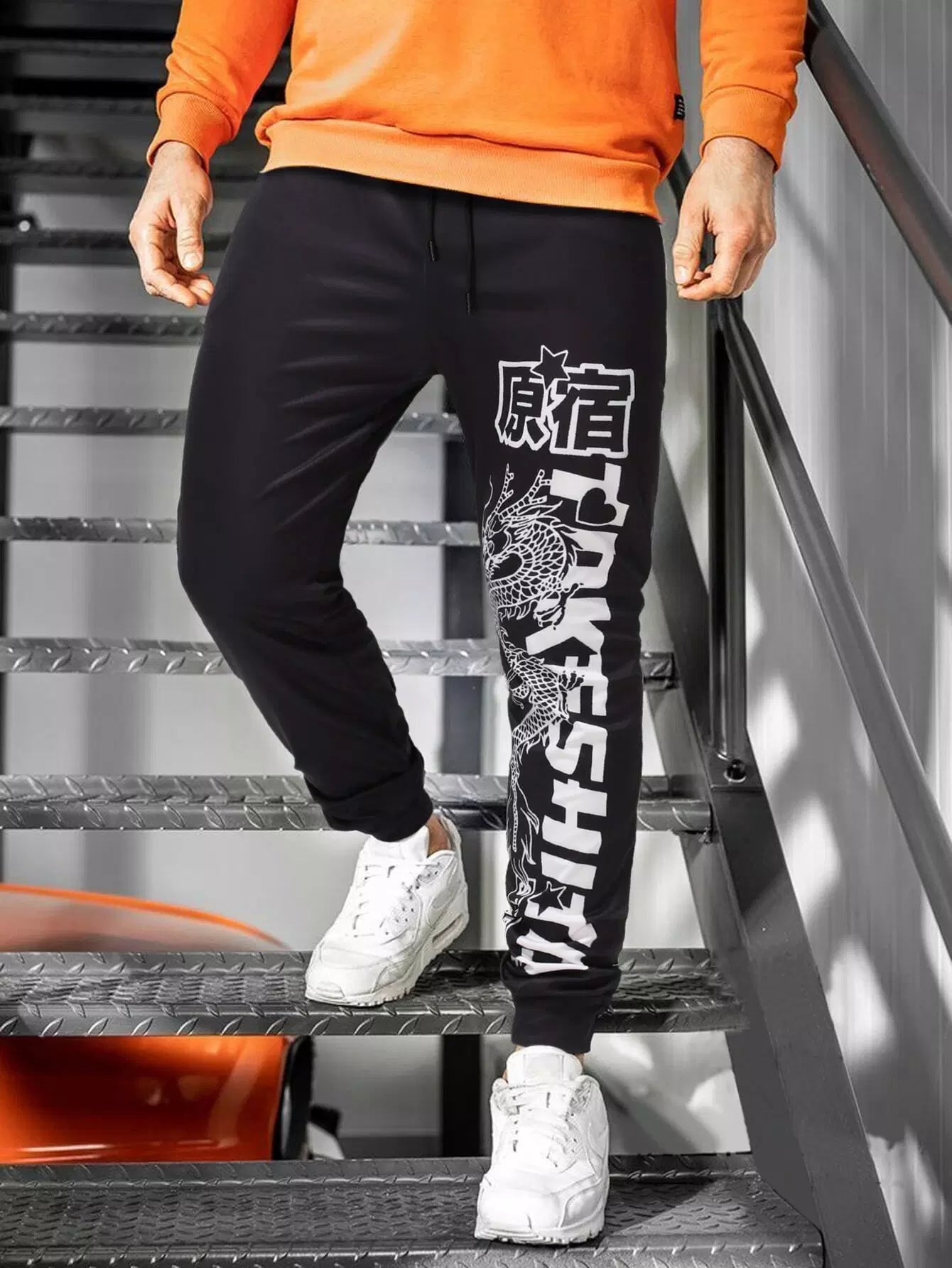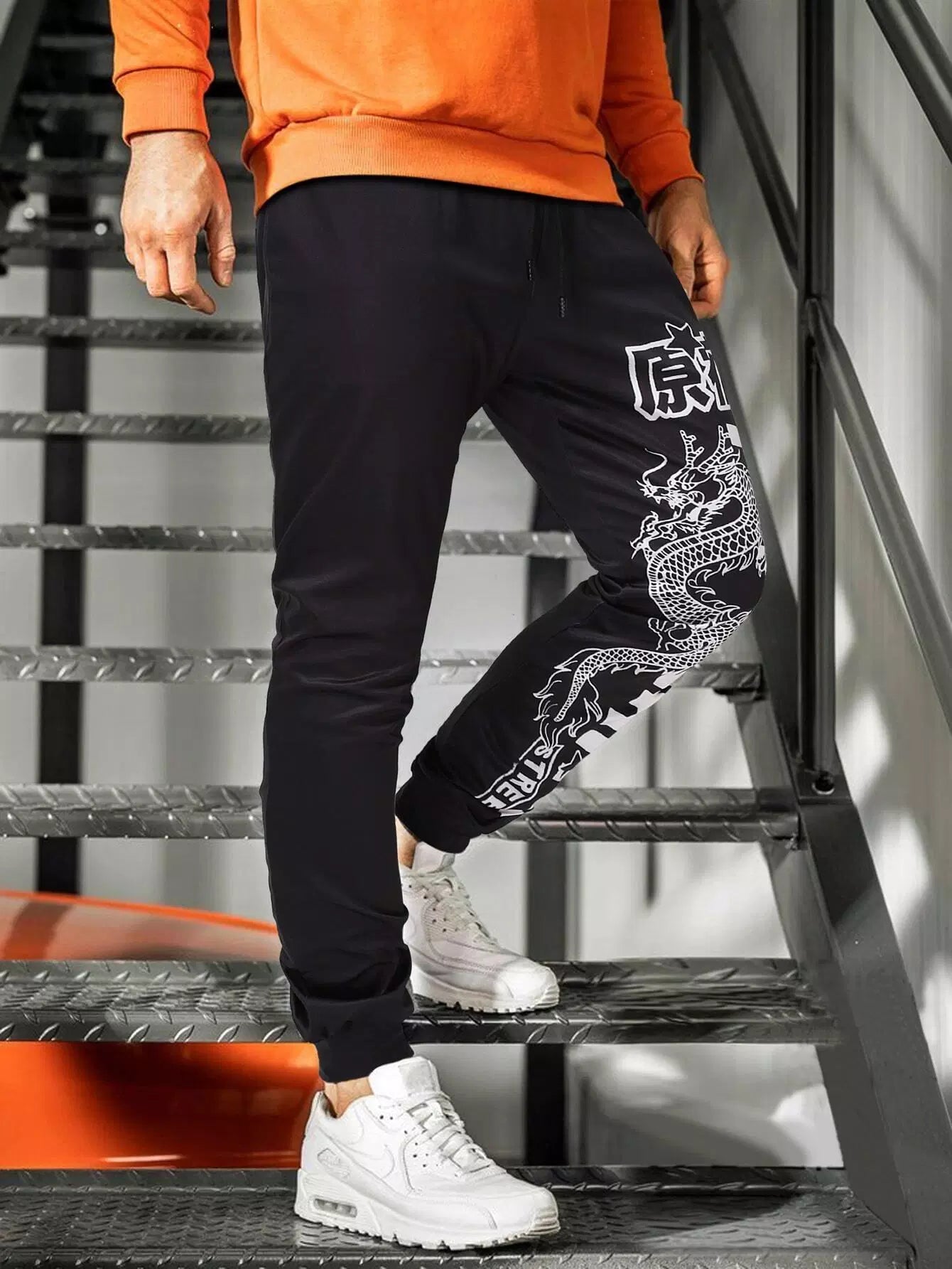 Men Chinese Dragon And Letter Graphic Sweatpants