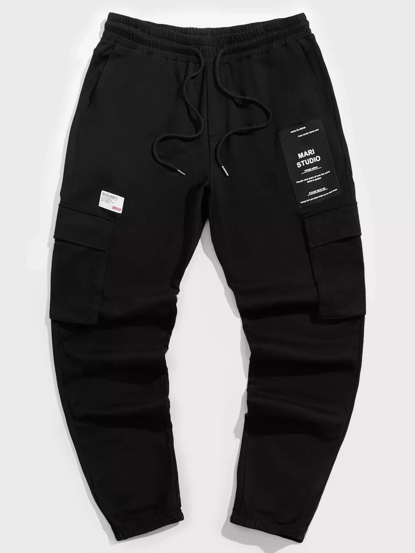 Men Flap Pocket Patched Detail Drawstring Waist Sweatpants