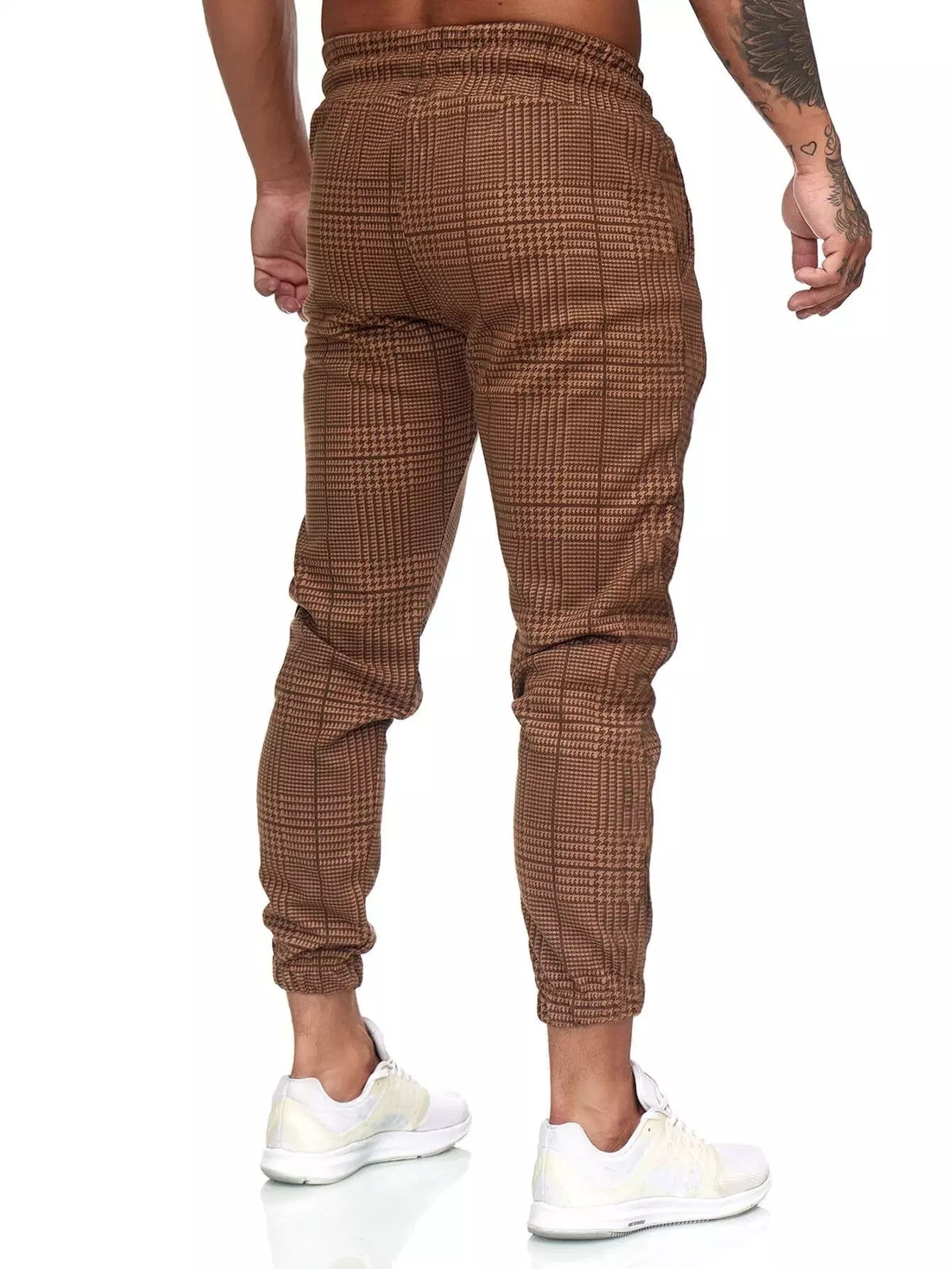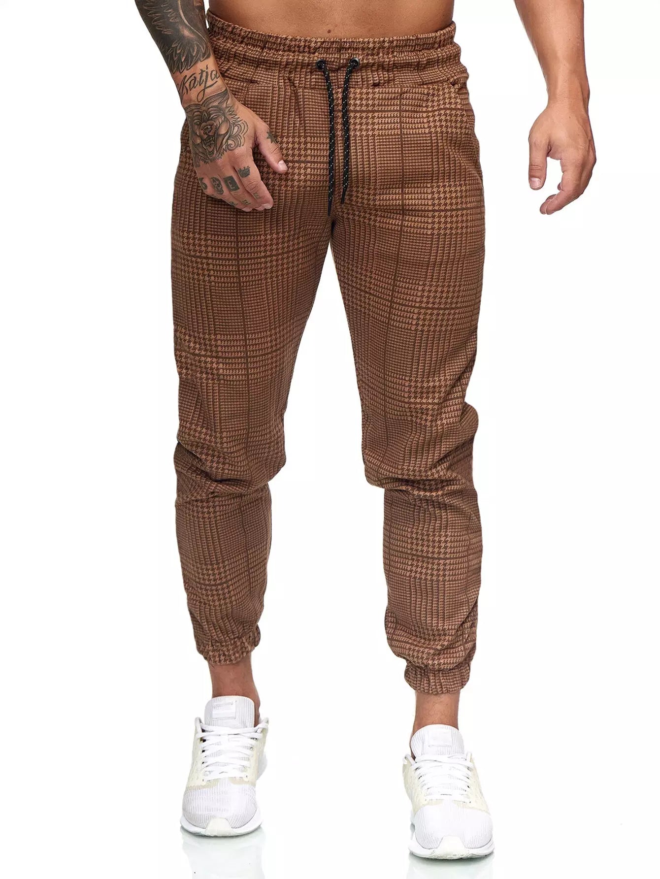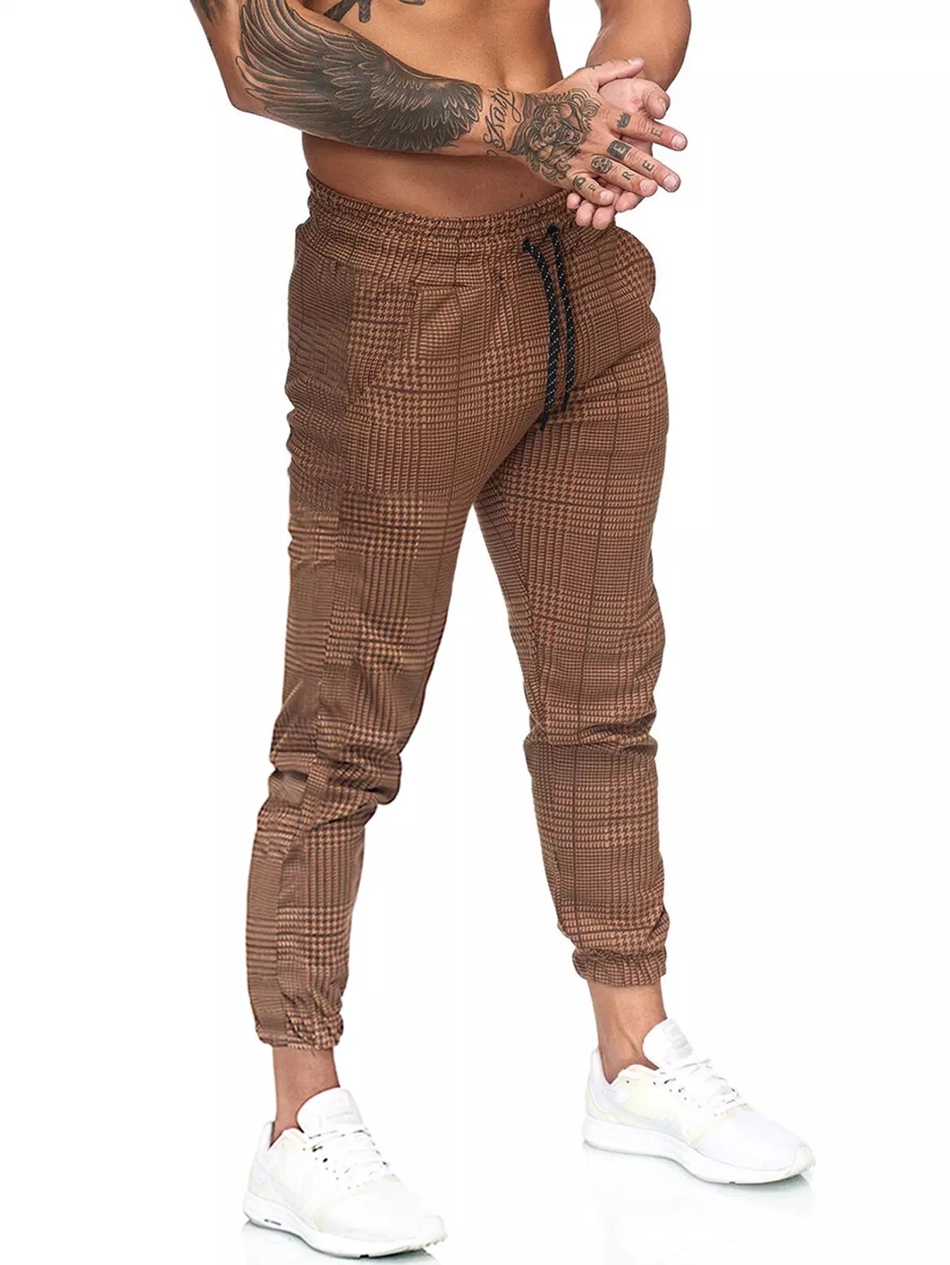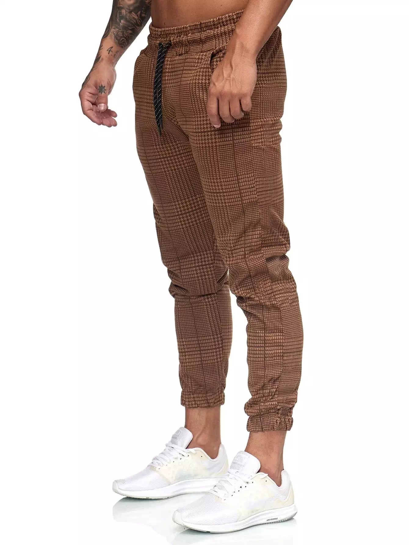 Men Houndstooth Print Drawstring Waist Sweatpants