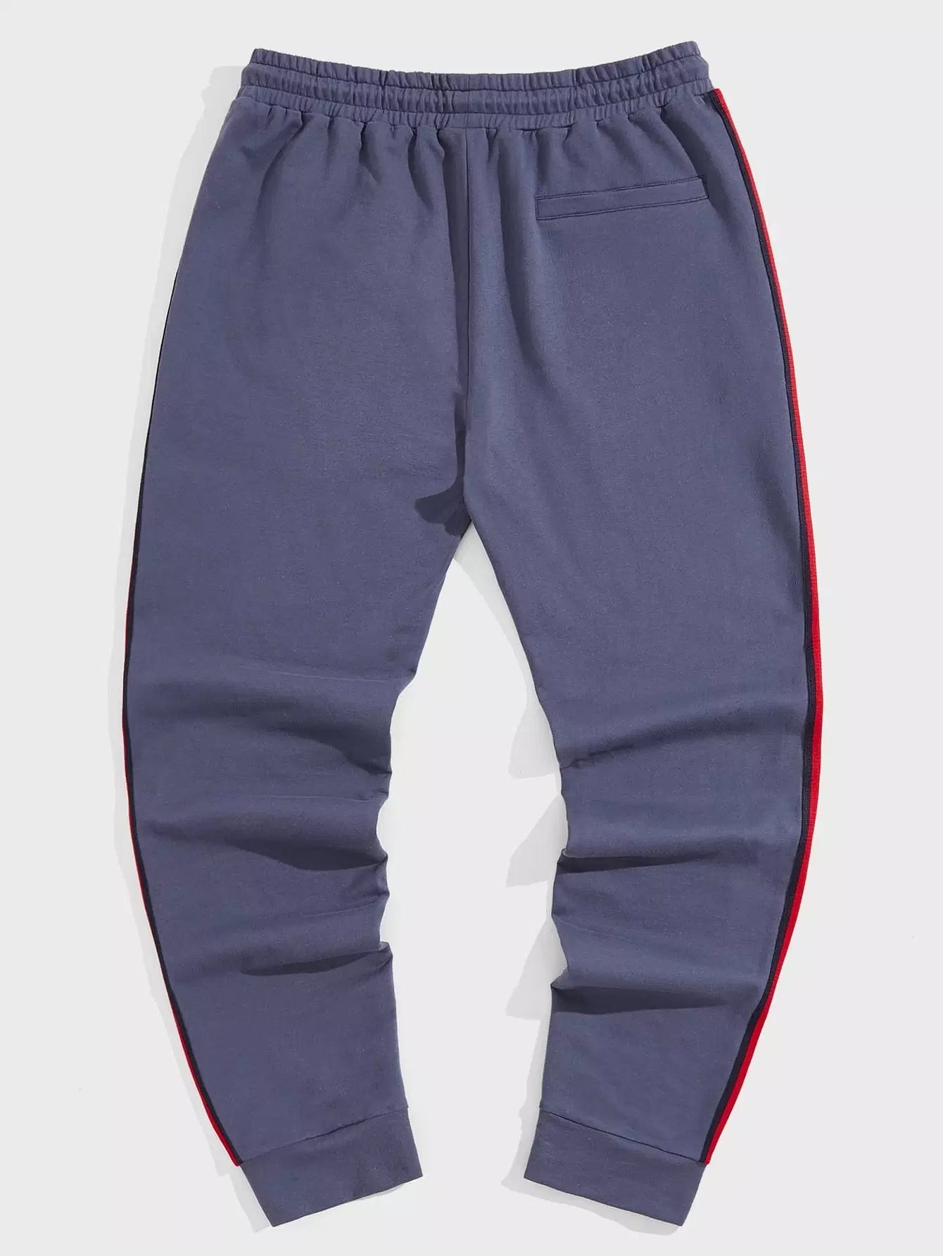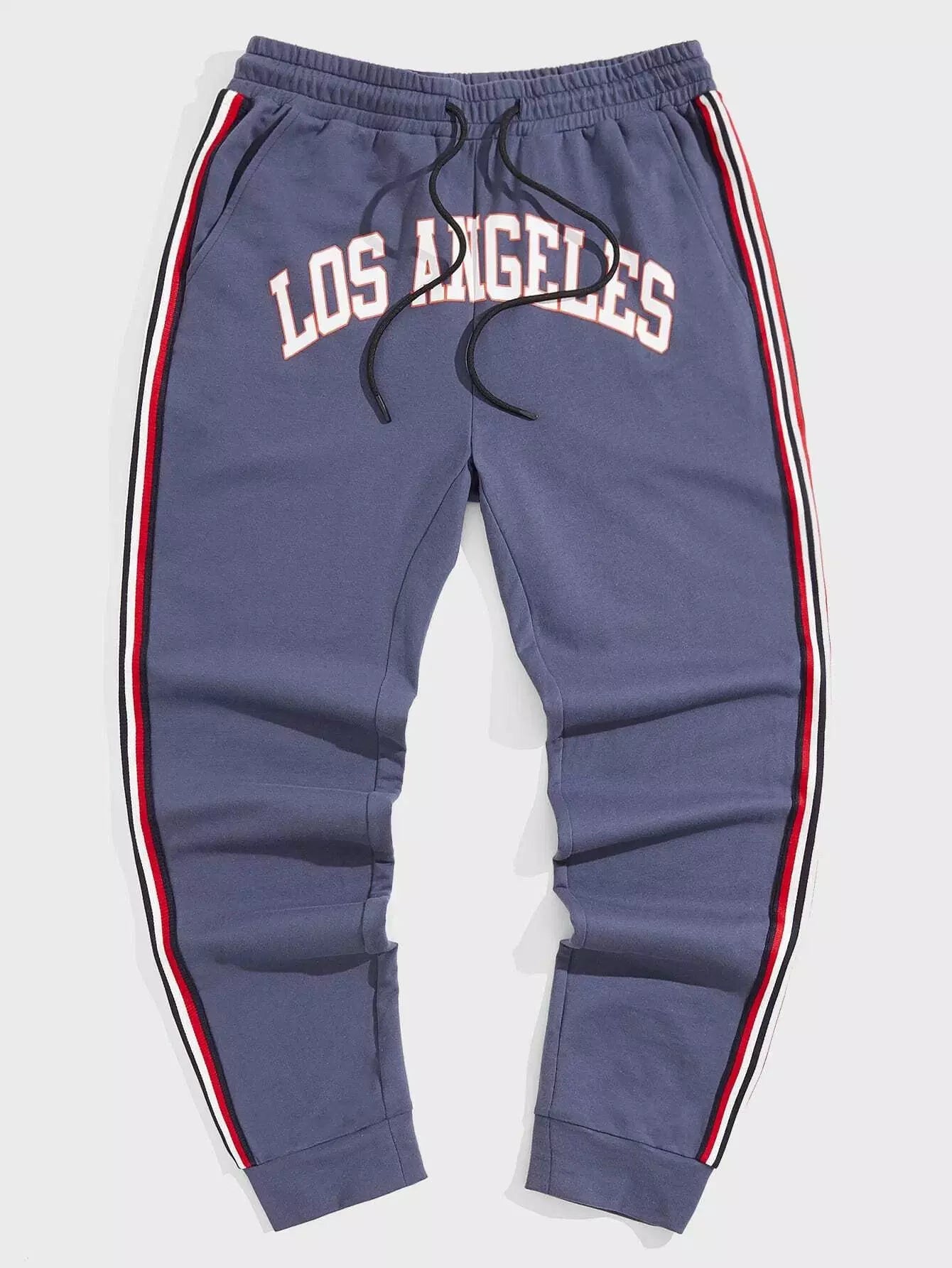 Men Letter Graphic Contrast Tape Drawstring Sweatpants