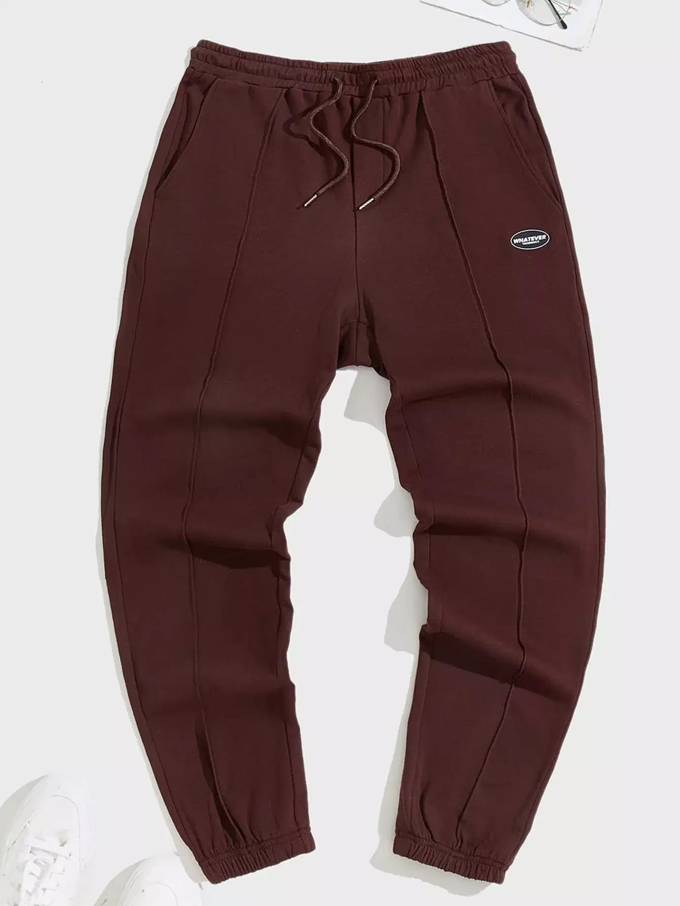 Men Letter Patched Seam Detail Drawstring Waist Sweatpants