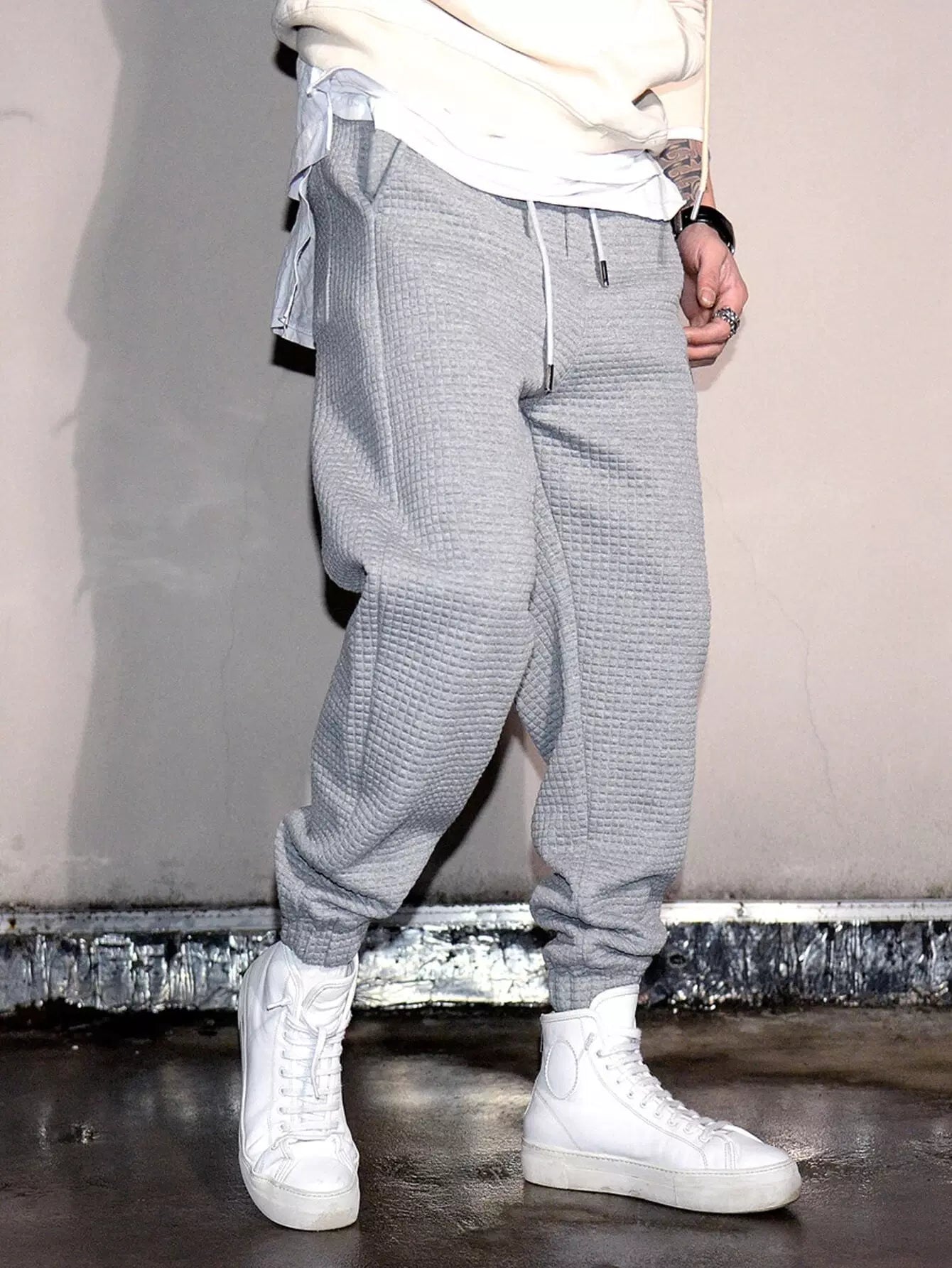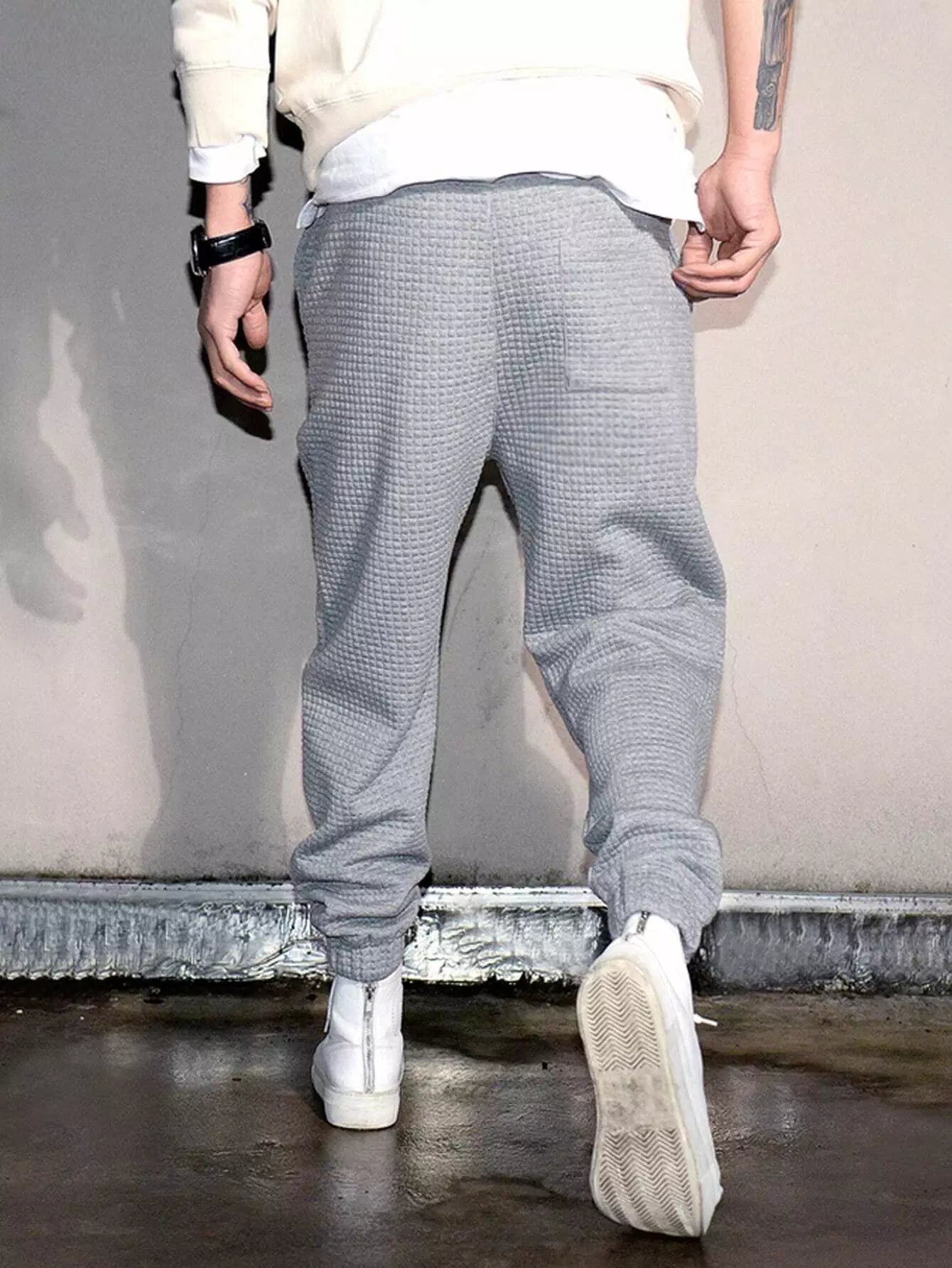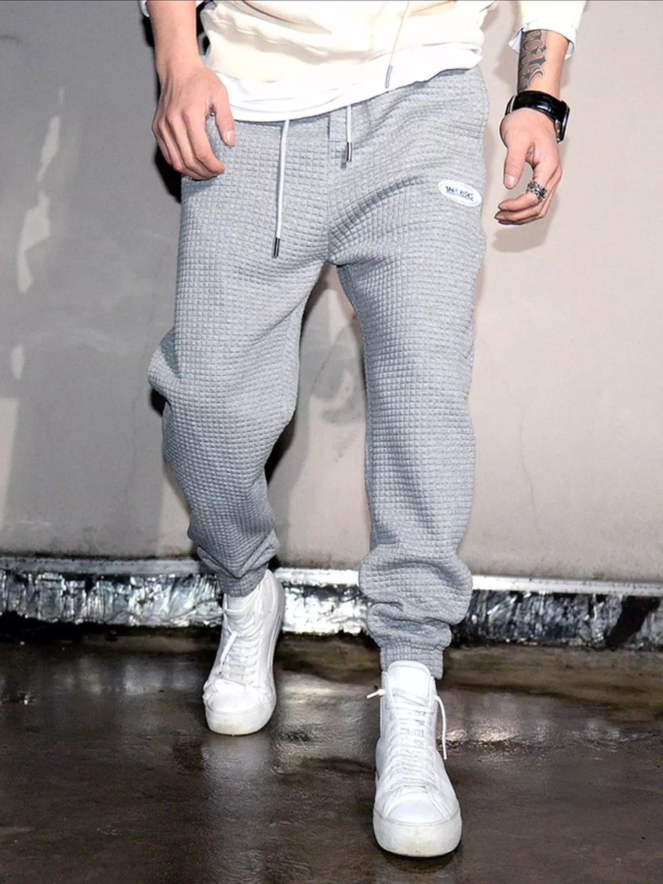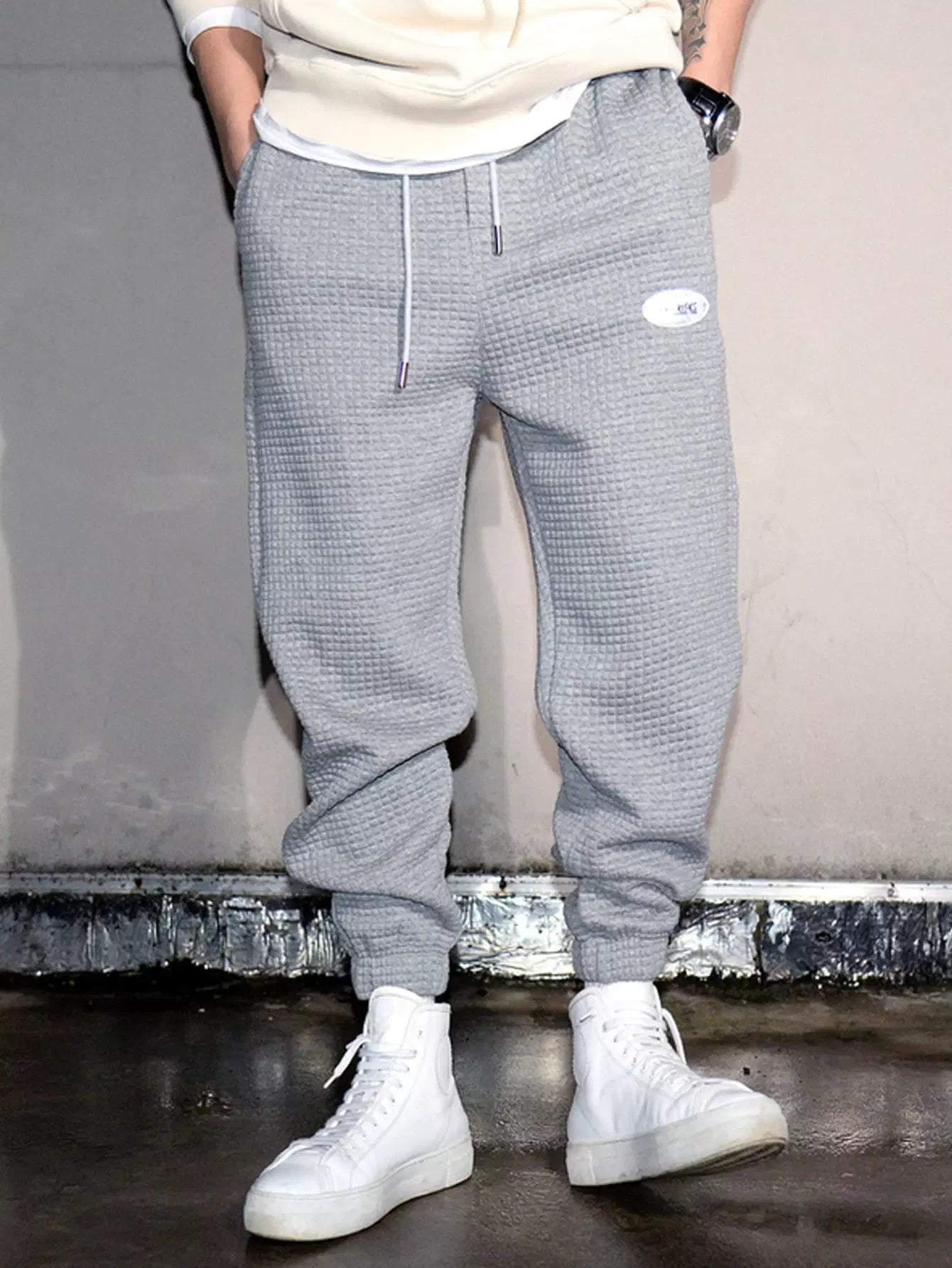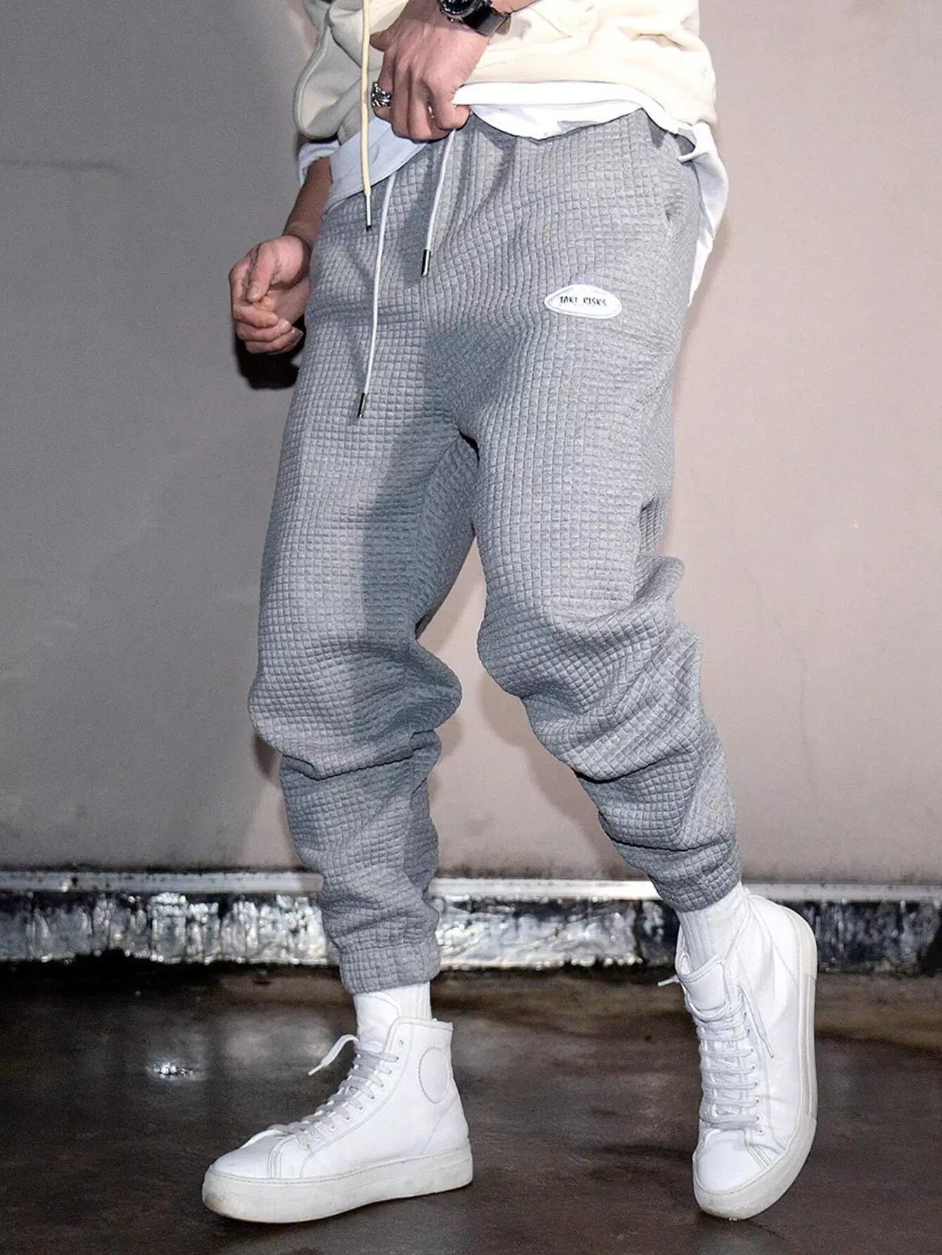 Men Letter Patched Textured Drawstring Detail Sweatpants