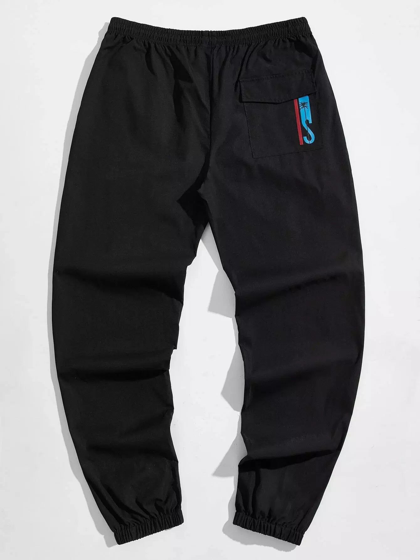 Men Palm Tree & Letter Graphic Back Drawstring Waist Pants
