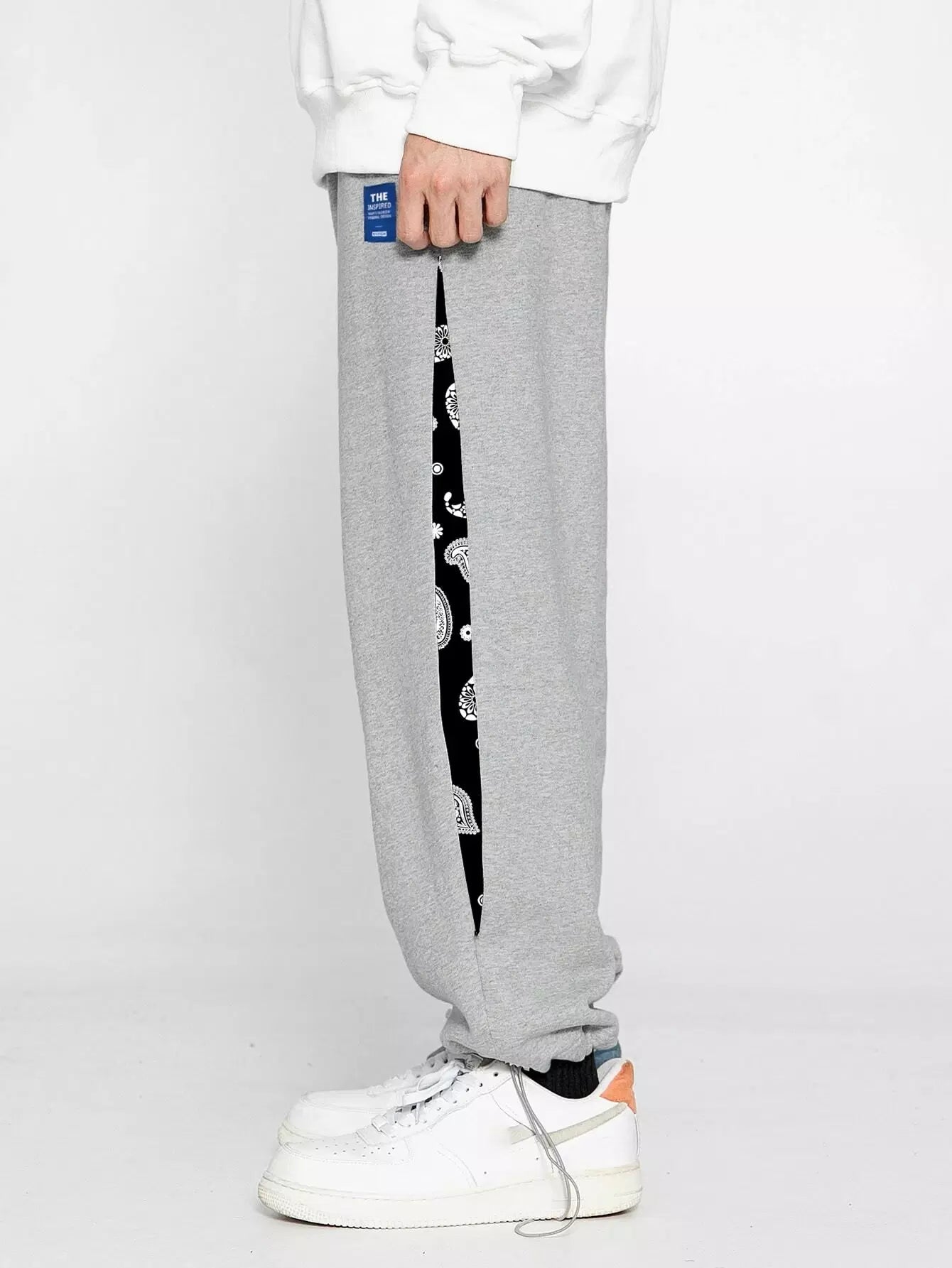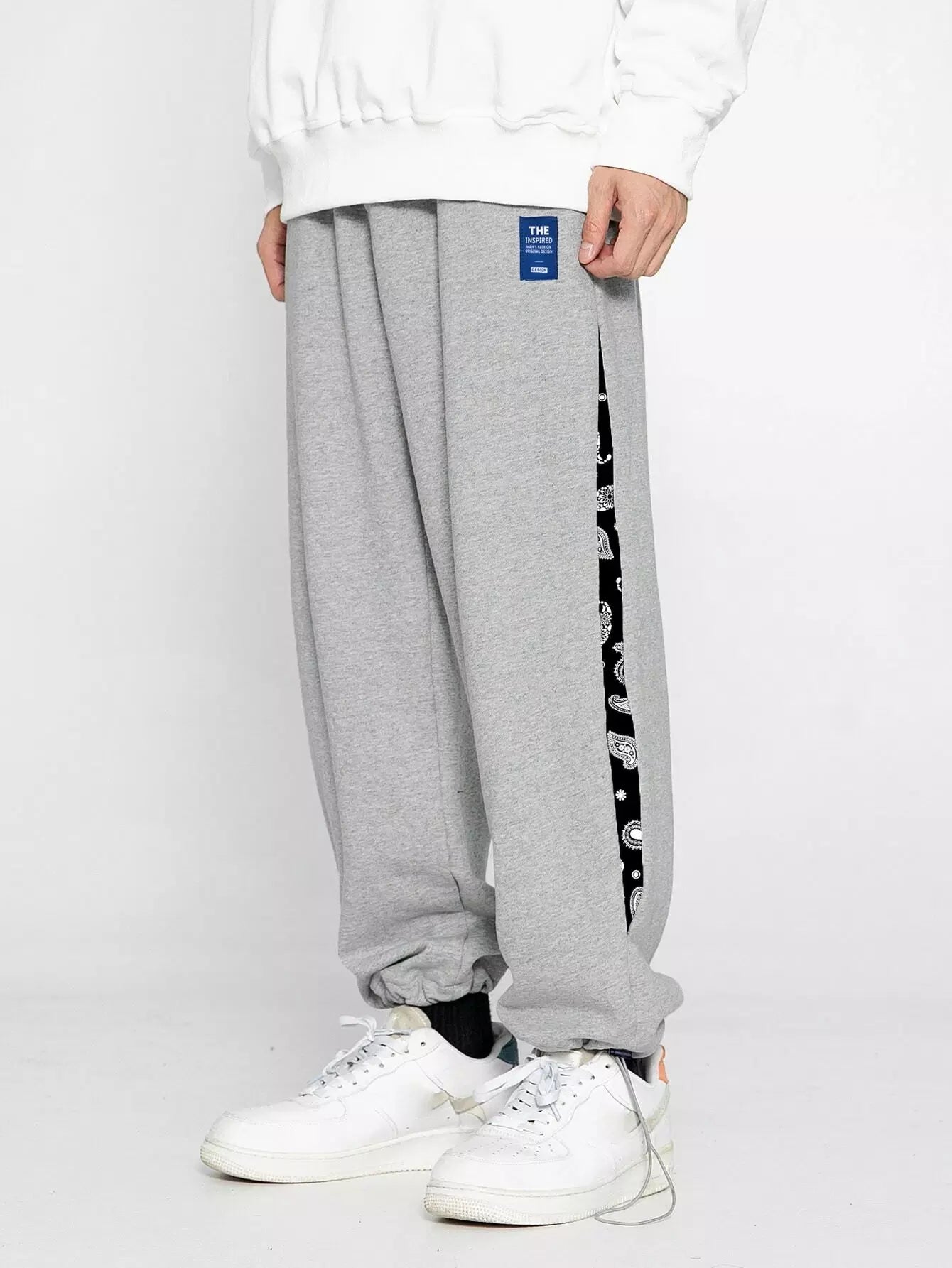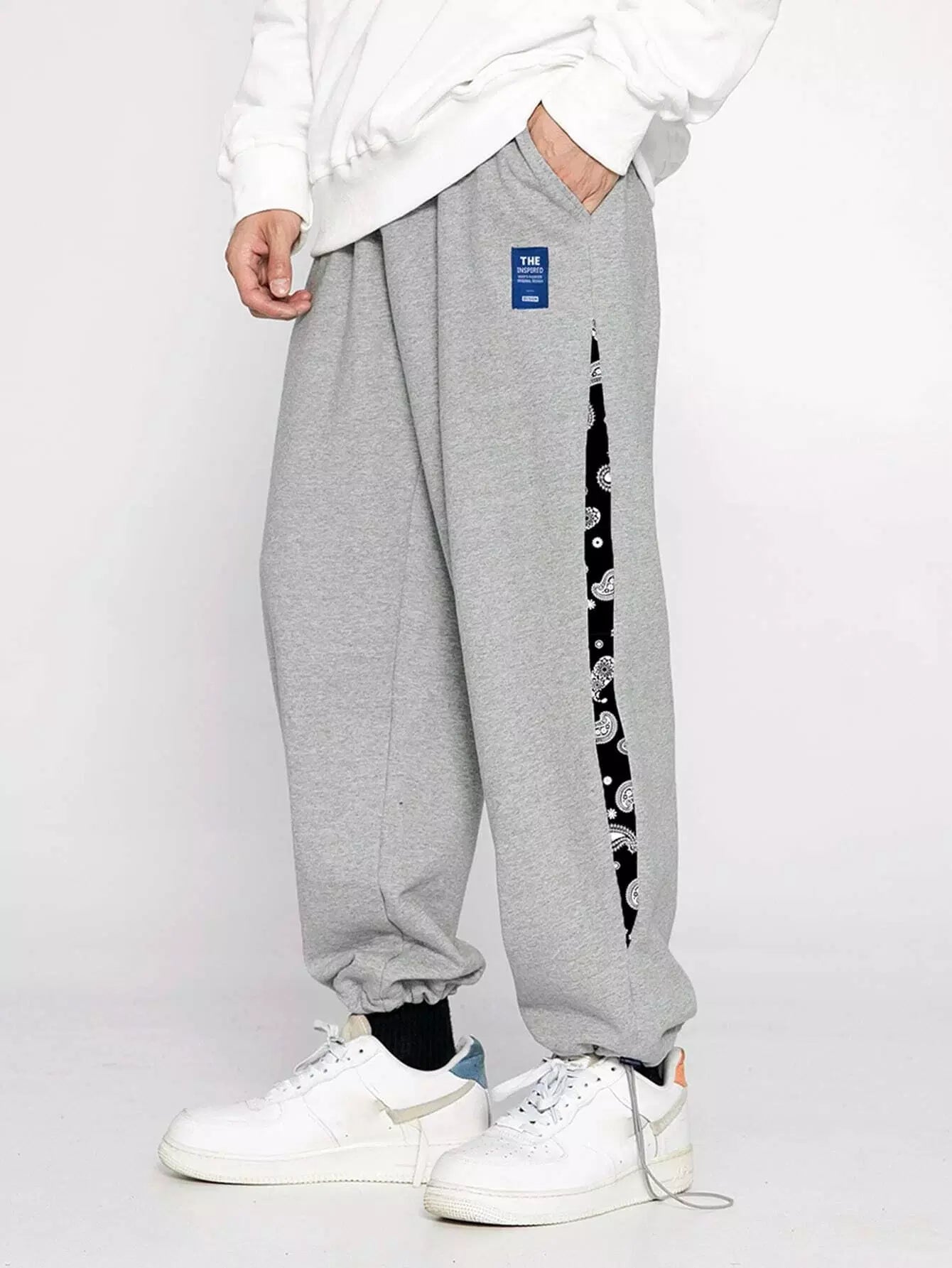 Men Patch Detail Contrast Paisley Side Seam Sweatpants