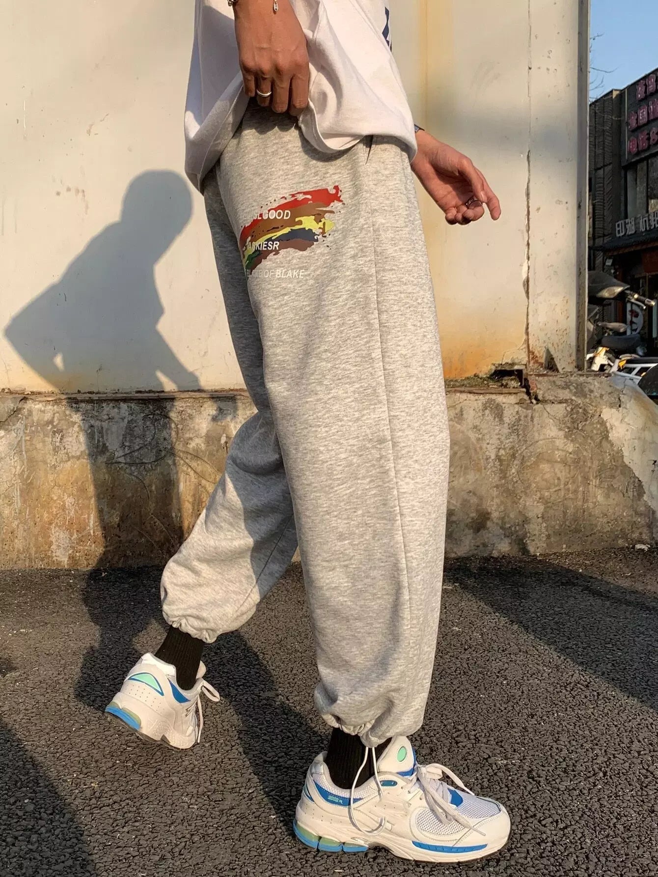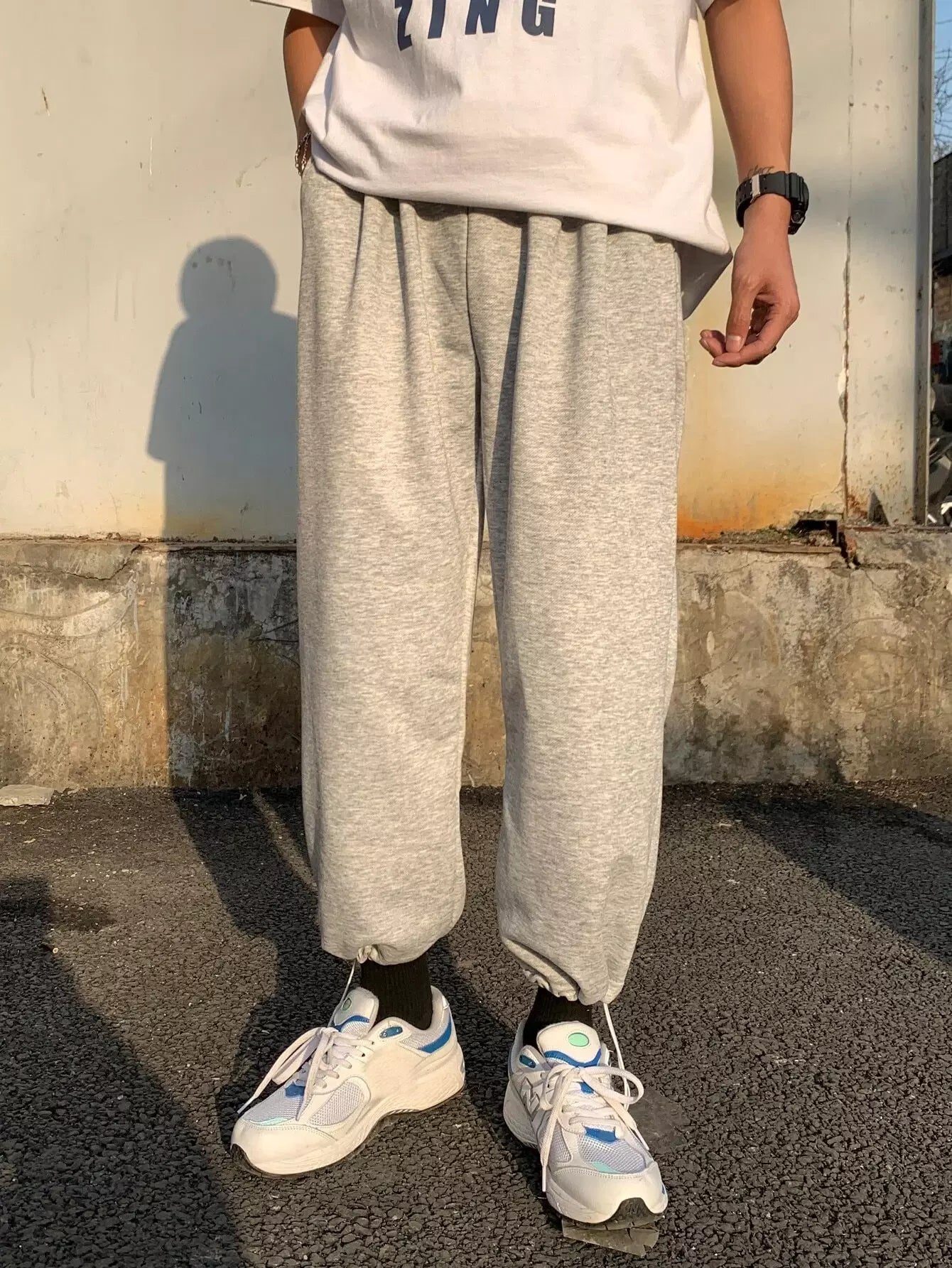 Men Slogan Graphic Slant Pocket Sweatpants
