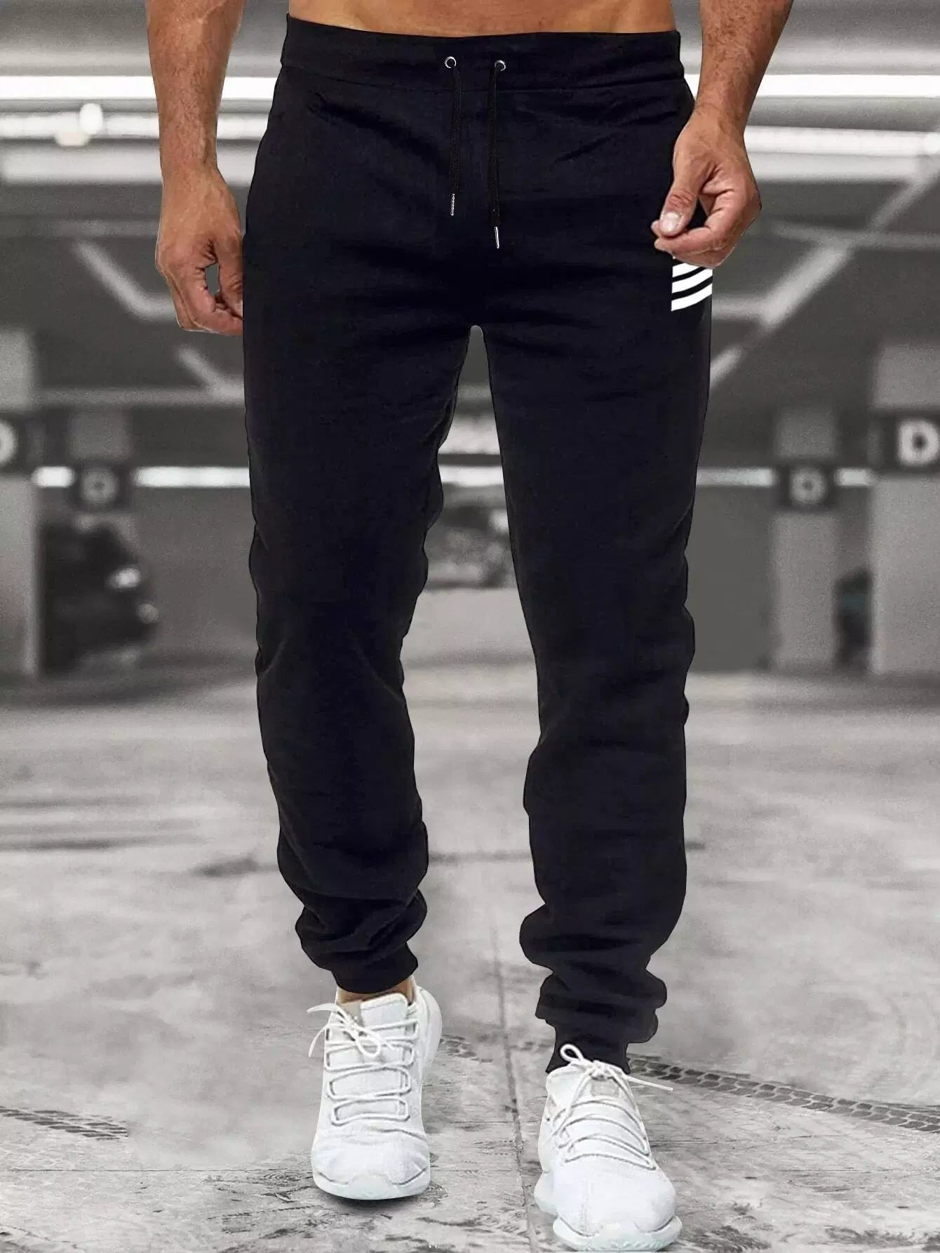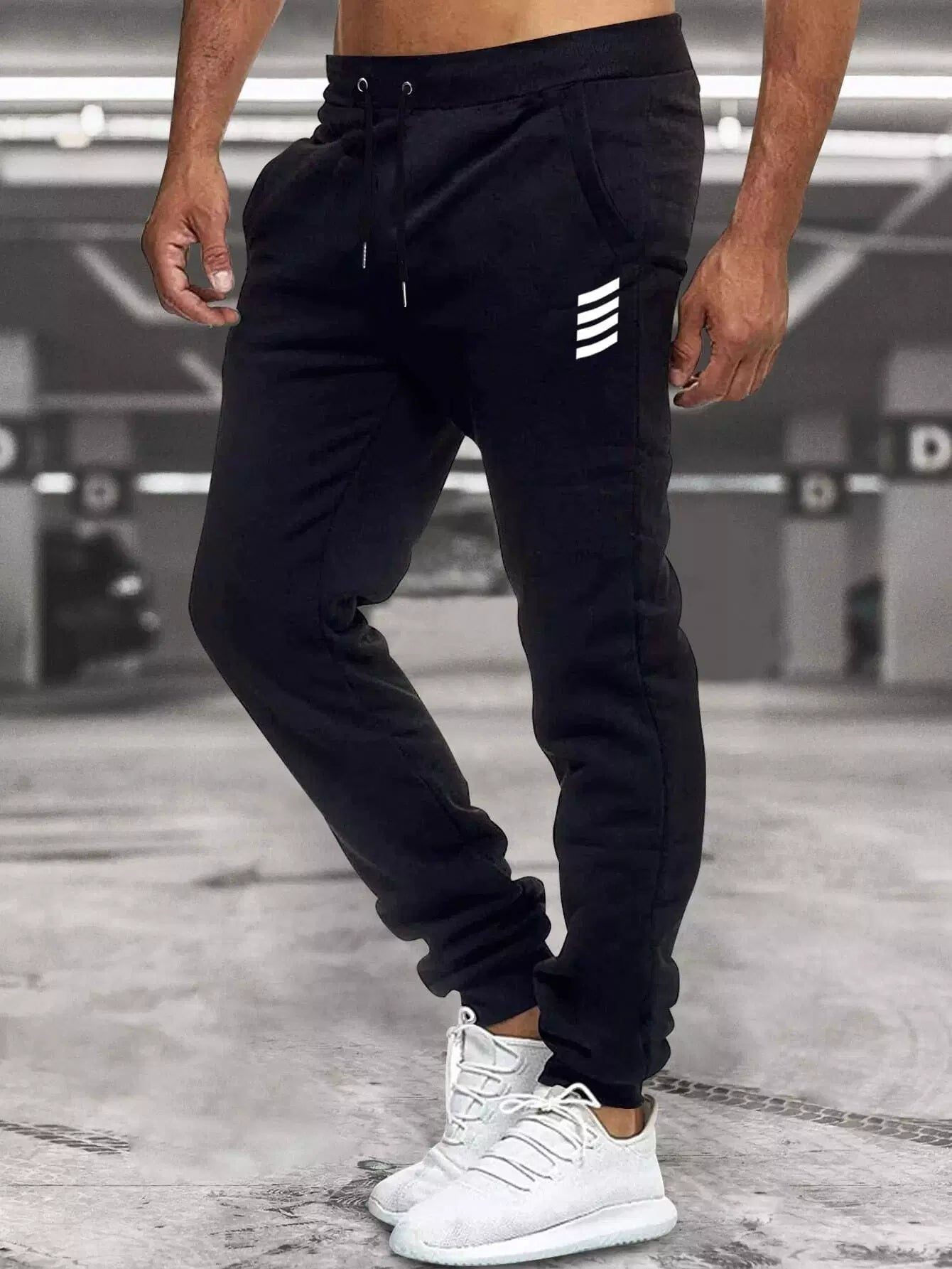 Men - Men Striped Print Drawstring Waist Sweatpants