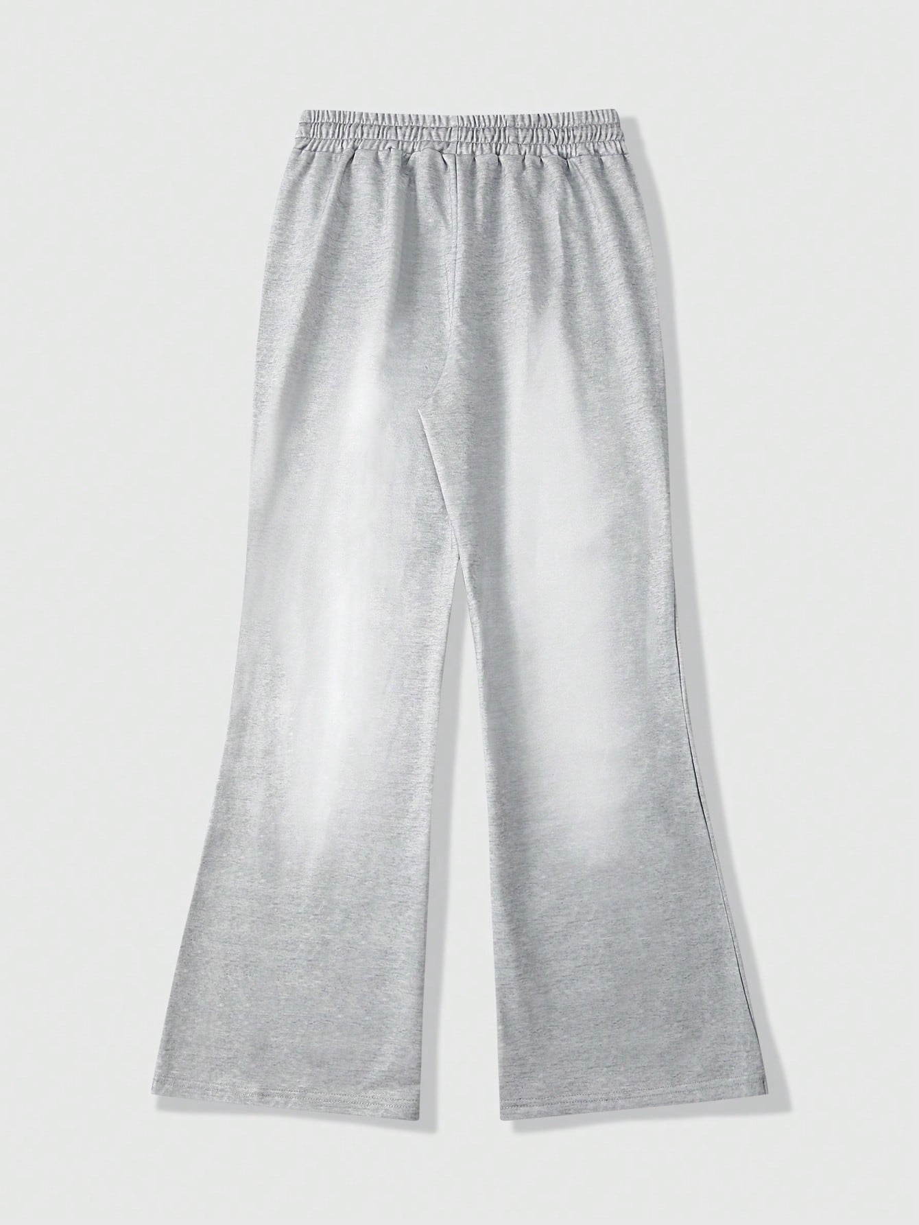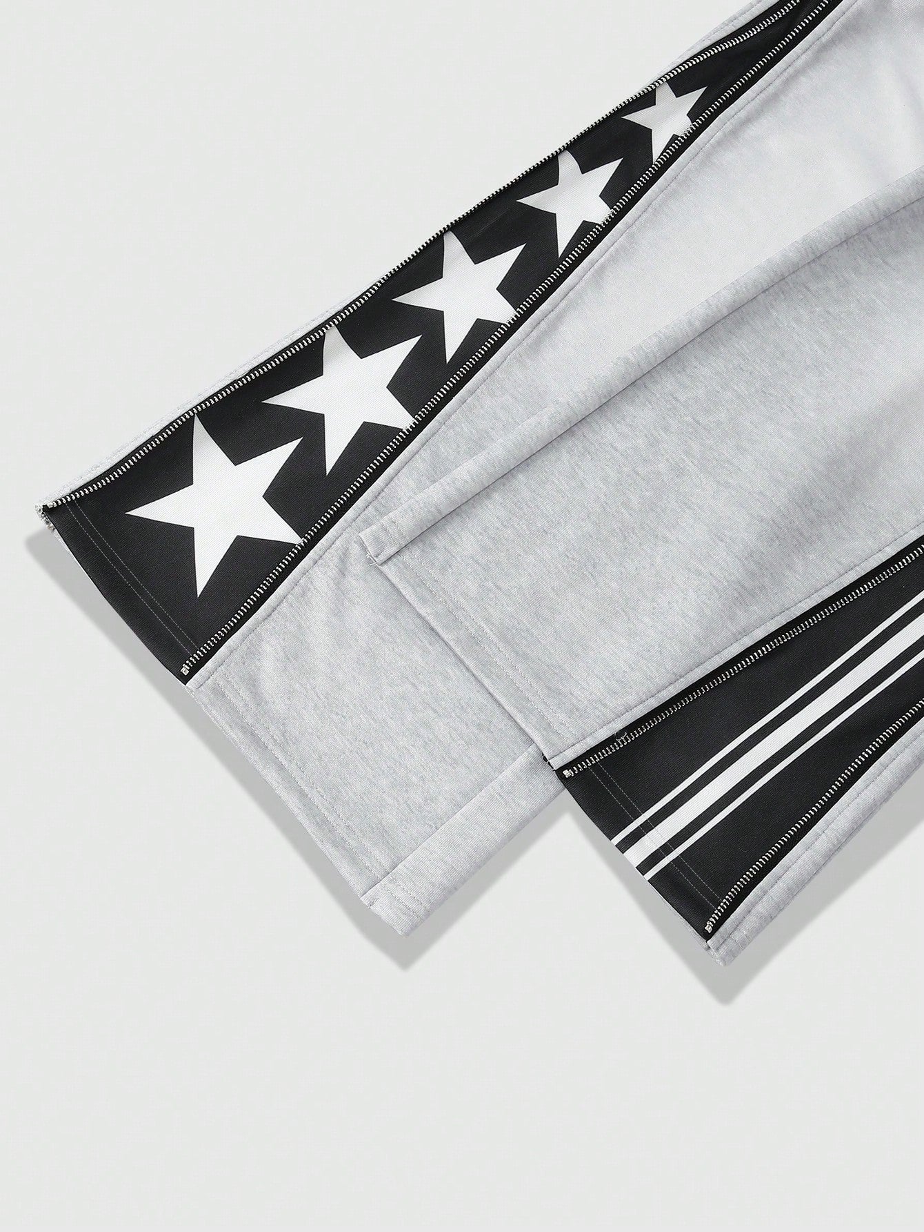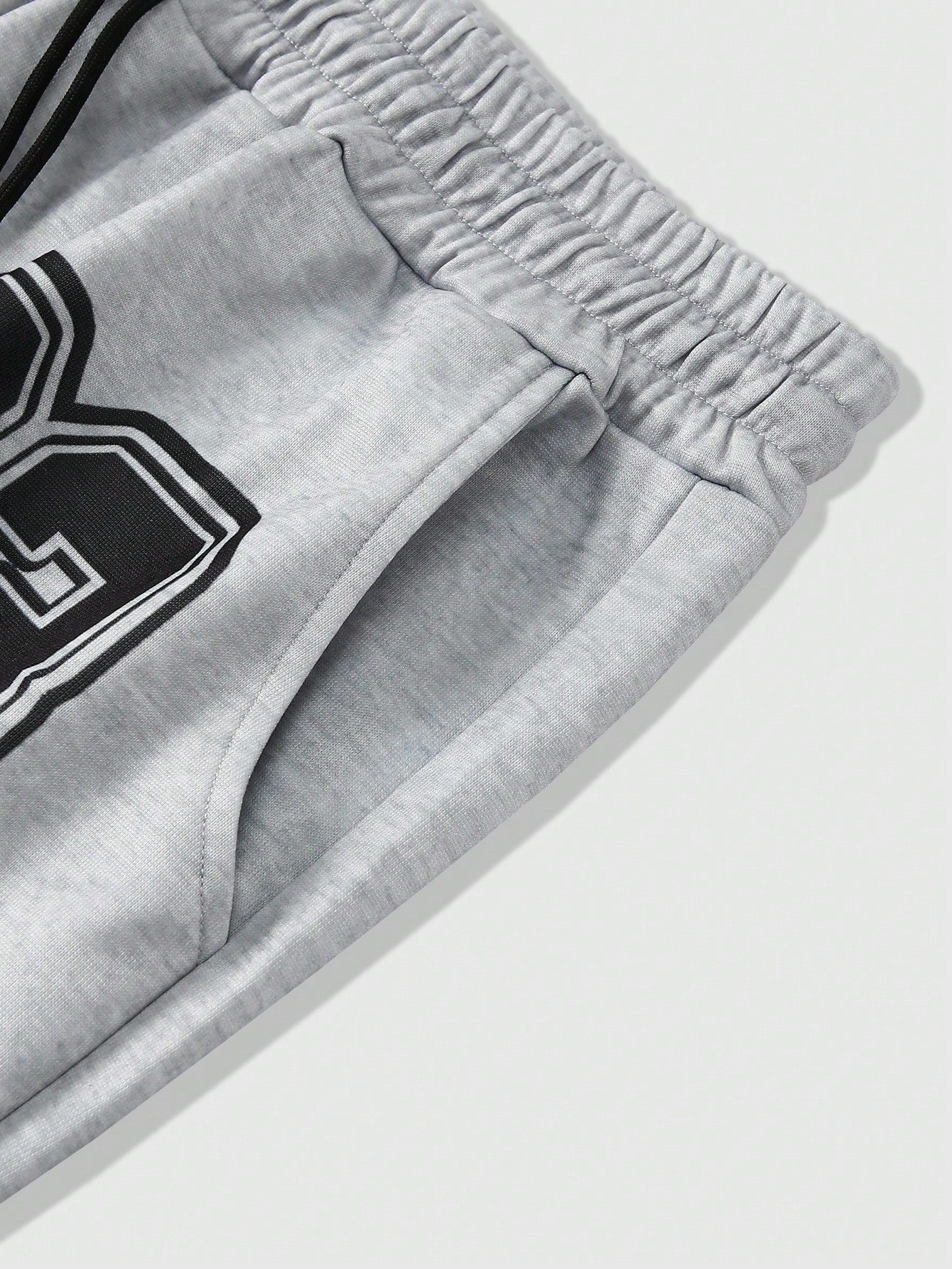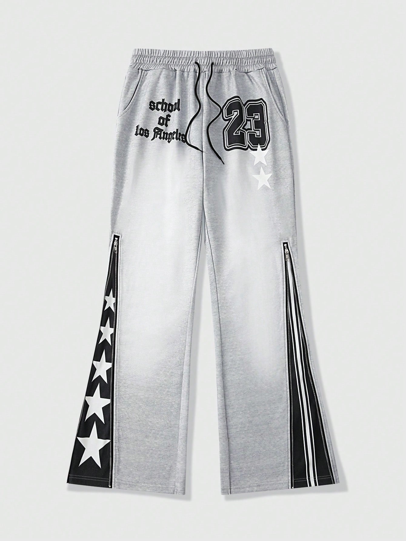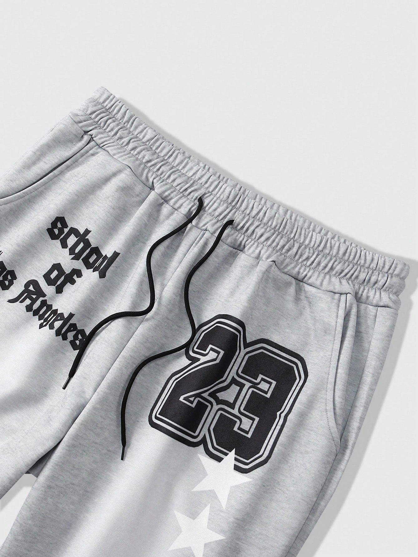 ROMWE MEN Prep Men's Jersey Letter Print Drawstring Waist Wide Leg Loose Casual Sweatpants