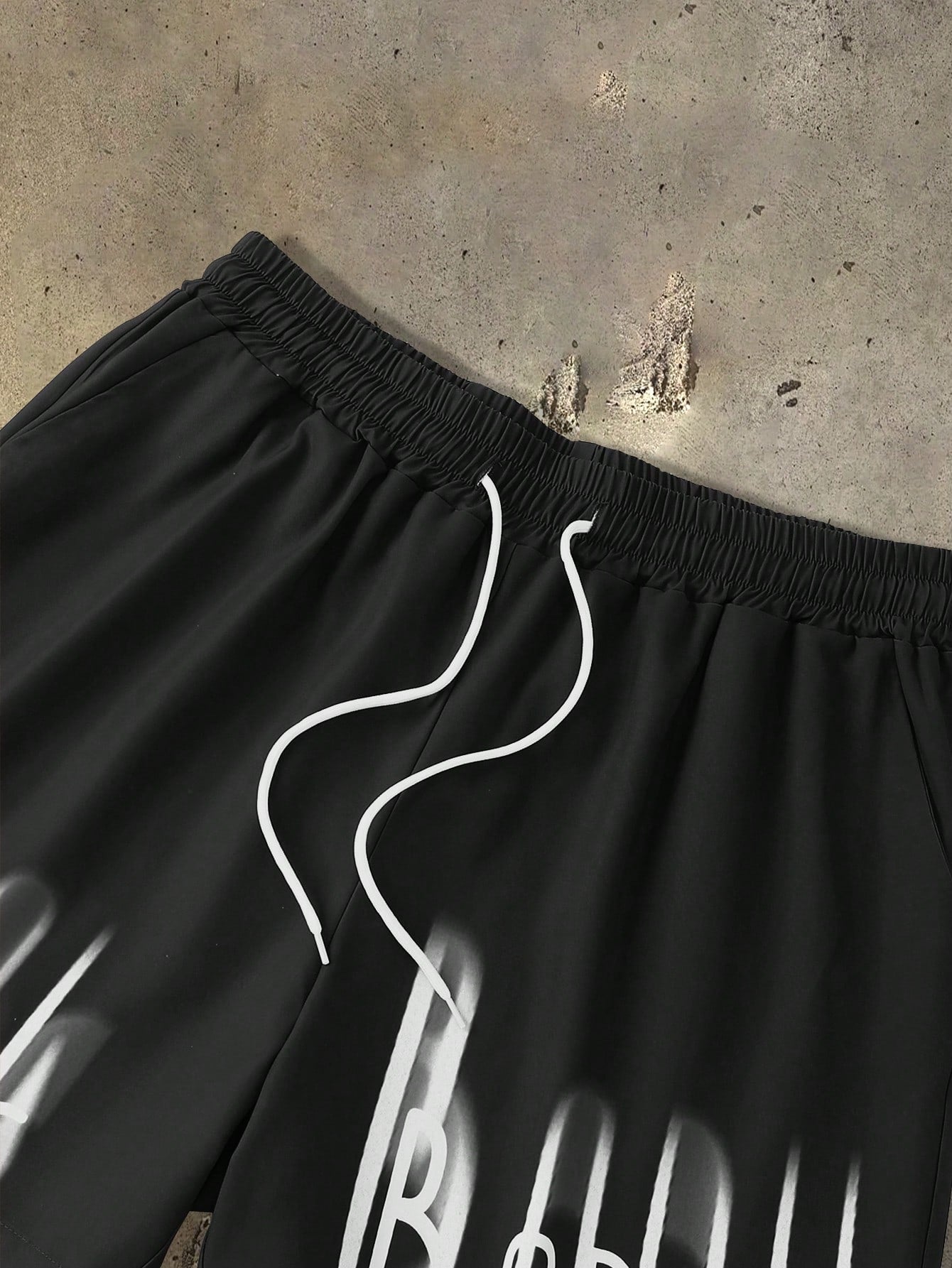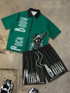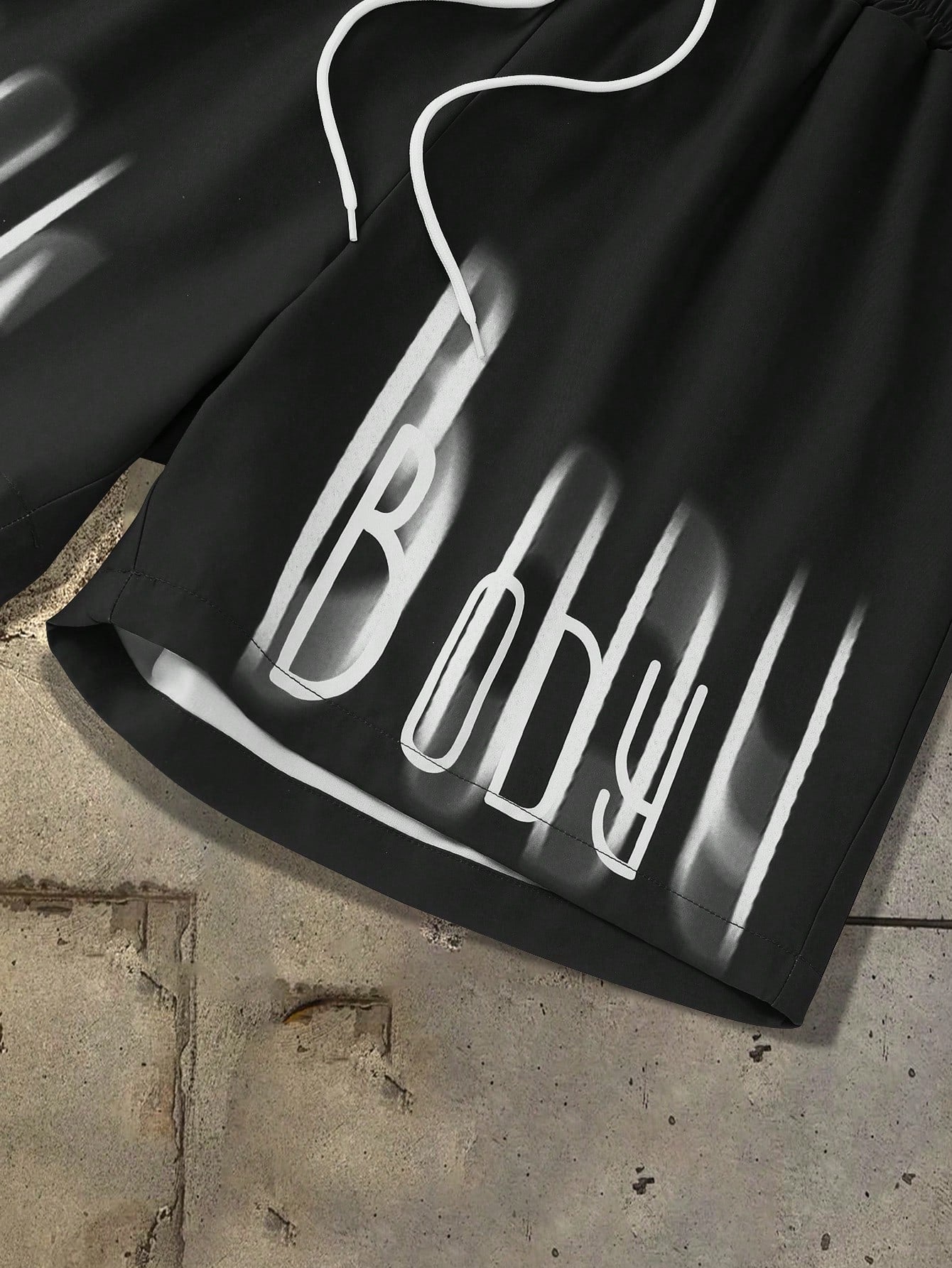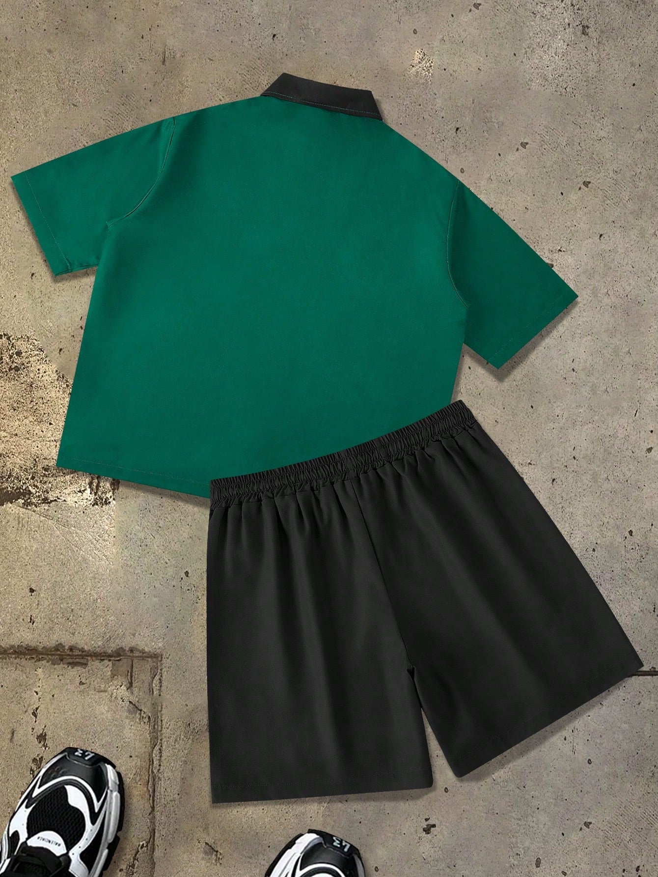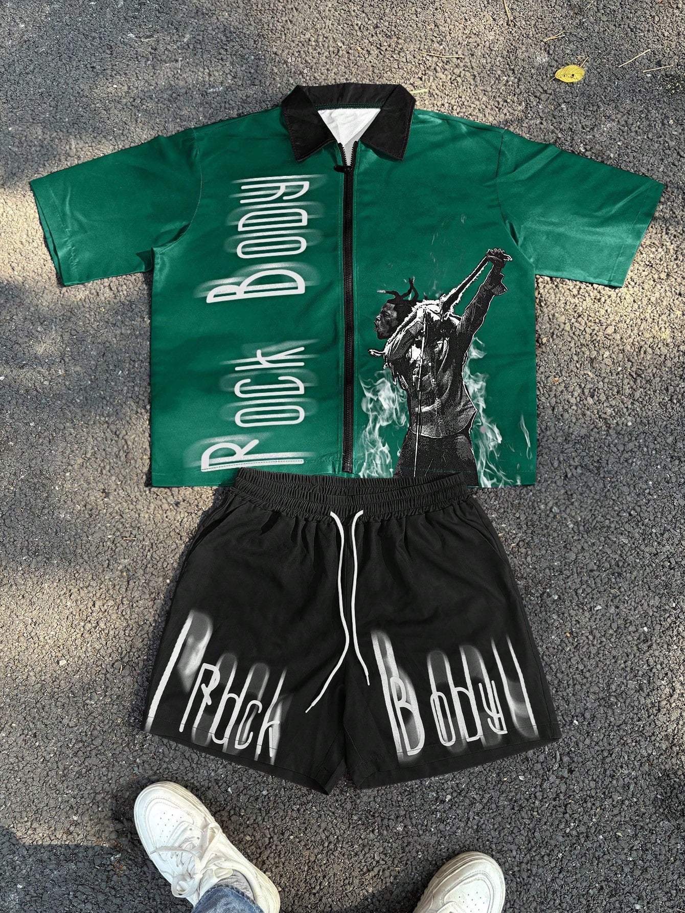 Manfinity EMRG Men's Letter & Graphic Print Zip-Up Short Sleeve Shirt And Drawstring Waist Shorts Set