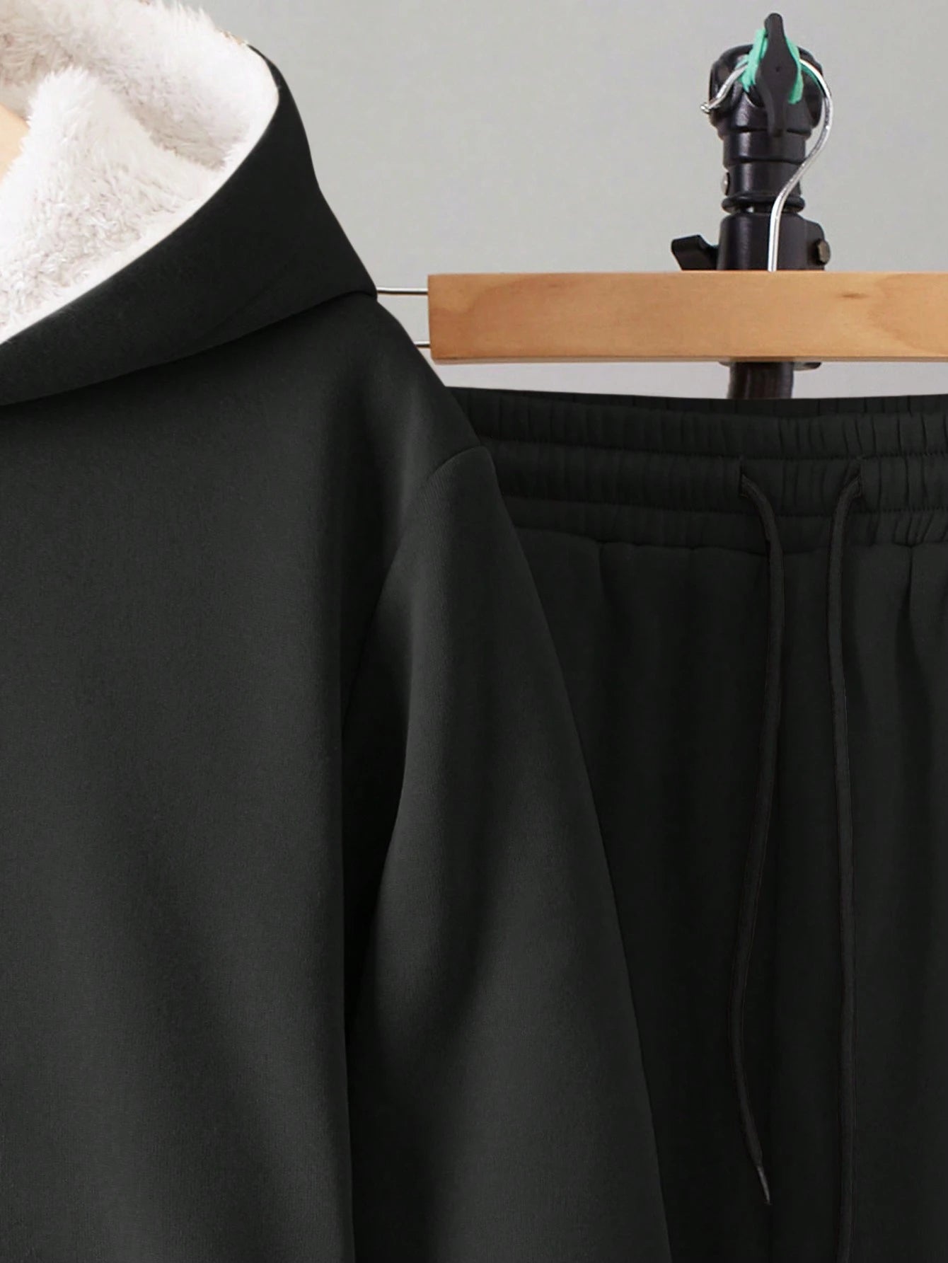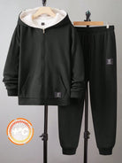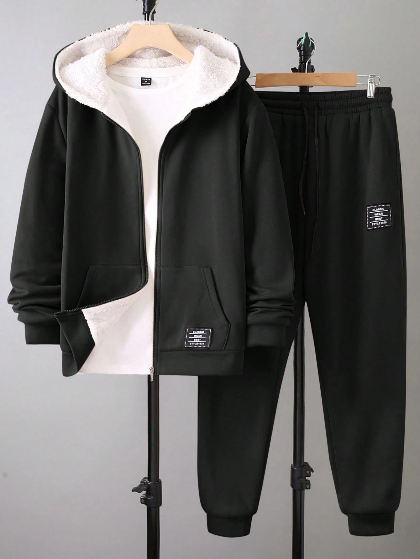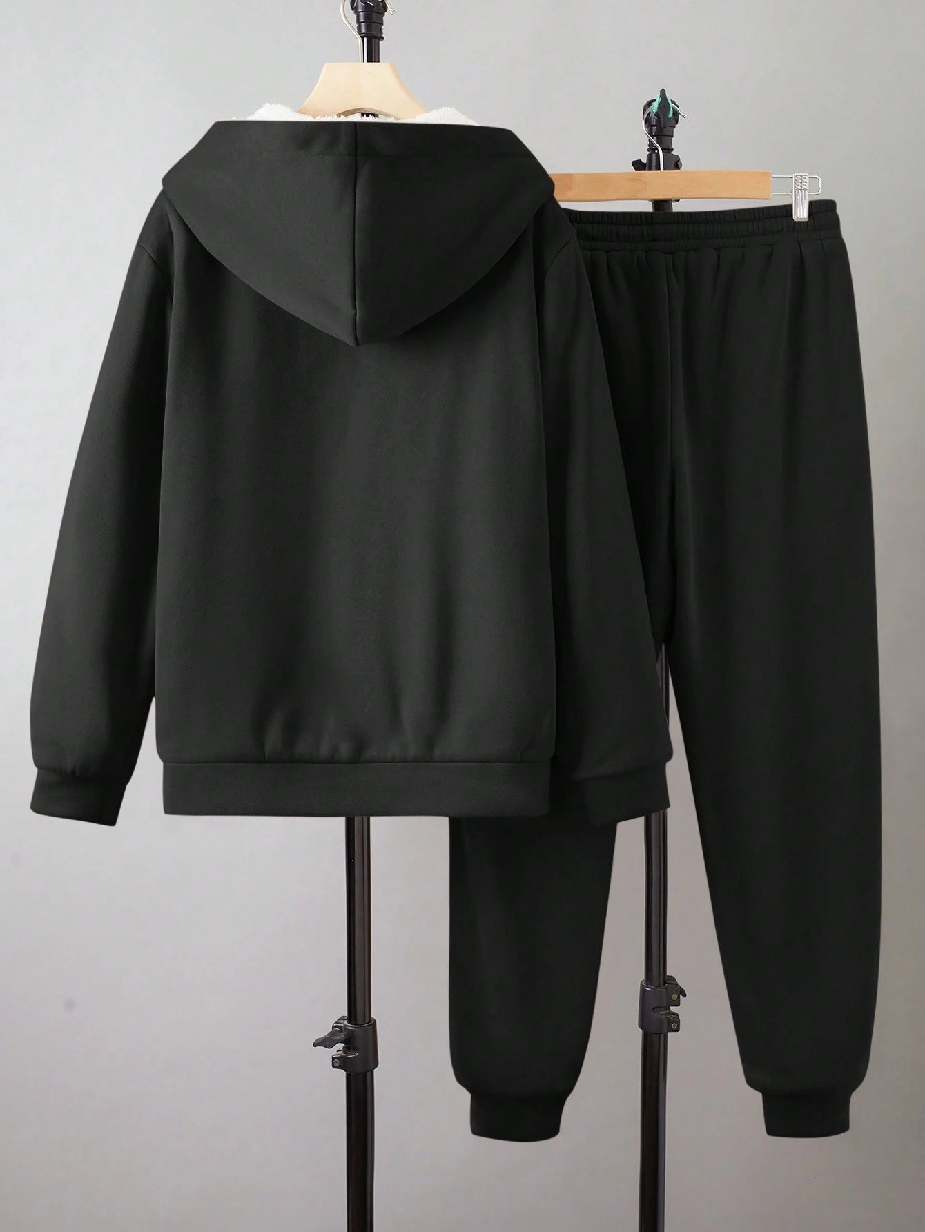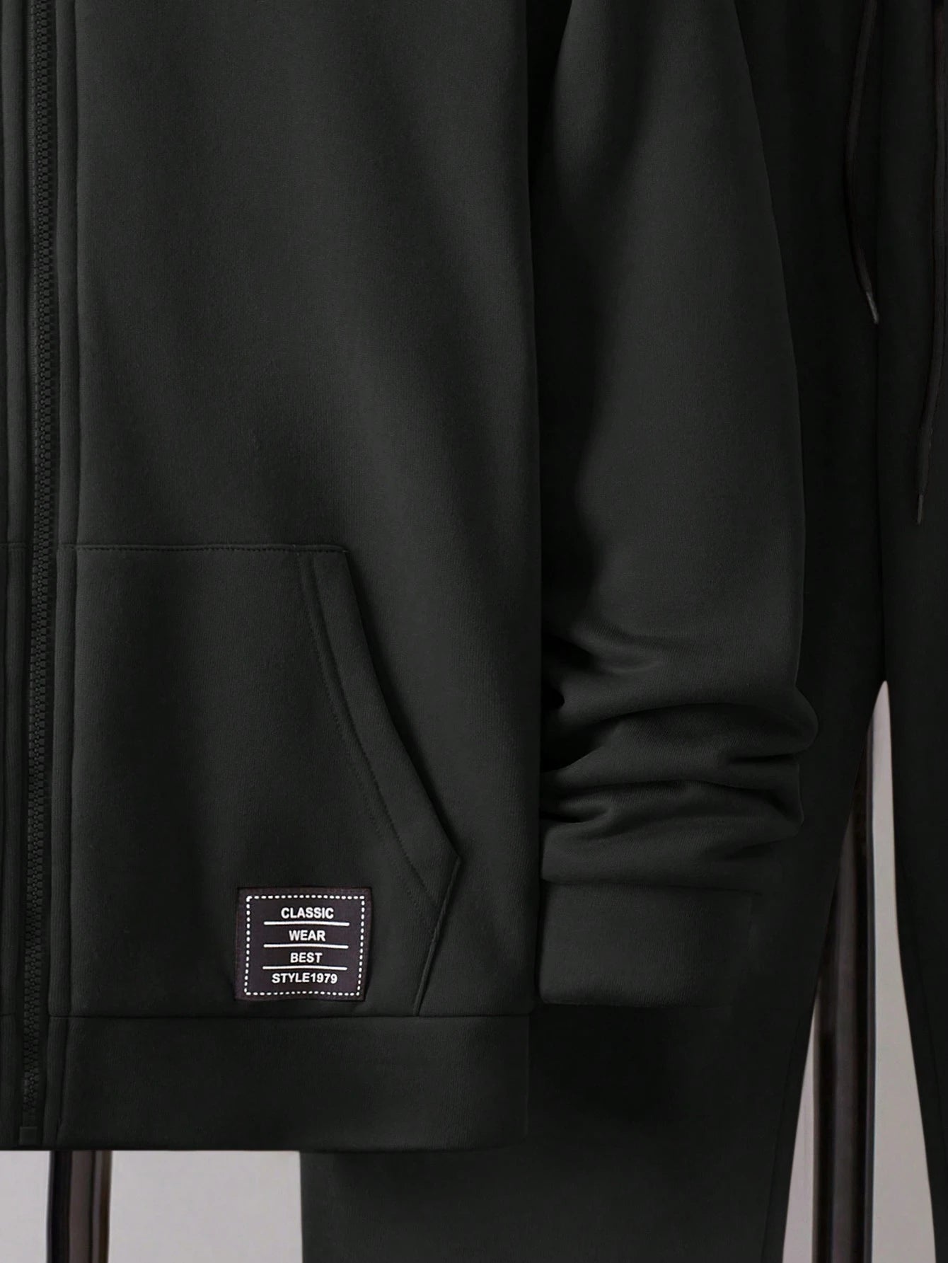 Manfinity Homme Men's Letter Printed Zipper Front Hooded Sweatshirt And Sweatpants Tracksuit Set, Casual