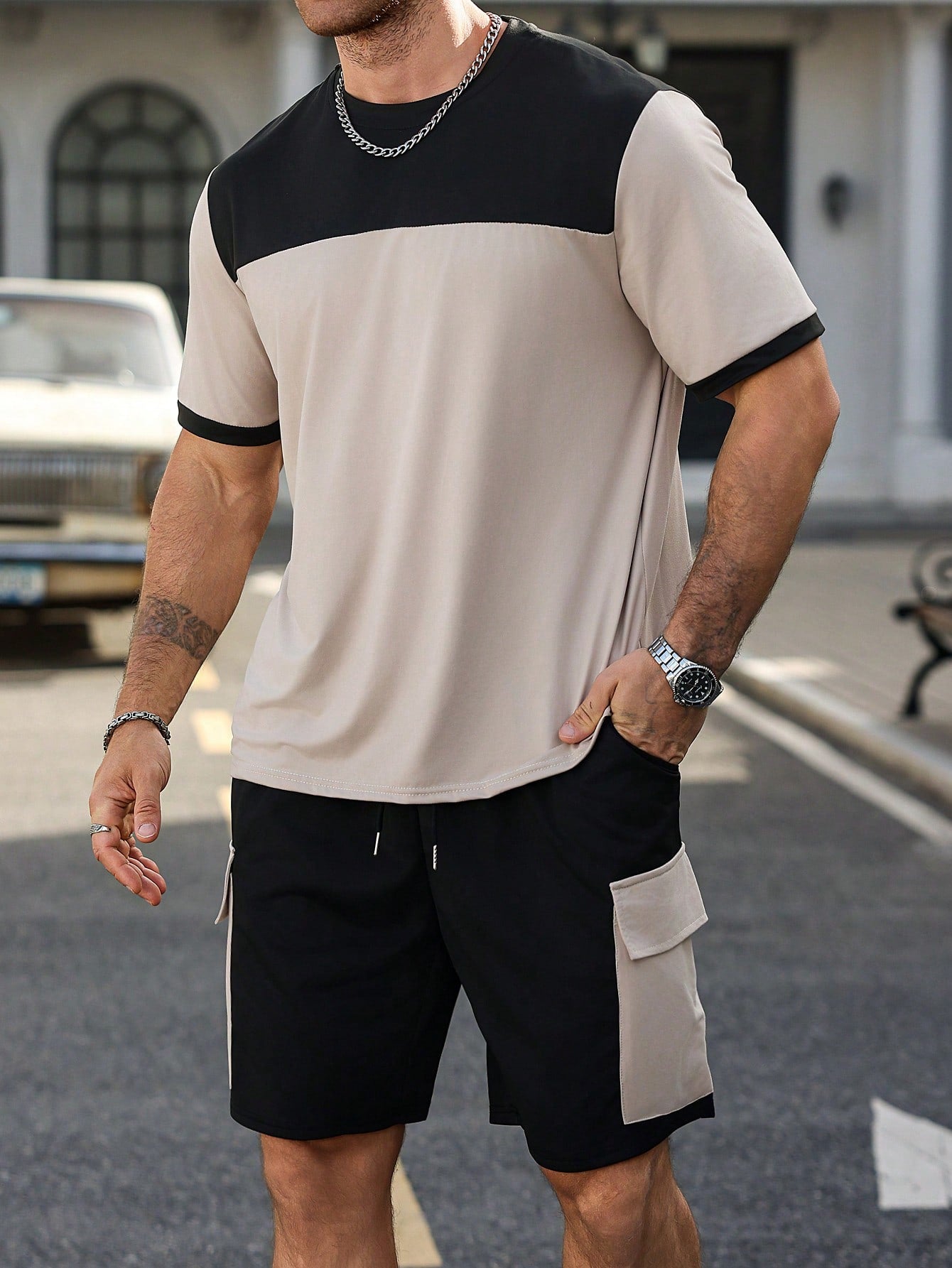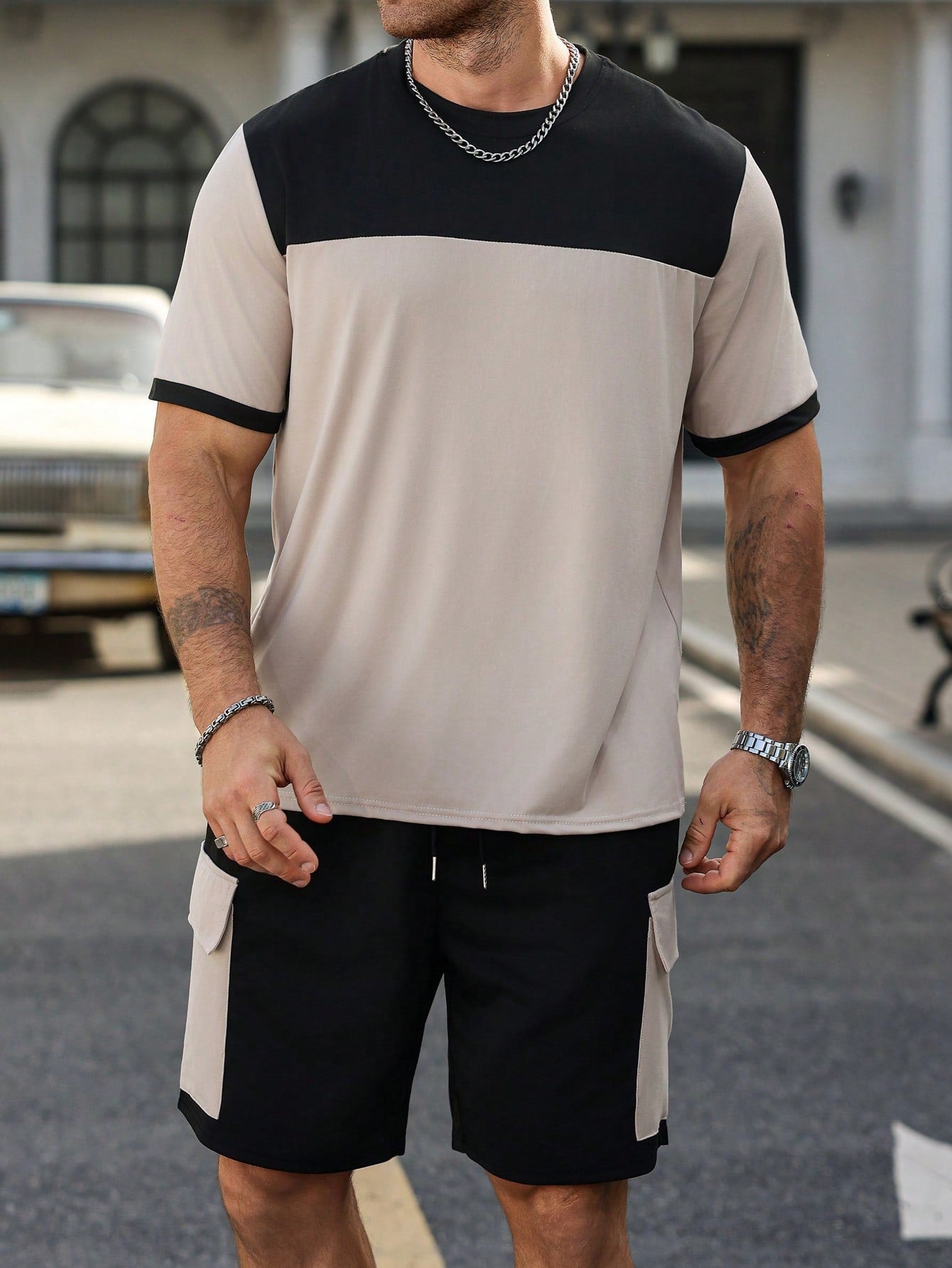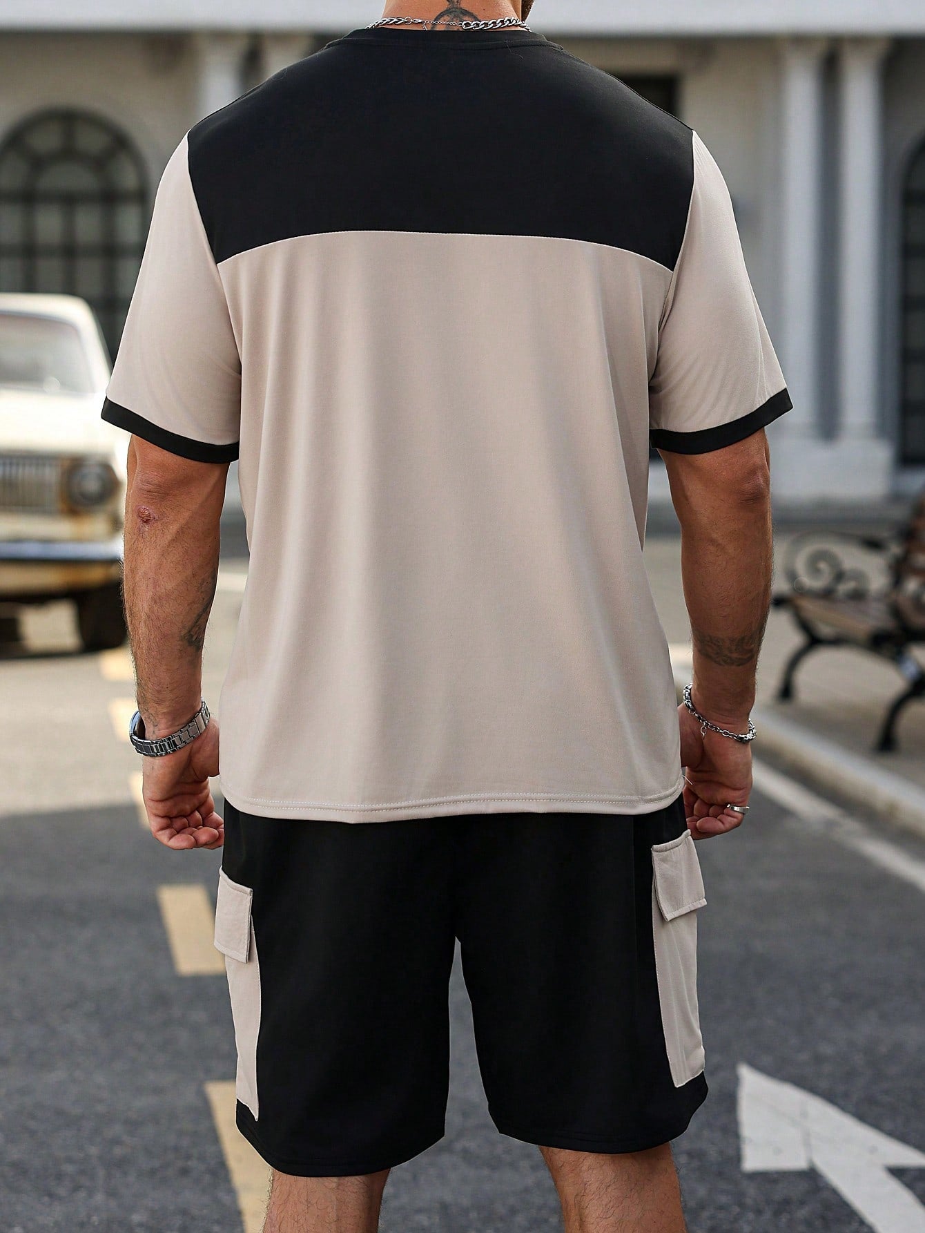 Manfinity Homme Plus Size Men Two-Tone Patchwork T-Shirt Set