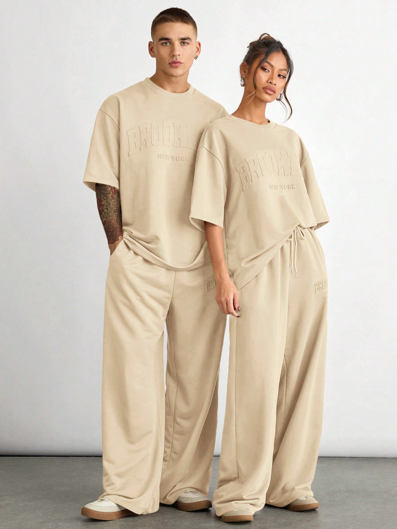 Manfinity INSISELF 2pcs Men Loose Dropped Shoulder Crew Neck Short Sleeve T-Shirt & Mid-Waist Drawstring