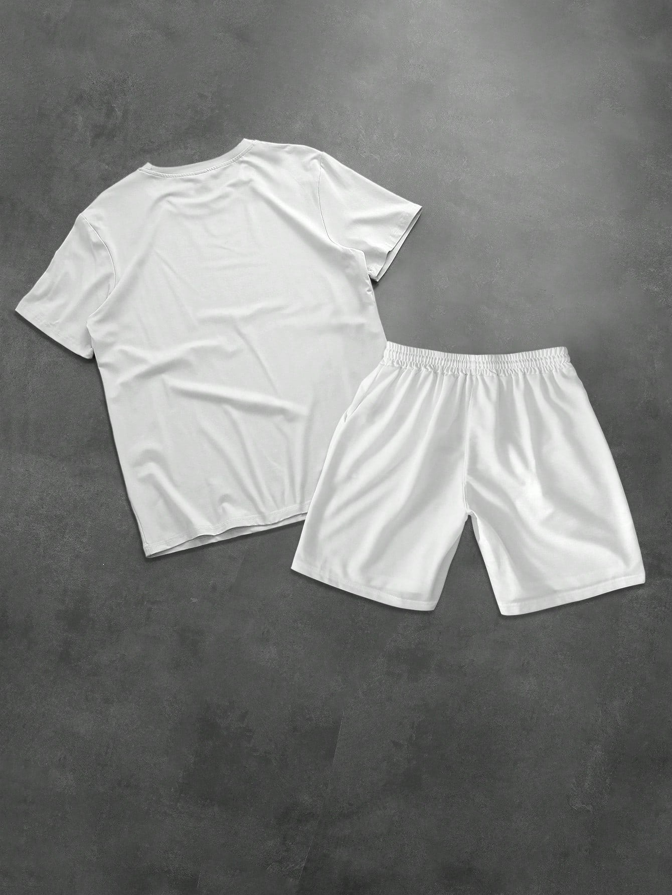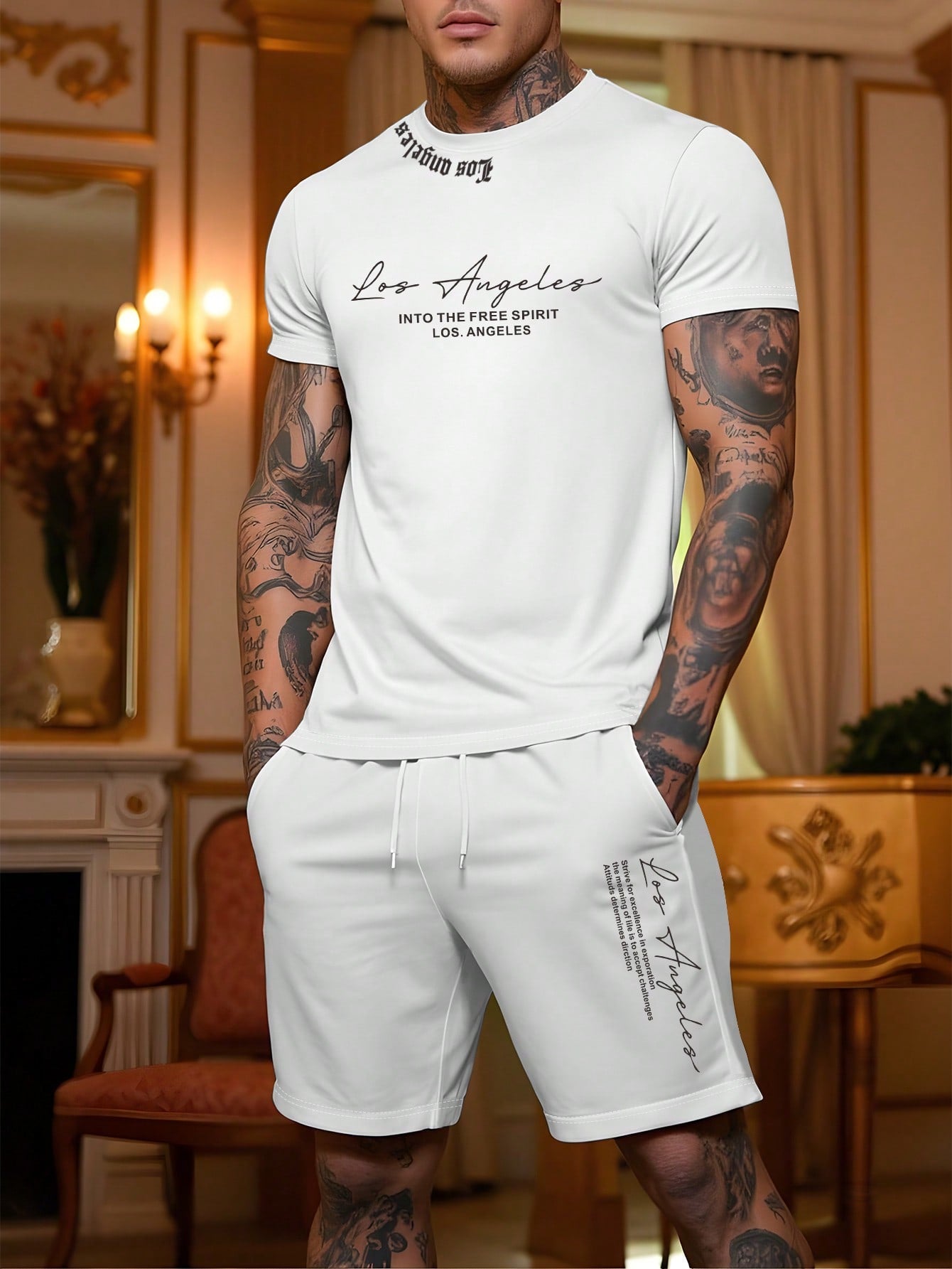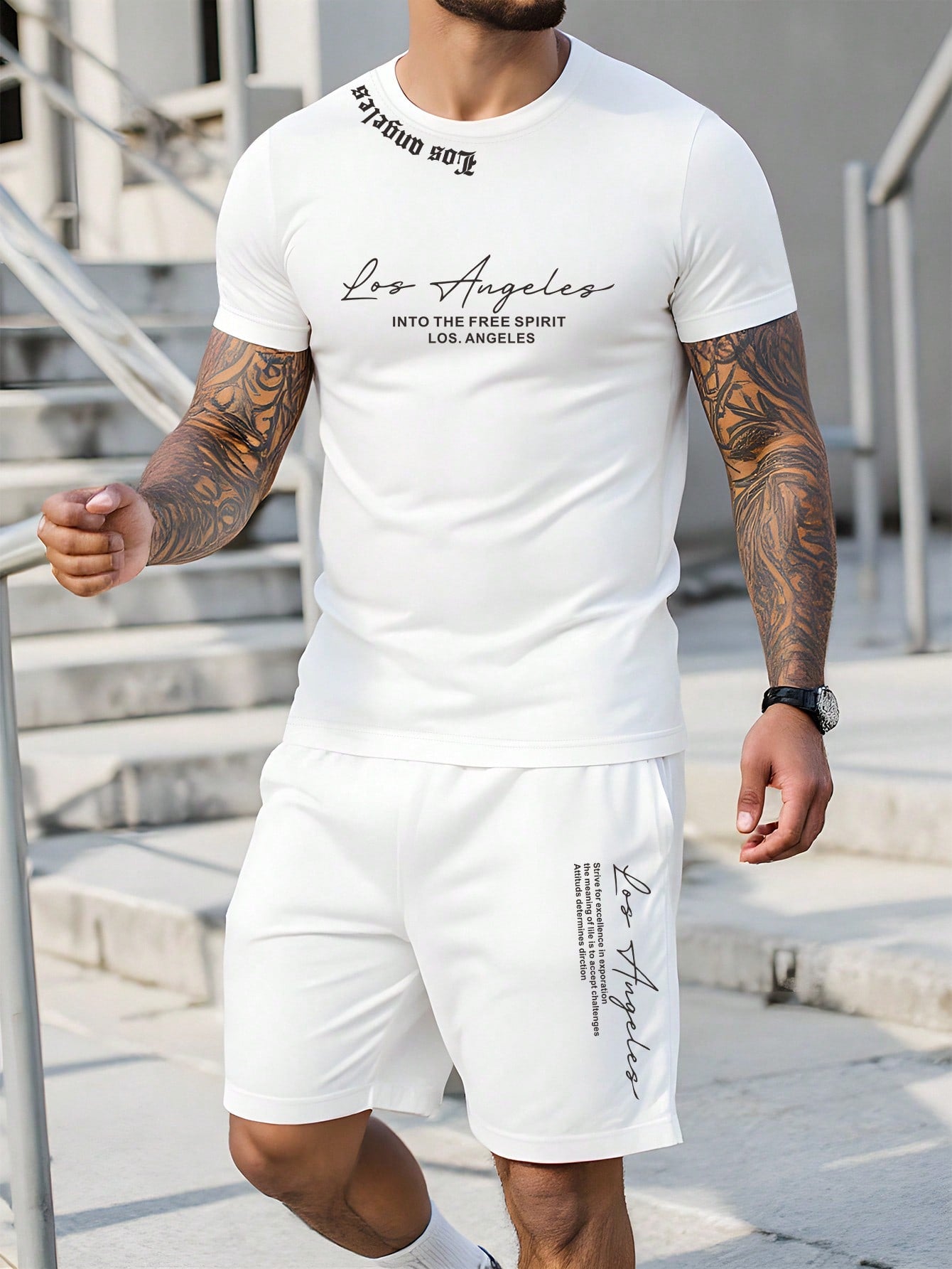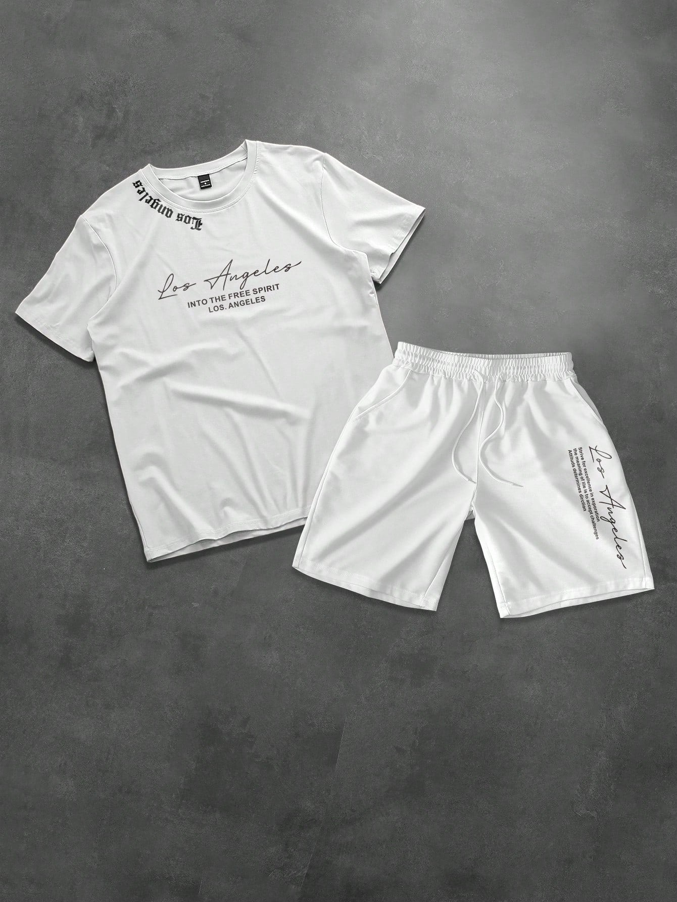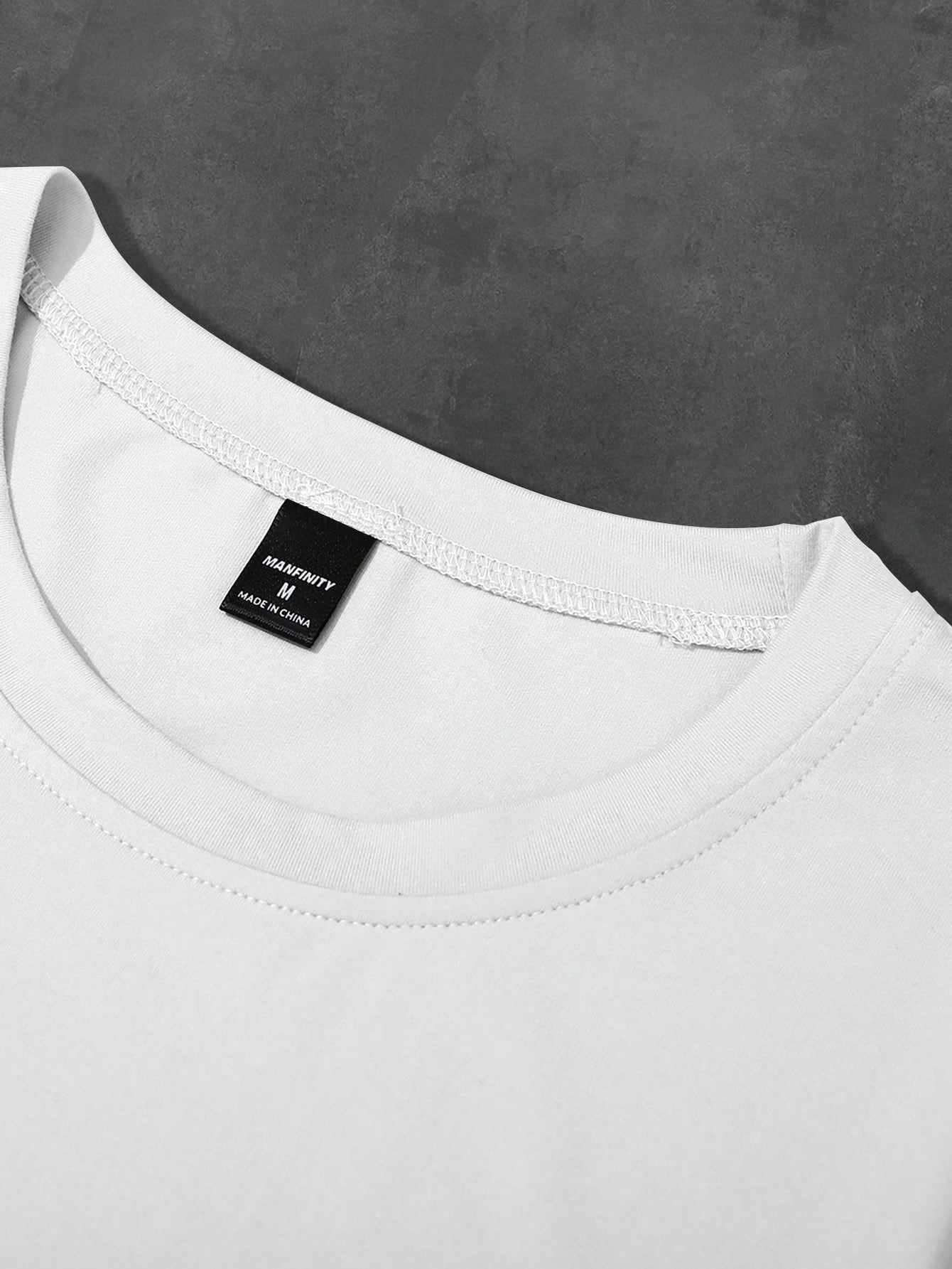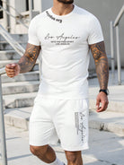 Manfinity LEGND Men's Slogan Print Round Neck Short Sleeve Casual T-Shirt And Drawstring Waist Shorts
