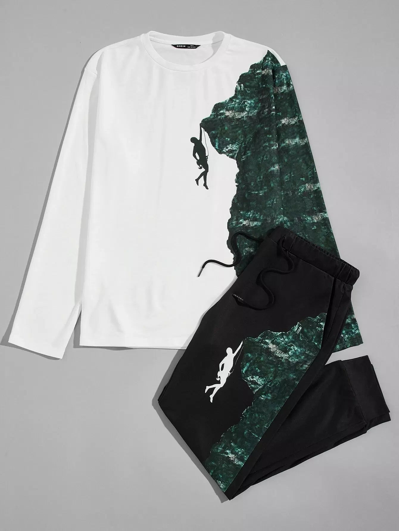 Men Figure & Mountain Print Tee and Sweatpants Set