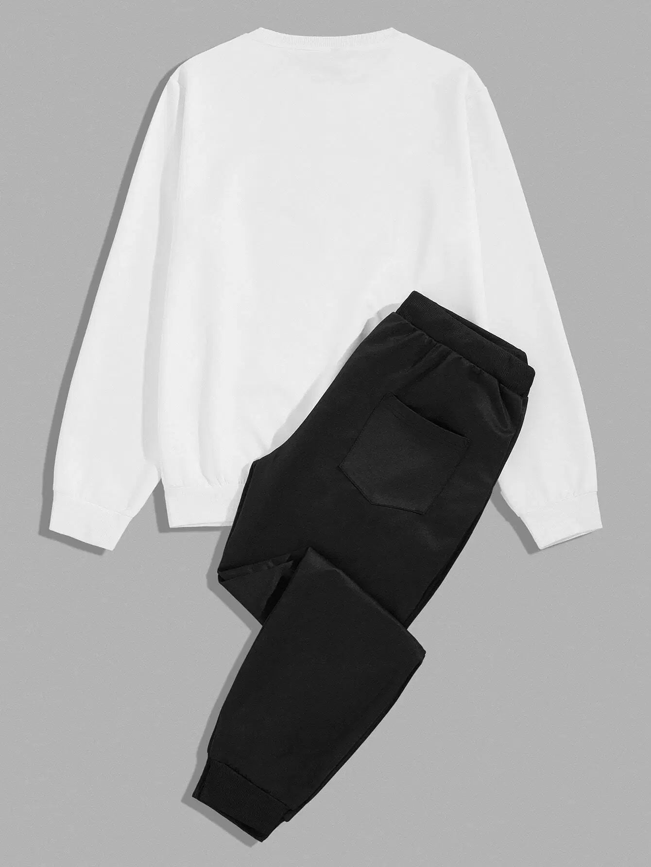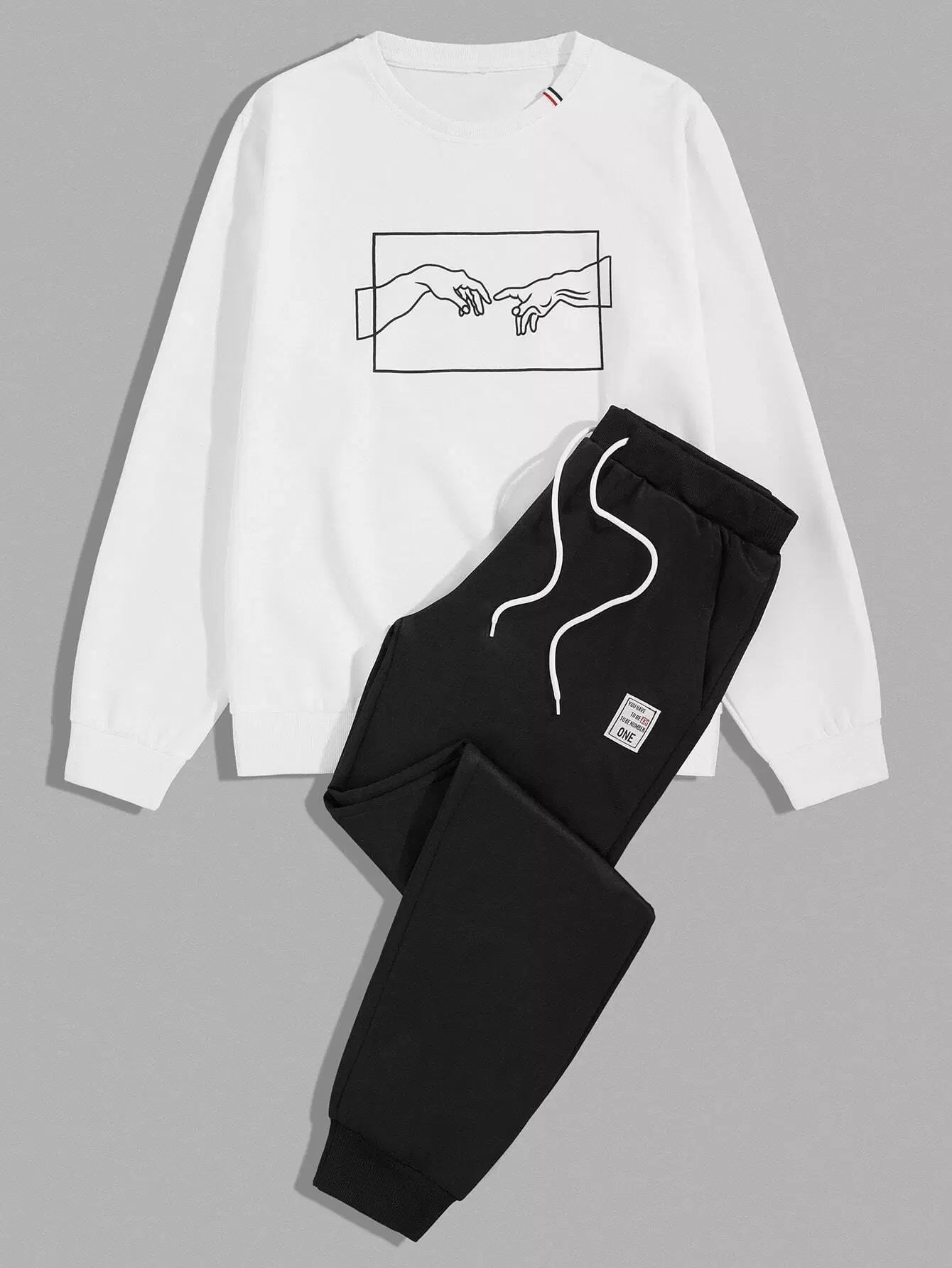 Men Hands Print Sweatshirt & Drawstring Sweatpants